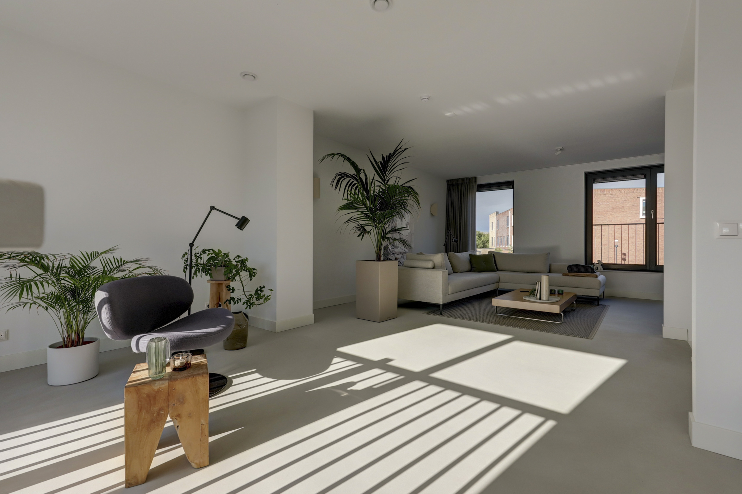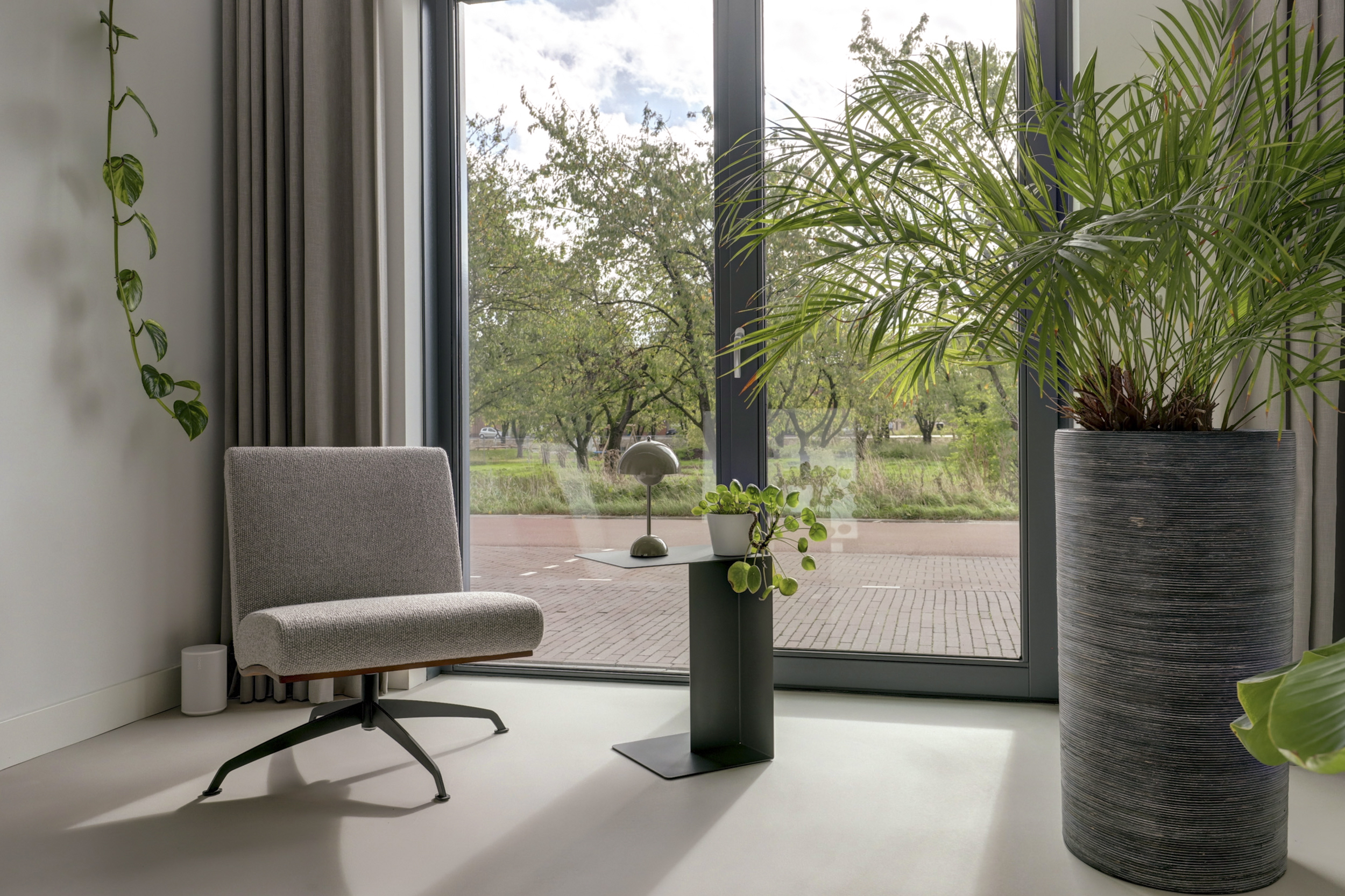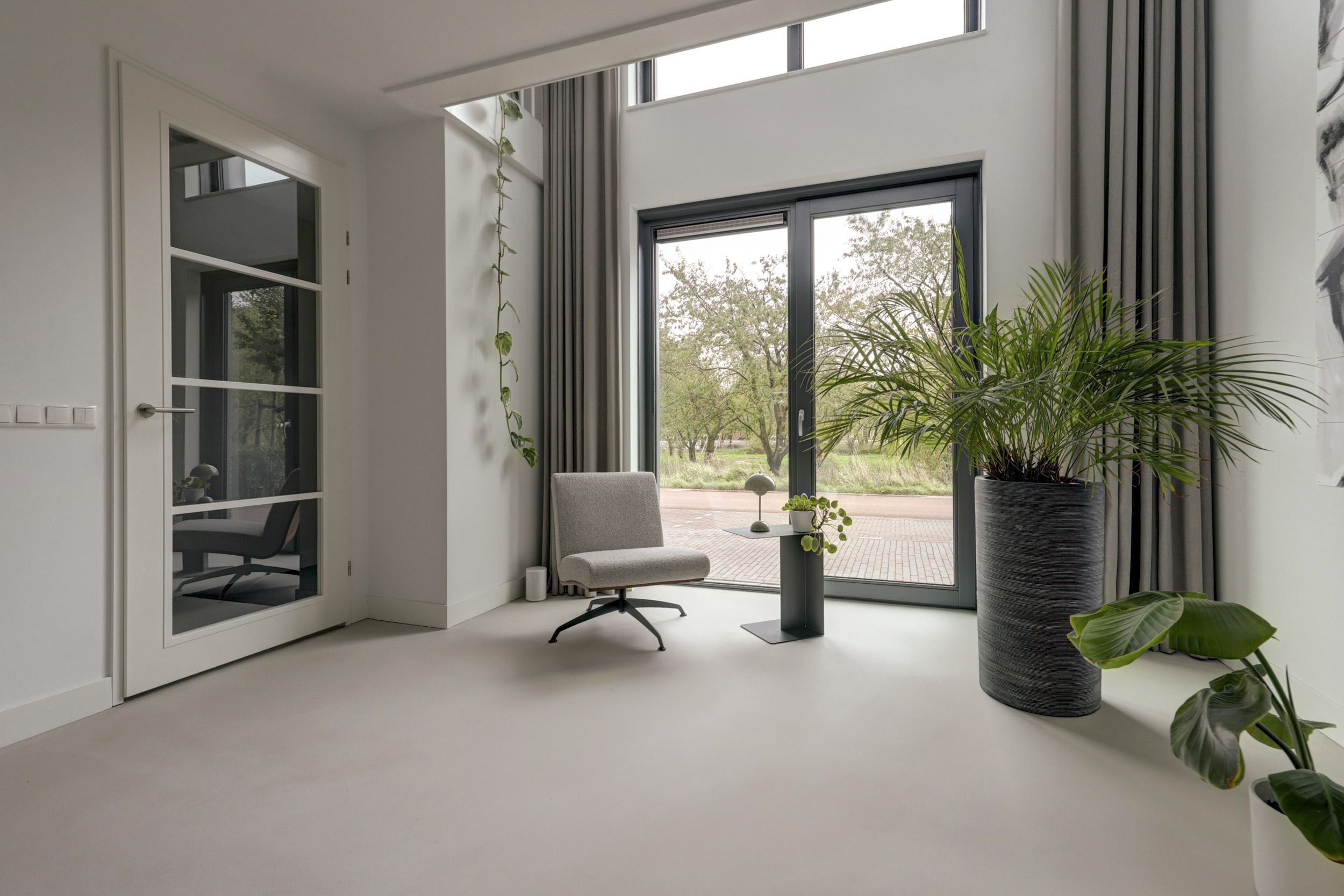 + Gietvloeren in betonlook, glad gestucte wanden / plafonds en horren in alle ruimtes