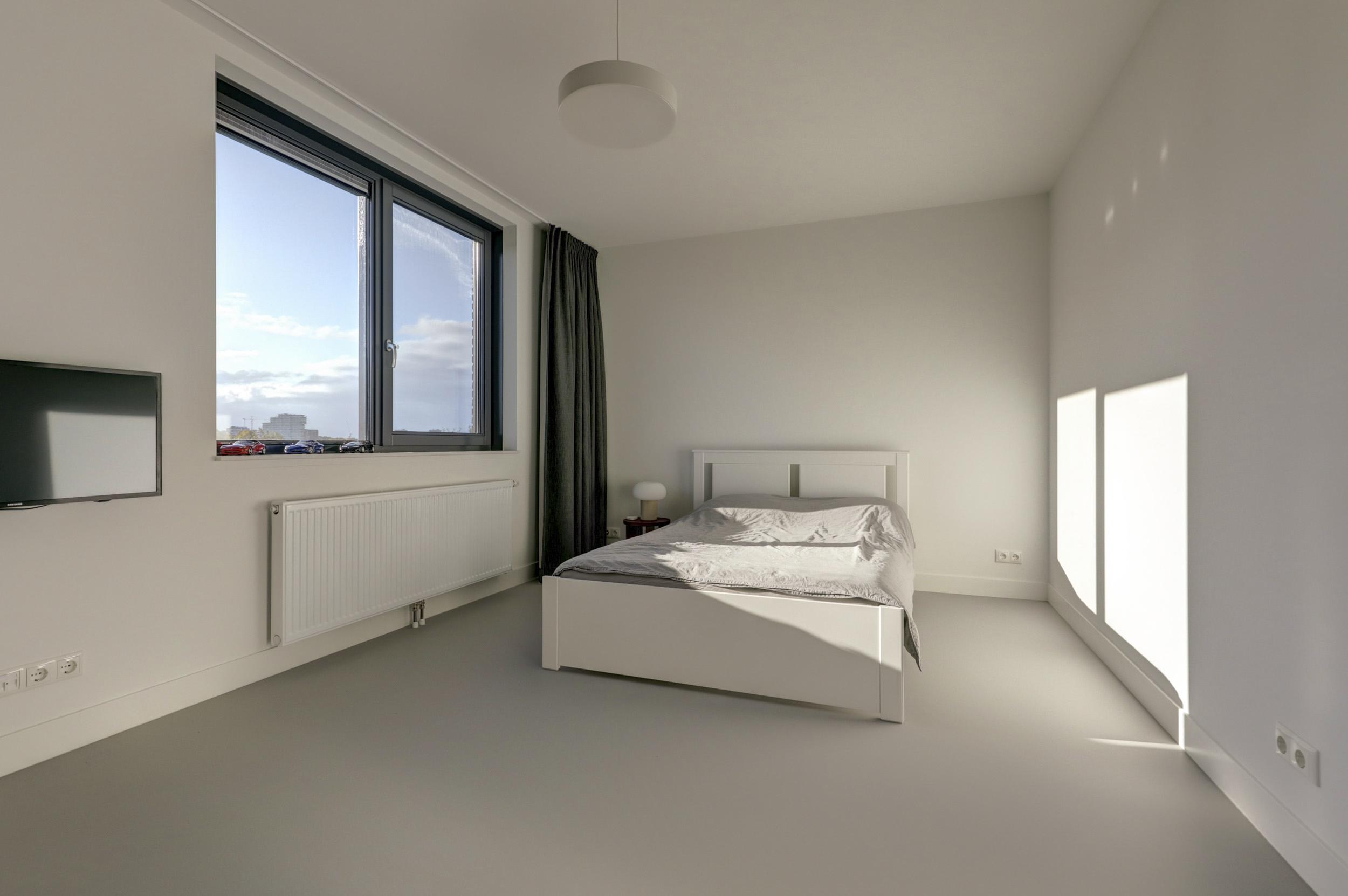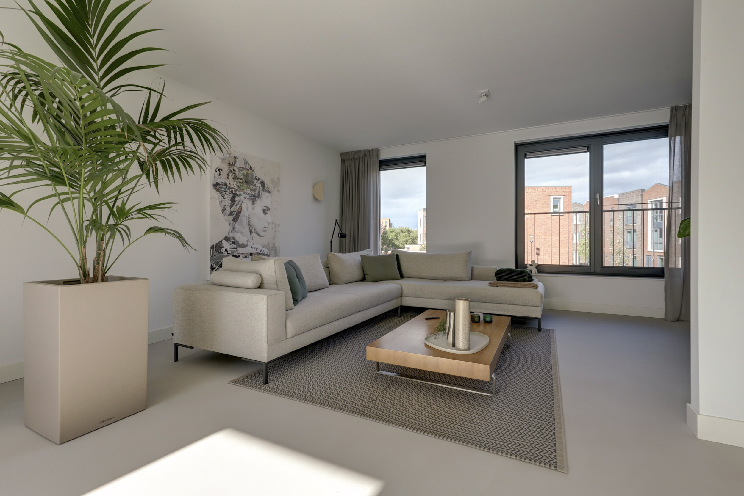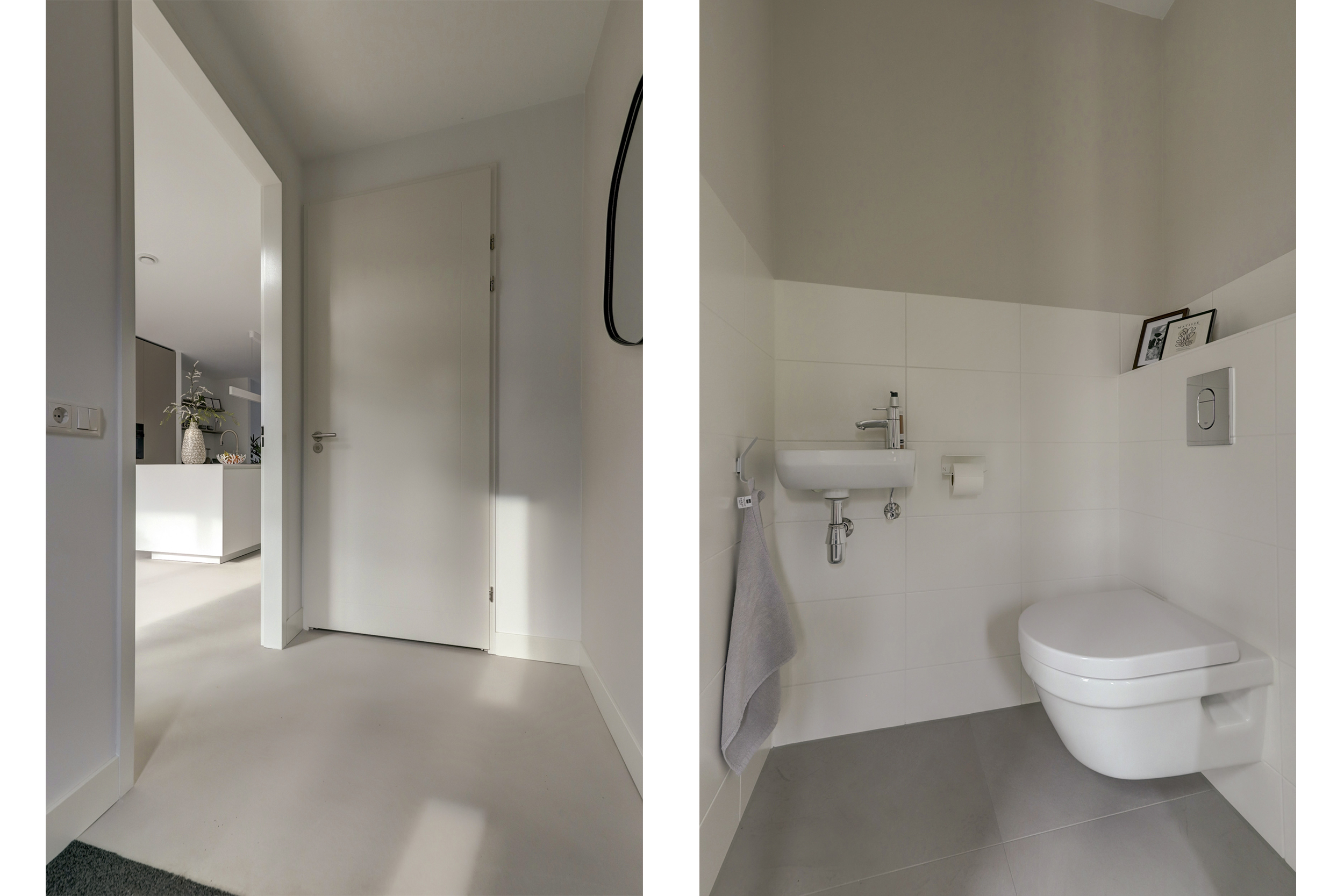 + Gietvloeren in betonlook, glad gestucte wanden / plafonds en horren in alle ruimtes
