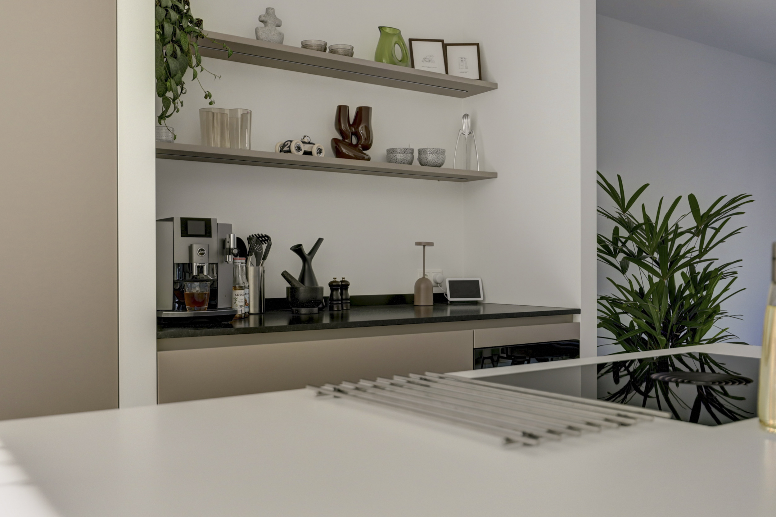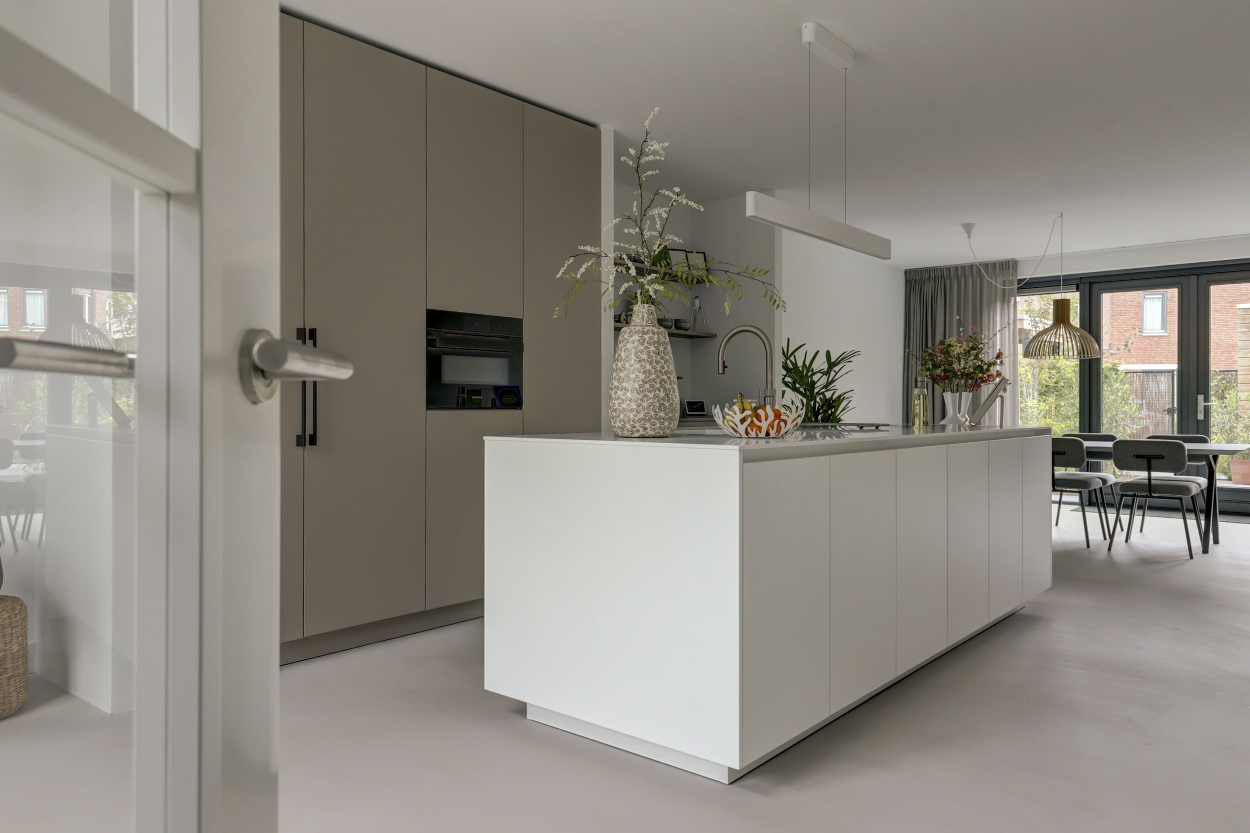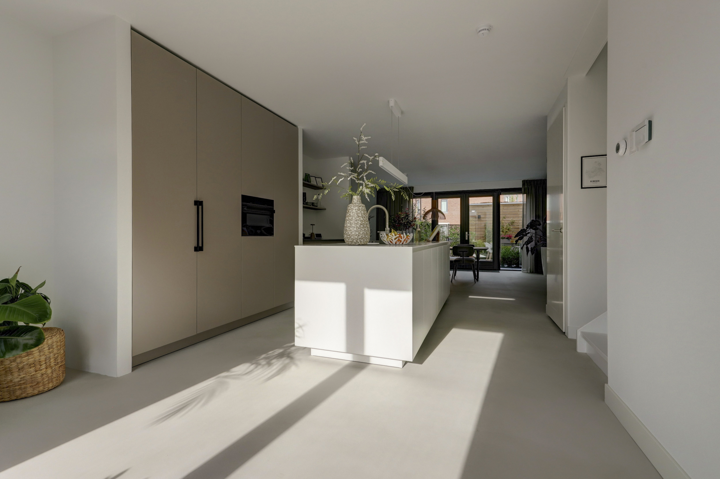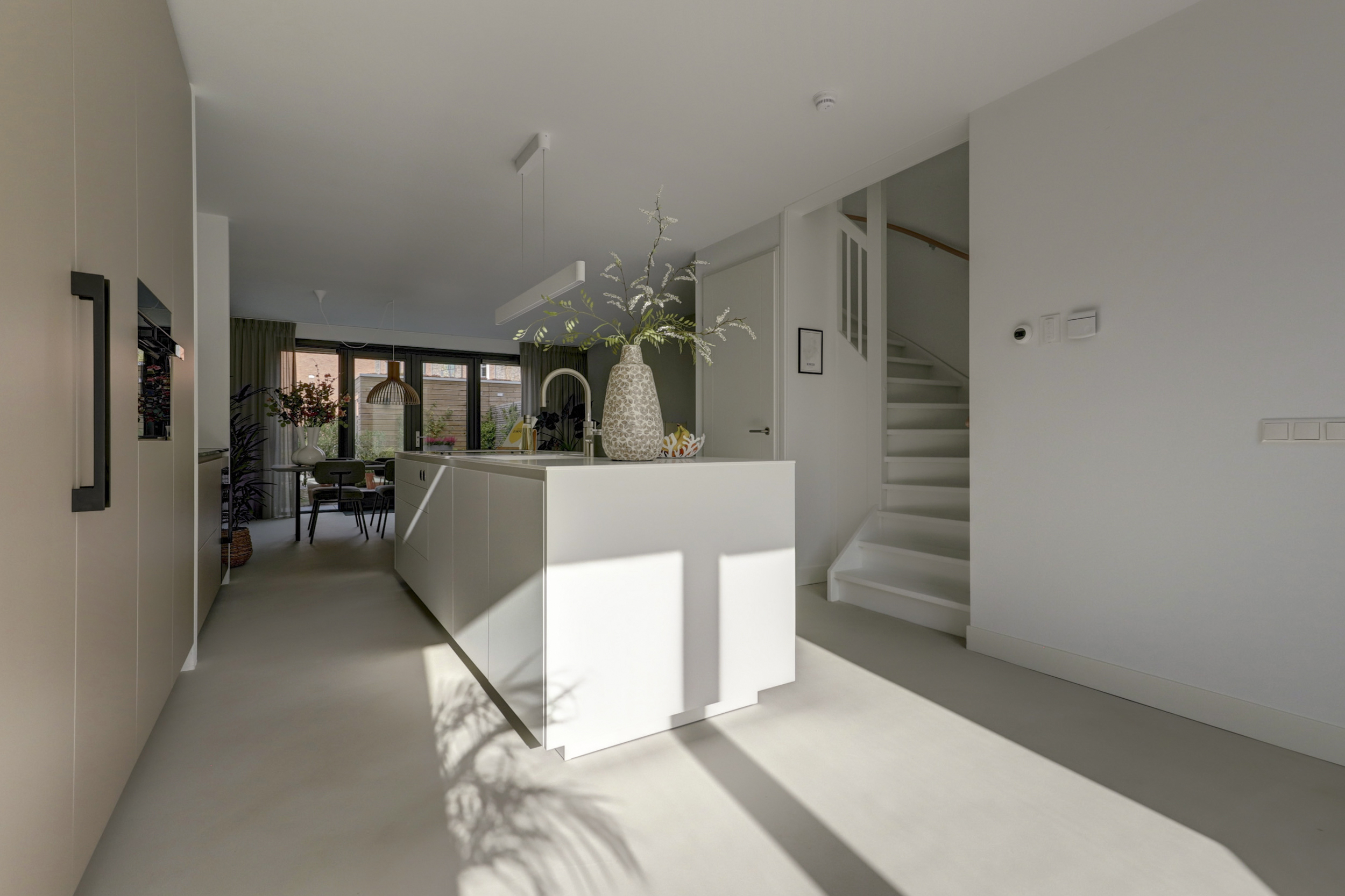 Via de hal met modern toilet en meterkast (voorzien van stadsverwarming en waterontharder) stap je binnen in de uitgebouwde woonkeuken. De Poggenpohl keuken is in 2023 met oog voor detail ontworpen met een royaal kookeiland als blikvanger. Hier kook je op topniveau met onder meer een BORA-inductiekookplaat, Siemens combioven, vaatwasser, koel- en vrieskast en wijnklimaatkast. De Quooker met plat, bruisend en kokend water maakt het plaatje compleet. Openslaande deuren geven toegang tot de tuin, waar je tot in de avond kunt genieten van de zon.