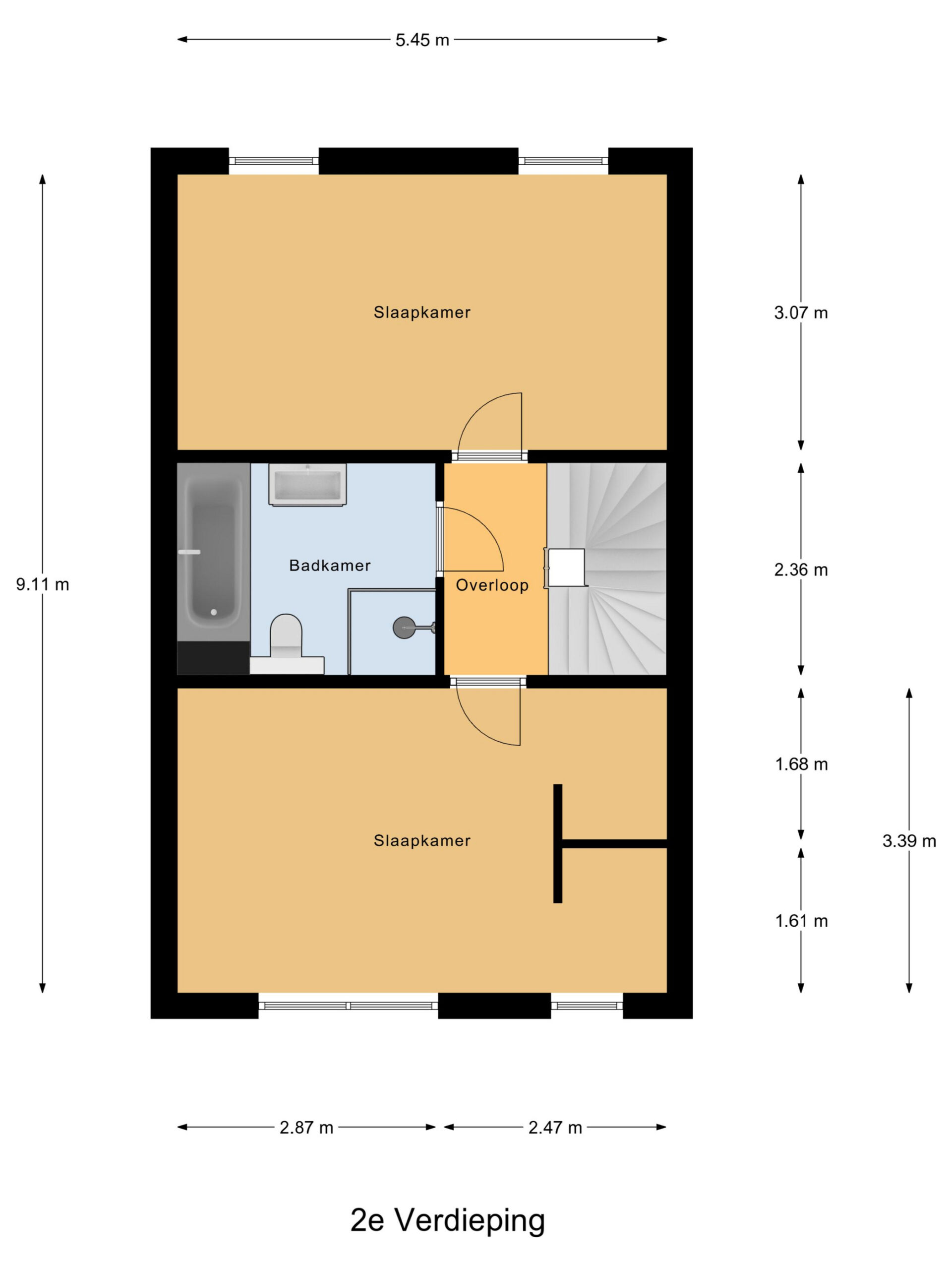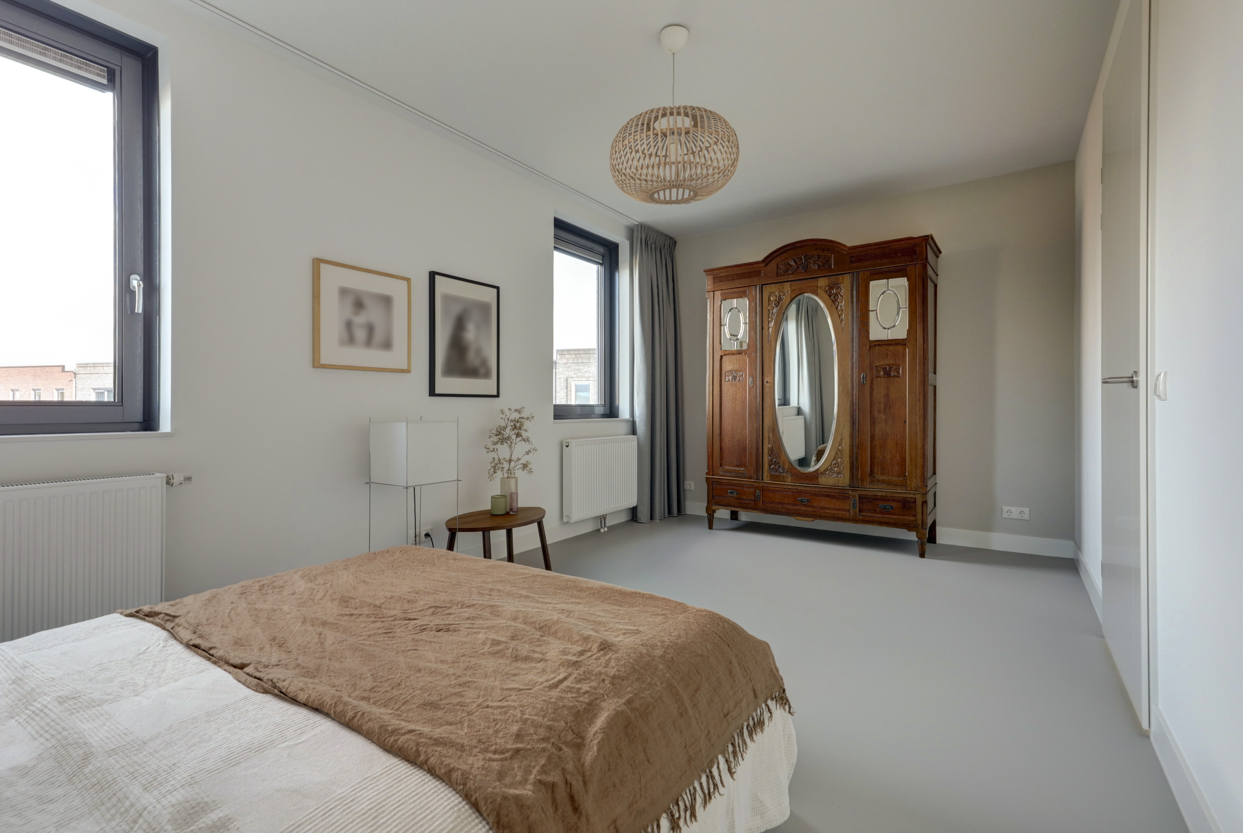 De tweede verdieping beschikt over een ruime overloop en twee stijlvolle slaapkamers. De master bedroom aan de voorzijde is een echte eyecatcher met dubbele inloopkast, maatwerk tv-wand en Frans balkon. De badkamer is in 2023 luxe afgewerkt met vloerverwarming, een ligbad, douche, toilet en wastafelmeubel. Aan de achterzijde ligt een tweede slaapkamer, ideaal als kinder- of werkkamer.