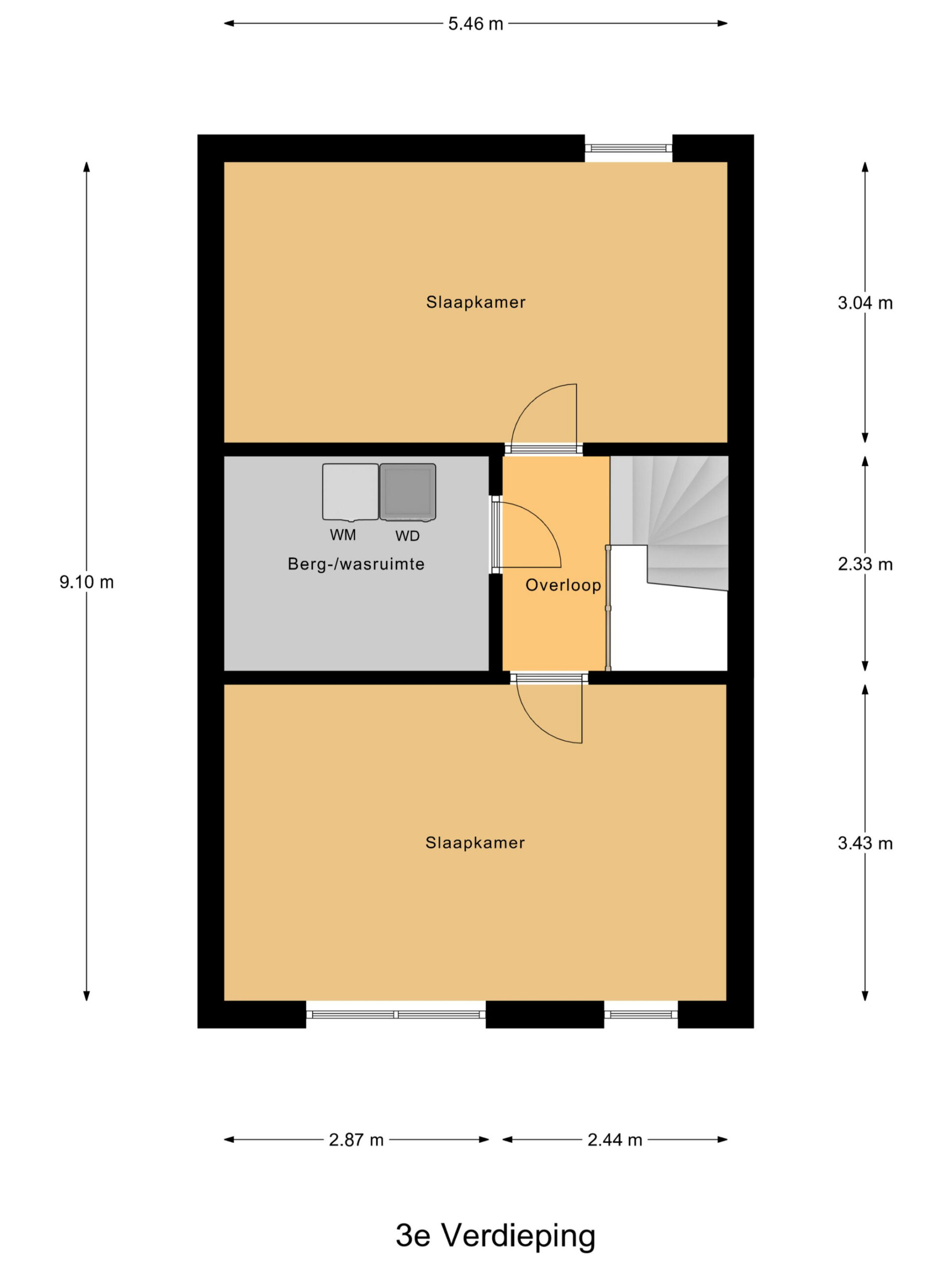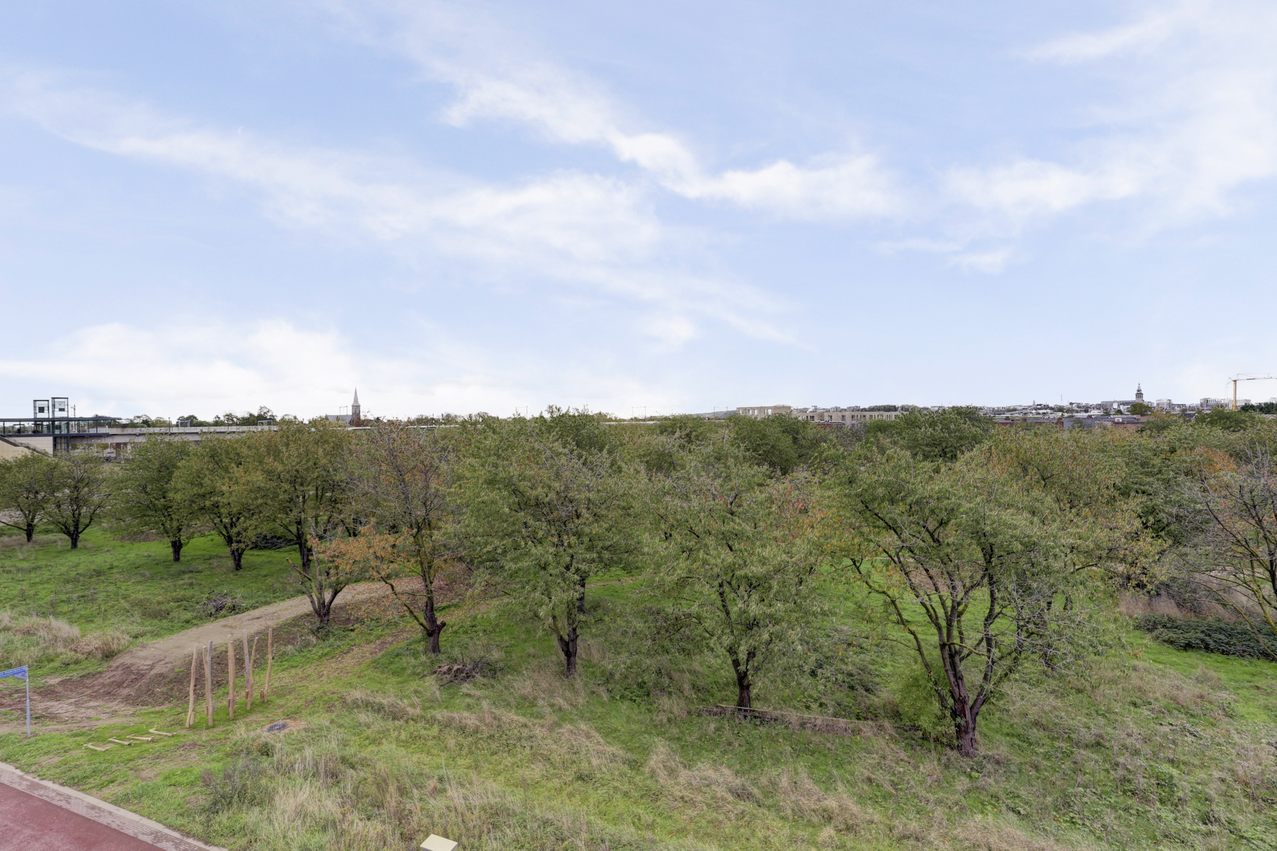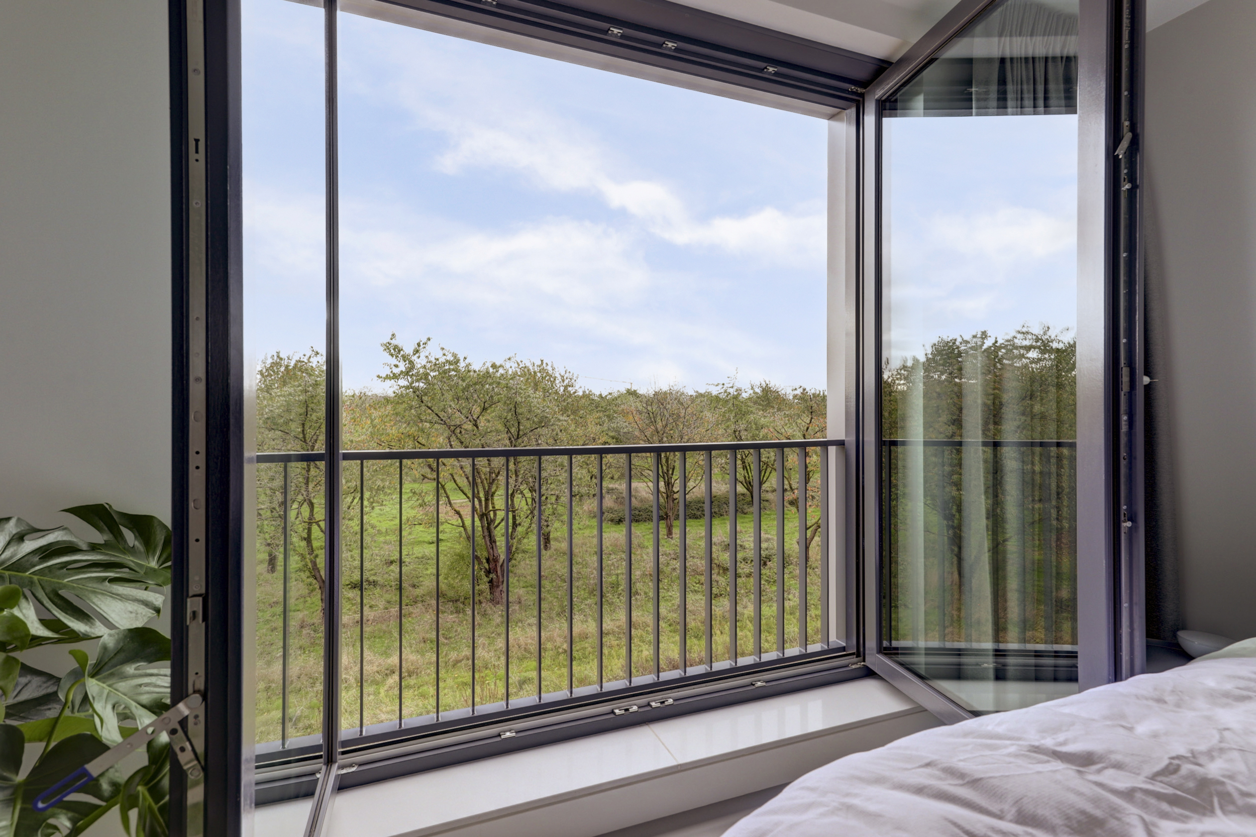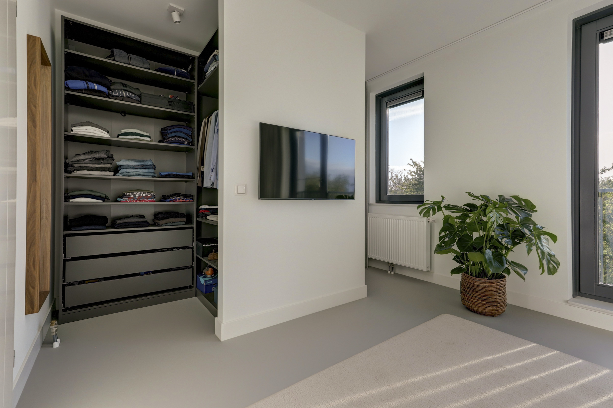 De derde verdieping herbergt nog twee fijne slaapkamers: de kamer aan de voorzijde biedt eveneens uitzicht op de boomgaard en de skyline van Nijmegen, de kamer aan de achterzijde is rustig gelegen. Verder vind je hier een aparte wasruimte met opstelplaats voor witgoed, WTW-installatie en omvormer van de zonnepanelen.