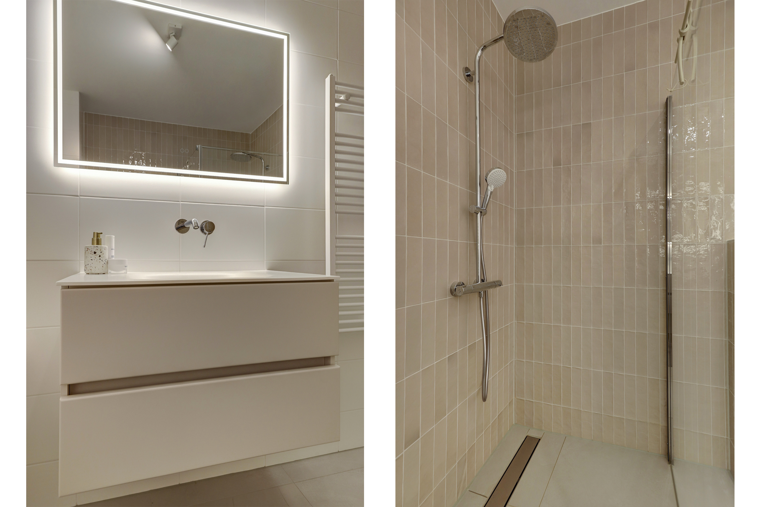 + Badkamer met douche, ligbad, vloerverwarming en strak sanitair