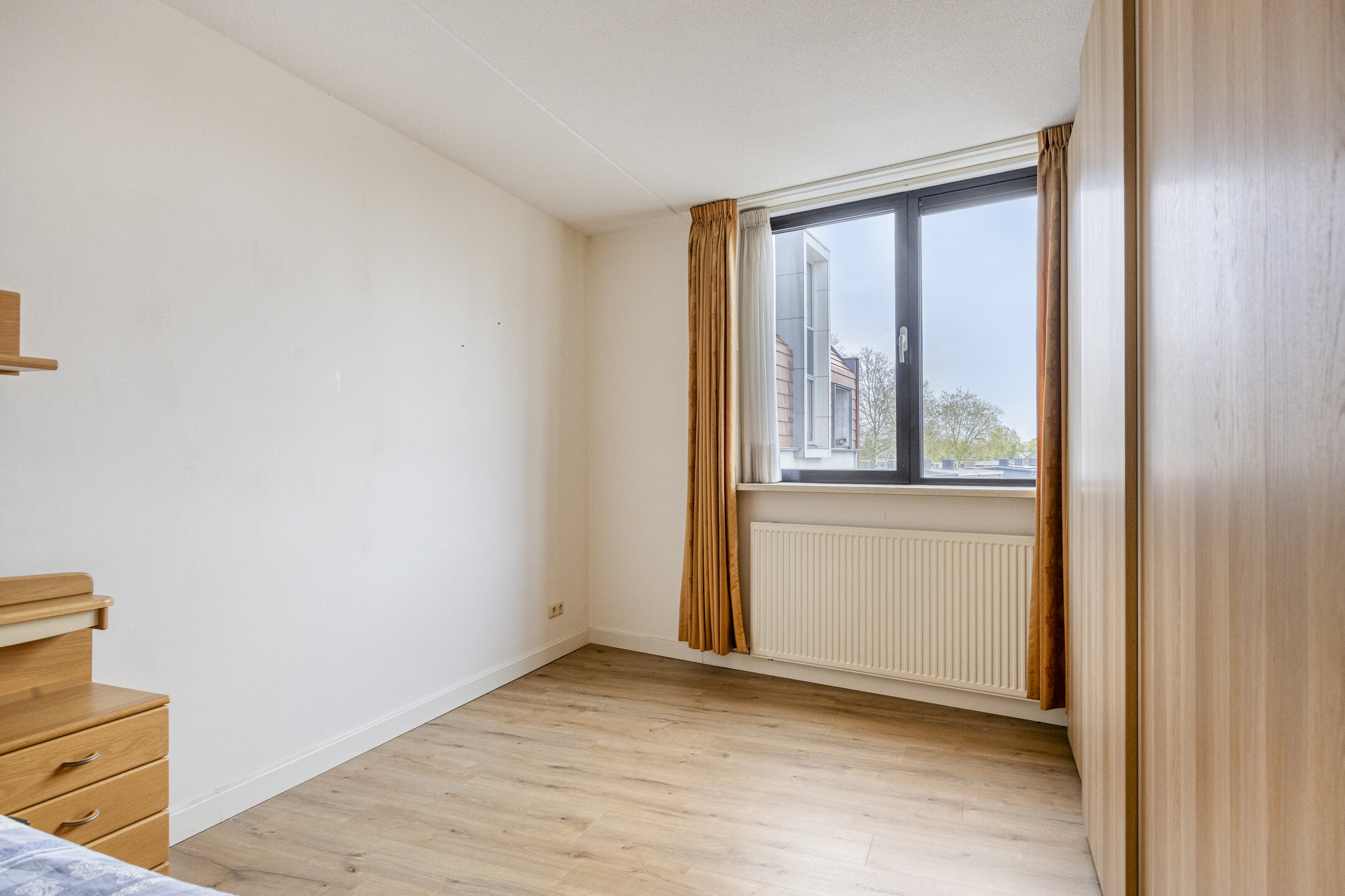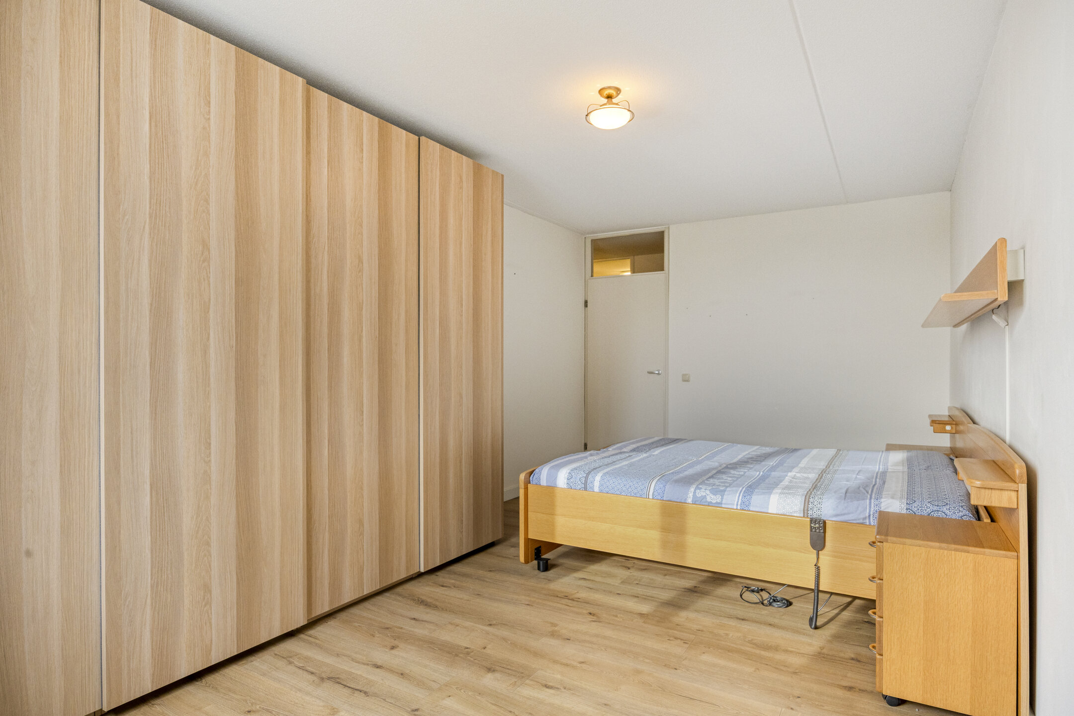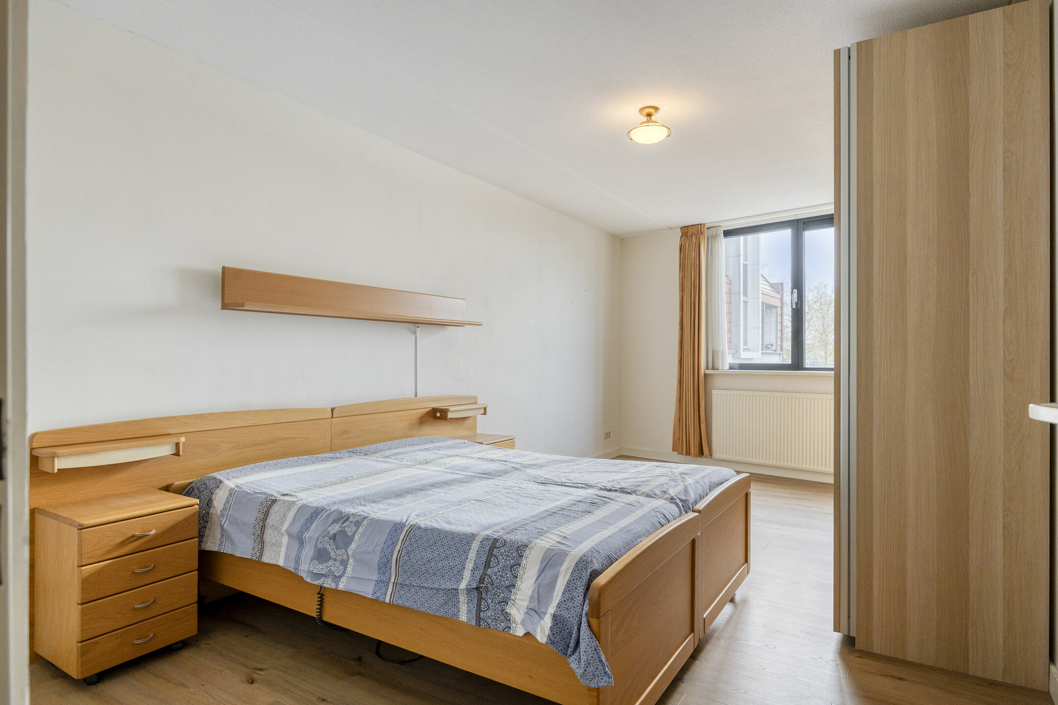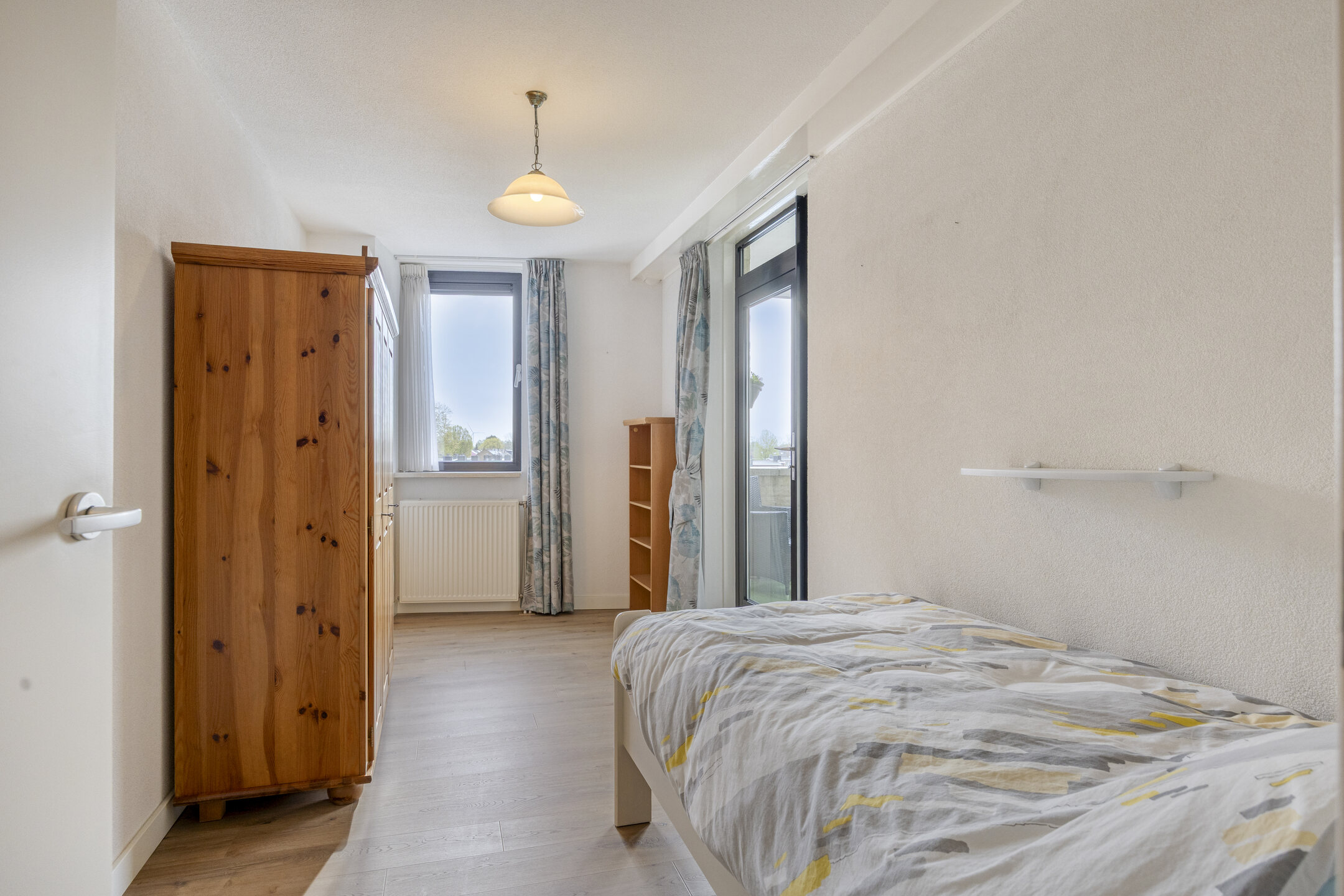 Ook de slaapkamers zijn royaal van formaat. Eén van de slaapkamers heeft direct toegang tot het balkon, wat zorgt voor extra licht en een prettige verbinding met buiten. De badkamer is compleet uitgevoerd met een douche, ligbad, vrij hangend toilet en een wastafelmeubel.