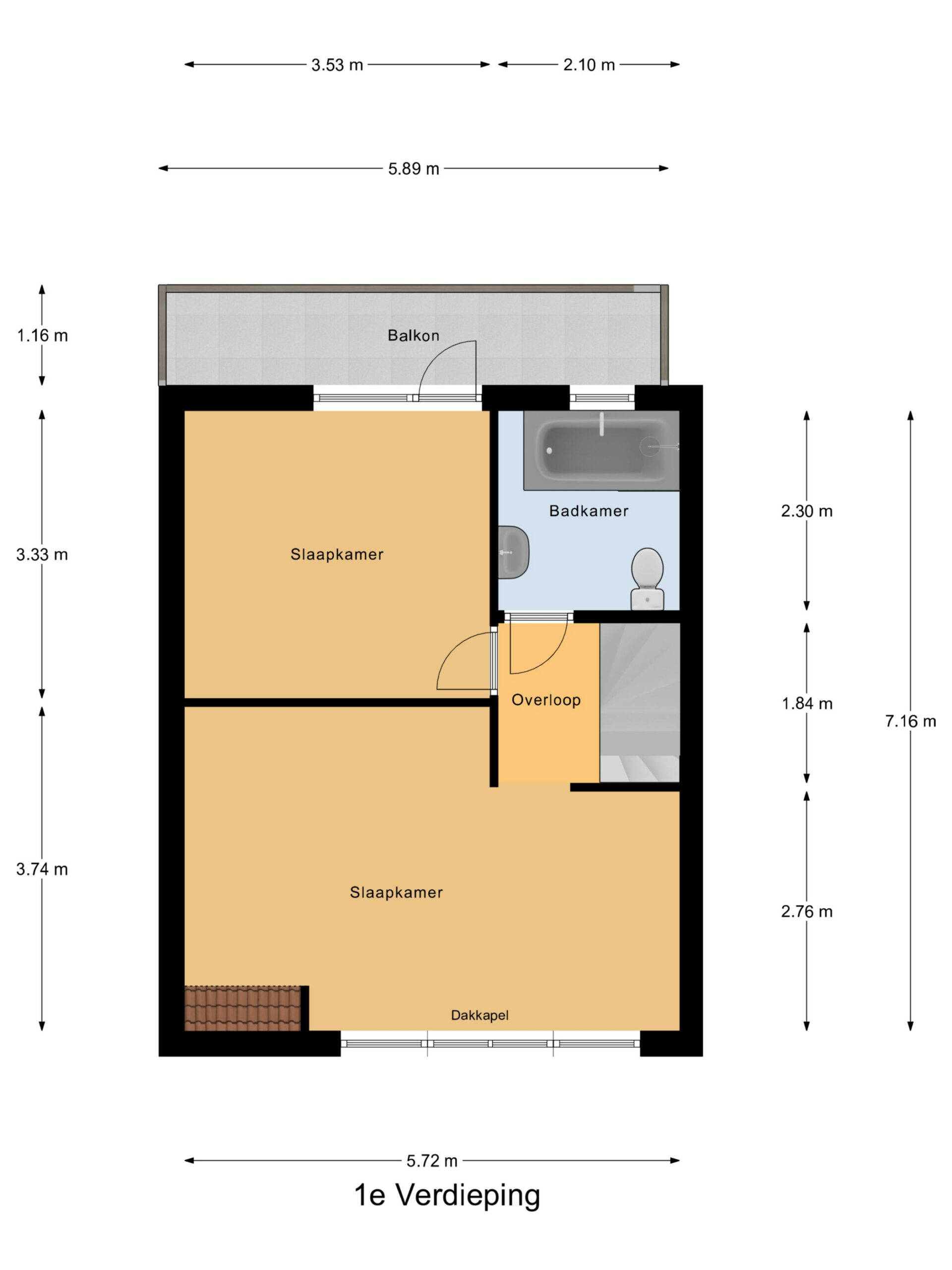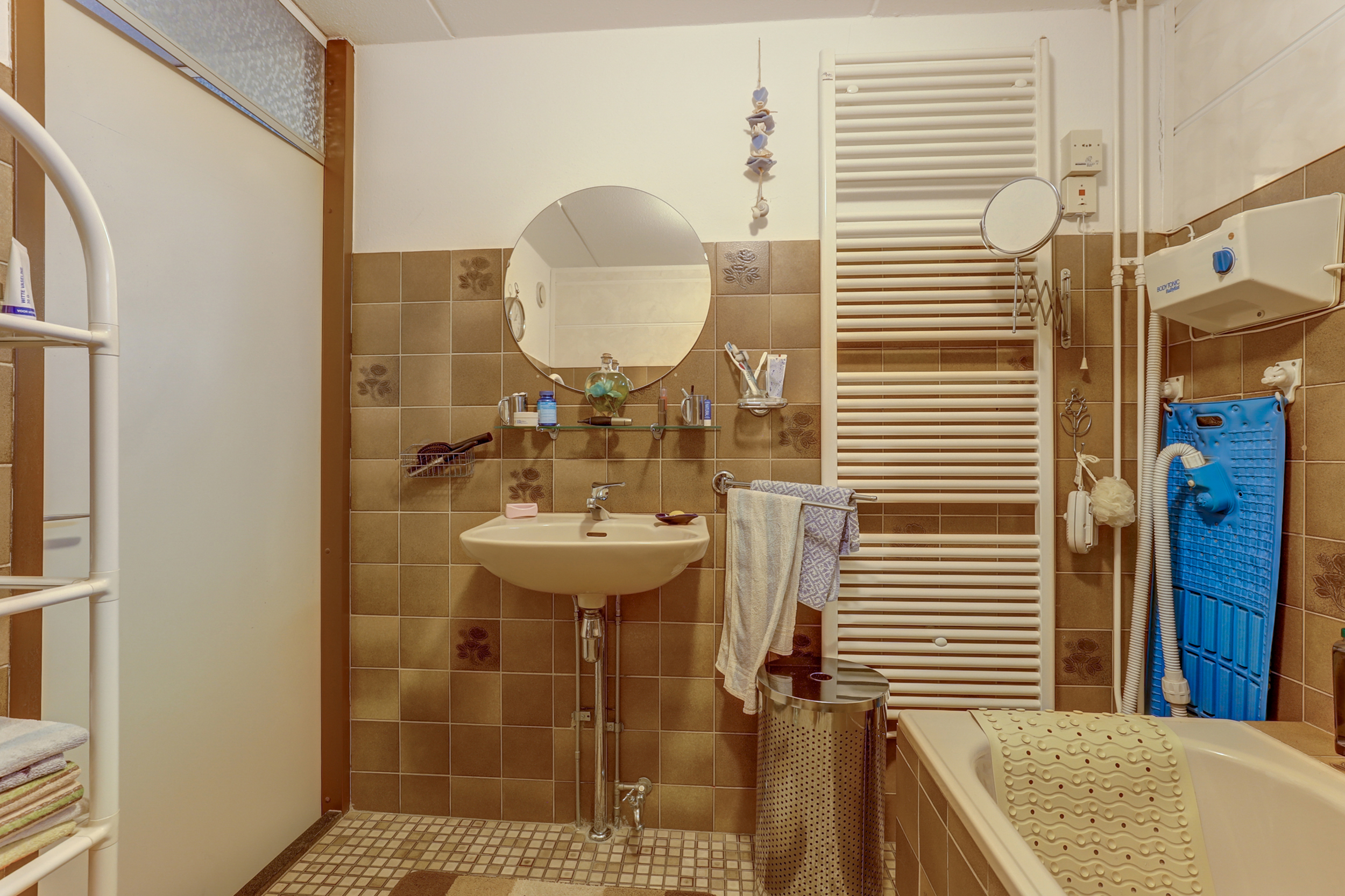 Op de eerste verdieping zijn momenteel twee ruime slaapkamers aanwezig. Dit waren er voorheen drie en dit is eenvoudig weer terug te brengen. De slaapkamer aan de achterzijde geeft toegang tot het balkon met een mooi vrij uitzicht. De badkamer is eenvoudig ingedeeld en voorzien van een bad douche combinatie, wastafel, toilet en een raam voor natuurlijke ventilatie.