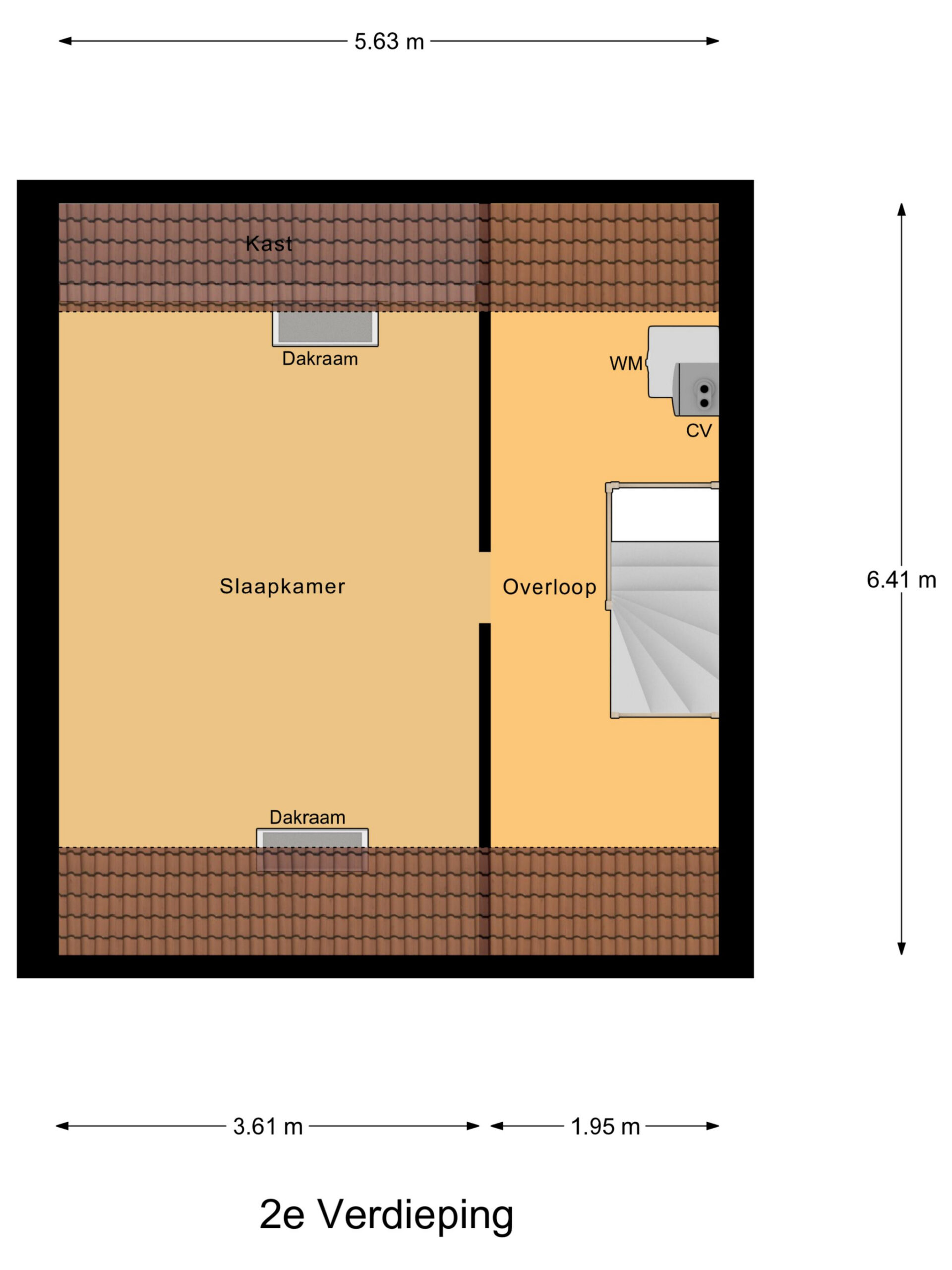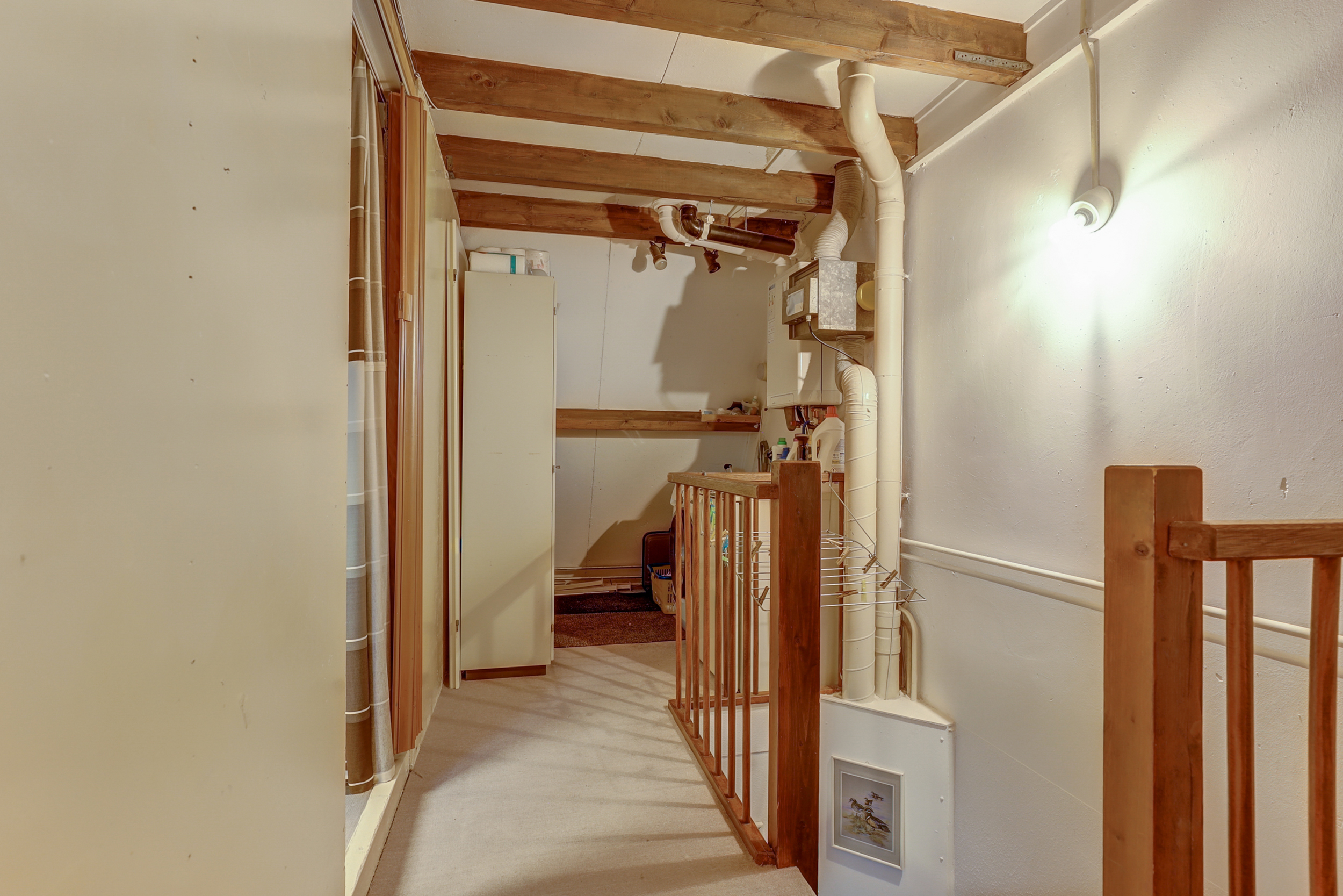 De tweede verdieping bestaat uit een overloop met dakraam en aansluiting voor wasapparatuur, gevolgd door een royale derde slaapkamer.