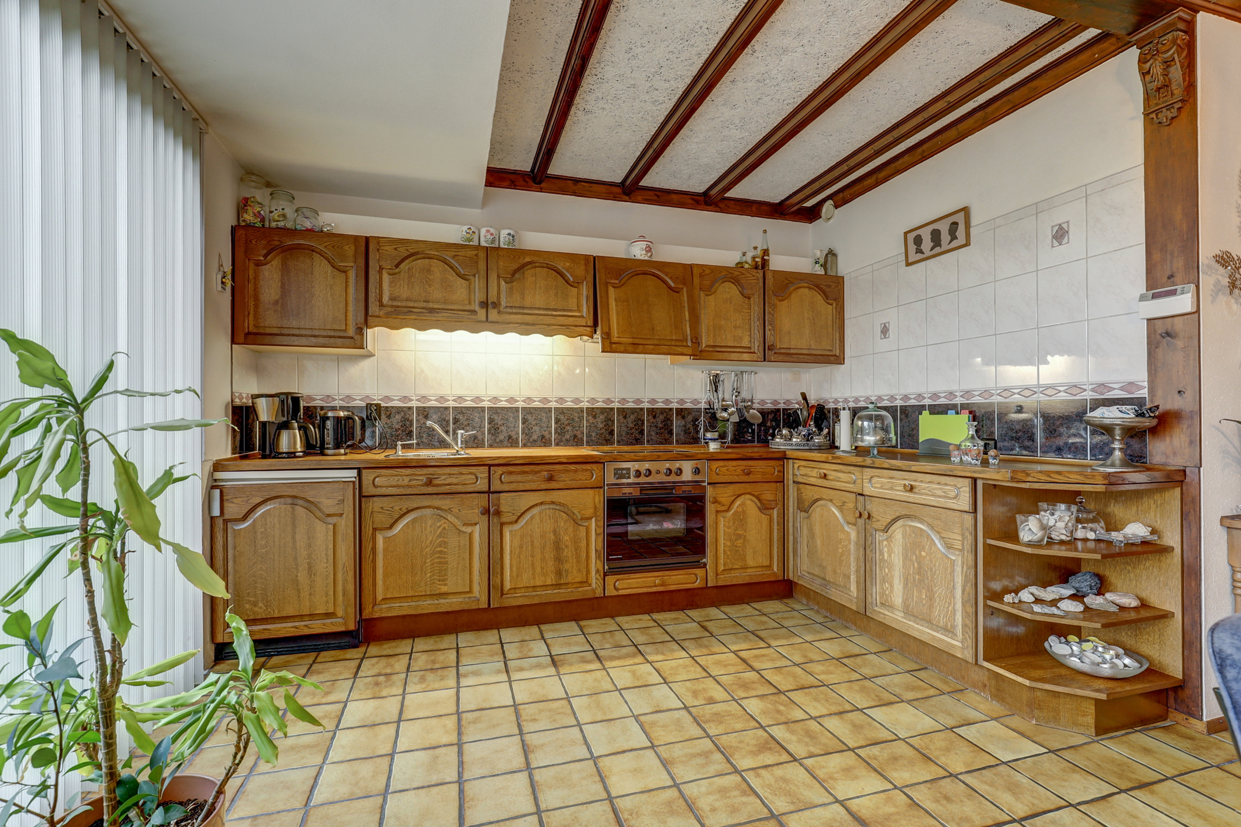 De keuken bevindt zich aan de achterzijde van de woning en biedt direct zicht op de diepe achtertuin.