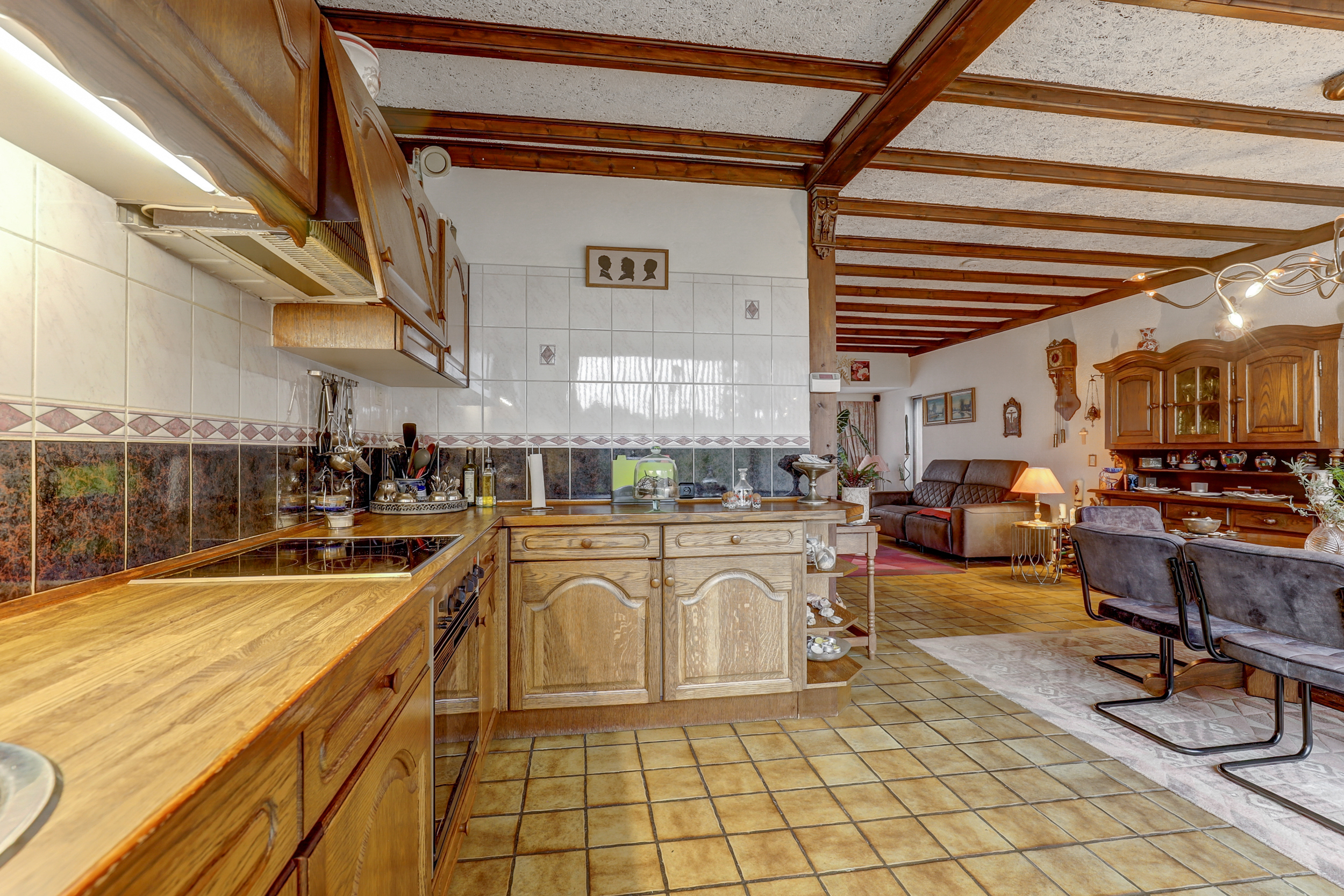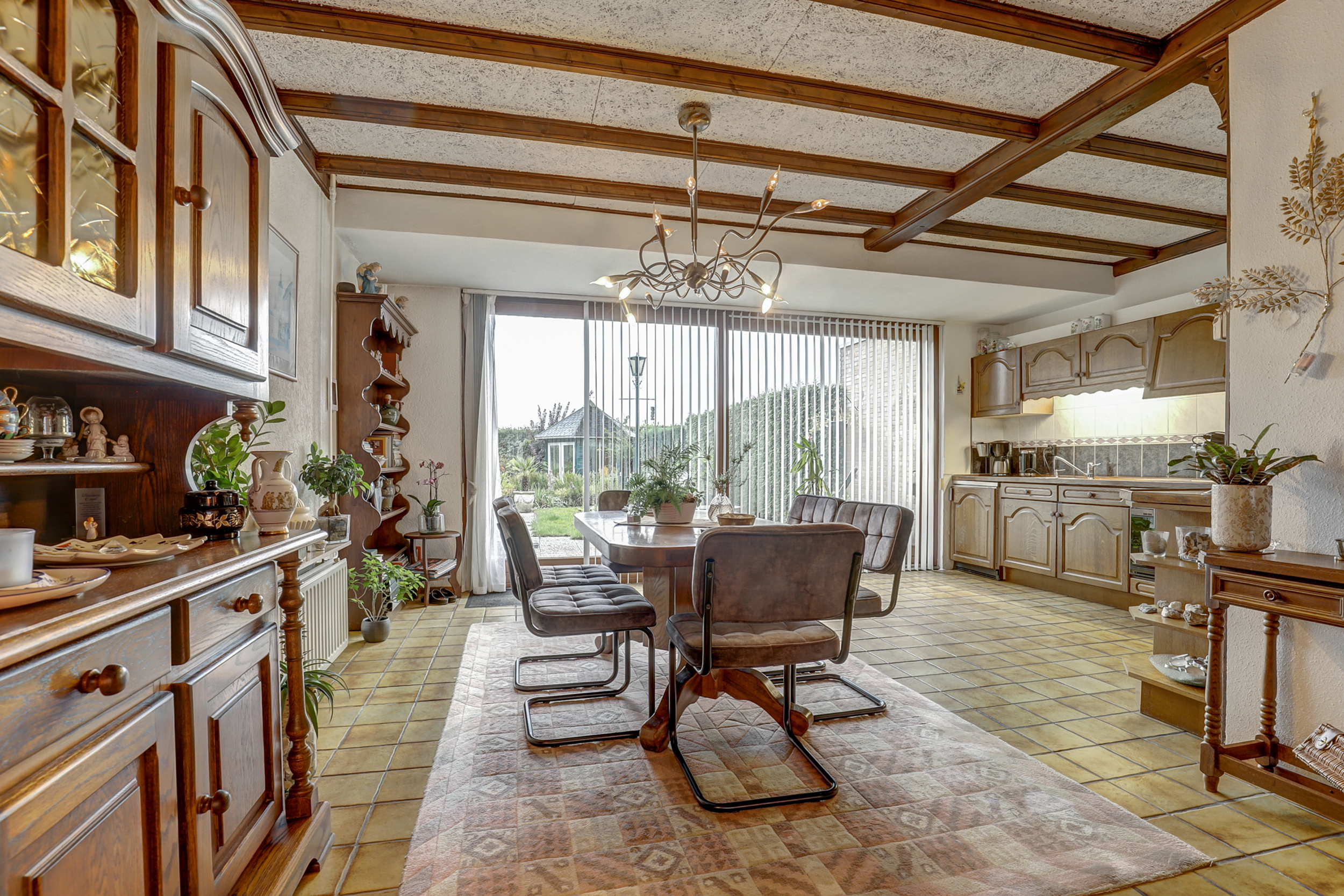 Via de hal met toilet kom je binnen in de opvallend ruime woonkamer van circa 57 m². Dankzij de grote raampartijen is de woonkamer heerlijk licht en heb je een prettig uitzicht richting de tuin. Er is volop ruimte voor een royale zithoek en een grote eettafel.