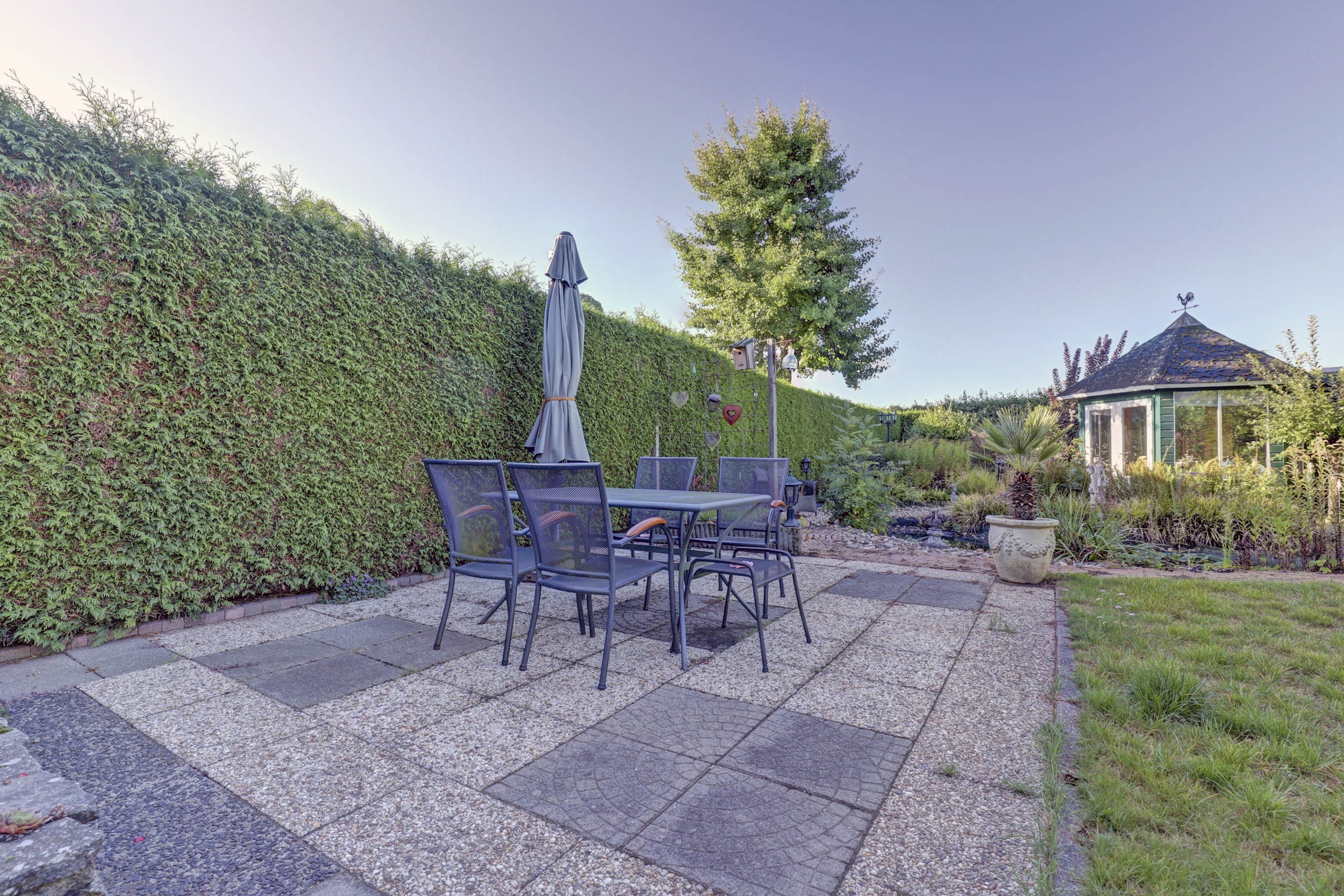 De achtertuin is een van de absolute pluspunten van deze woning. Met een lengte van circa 25 meter en een ligging op het zuidwesten geniet je hier de hele dag van de zon. Er is volop ruimte voor een groot terras, speelruimte en groen. Dankzij de ligging heb je bovendien veel privacy.