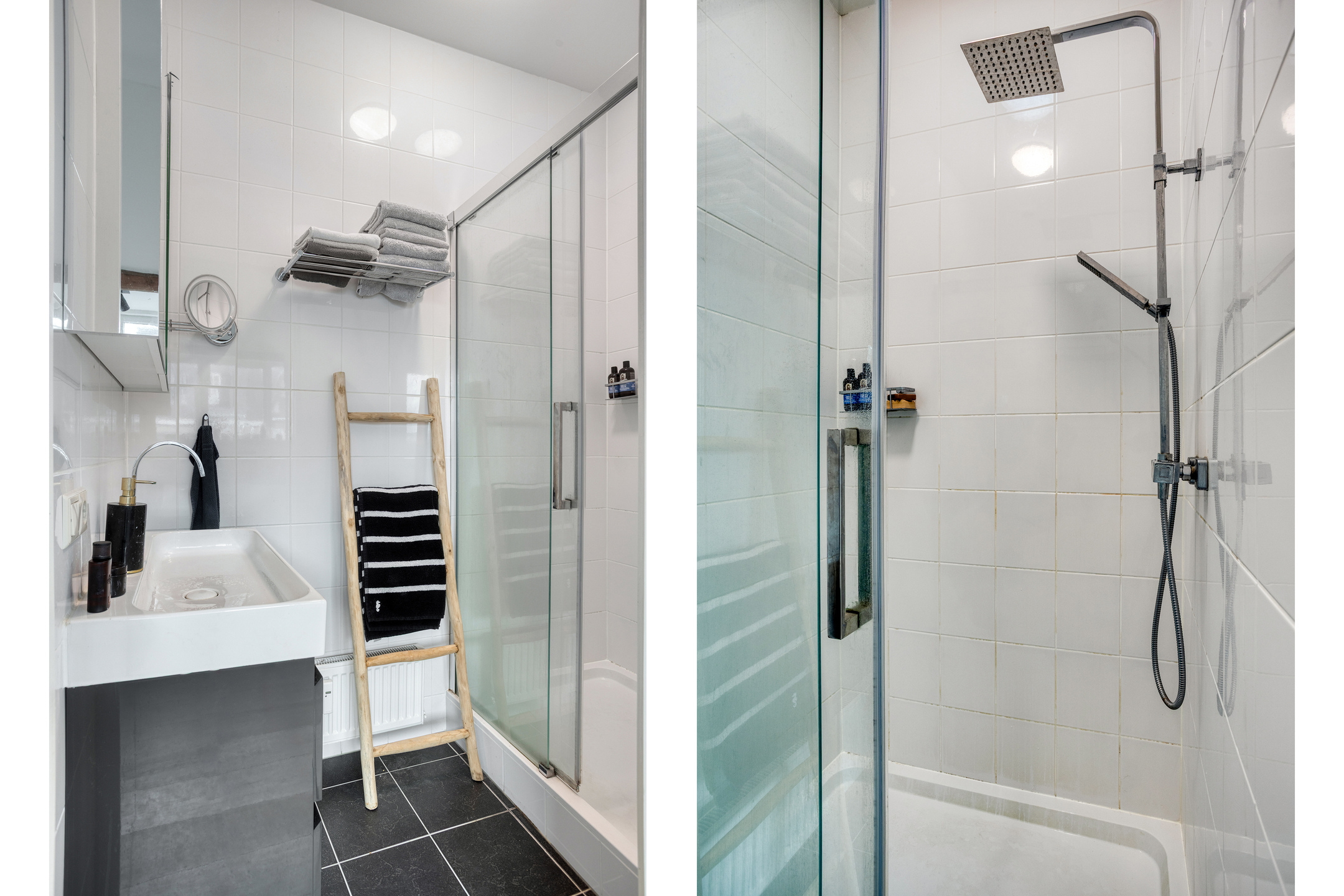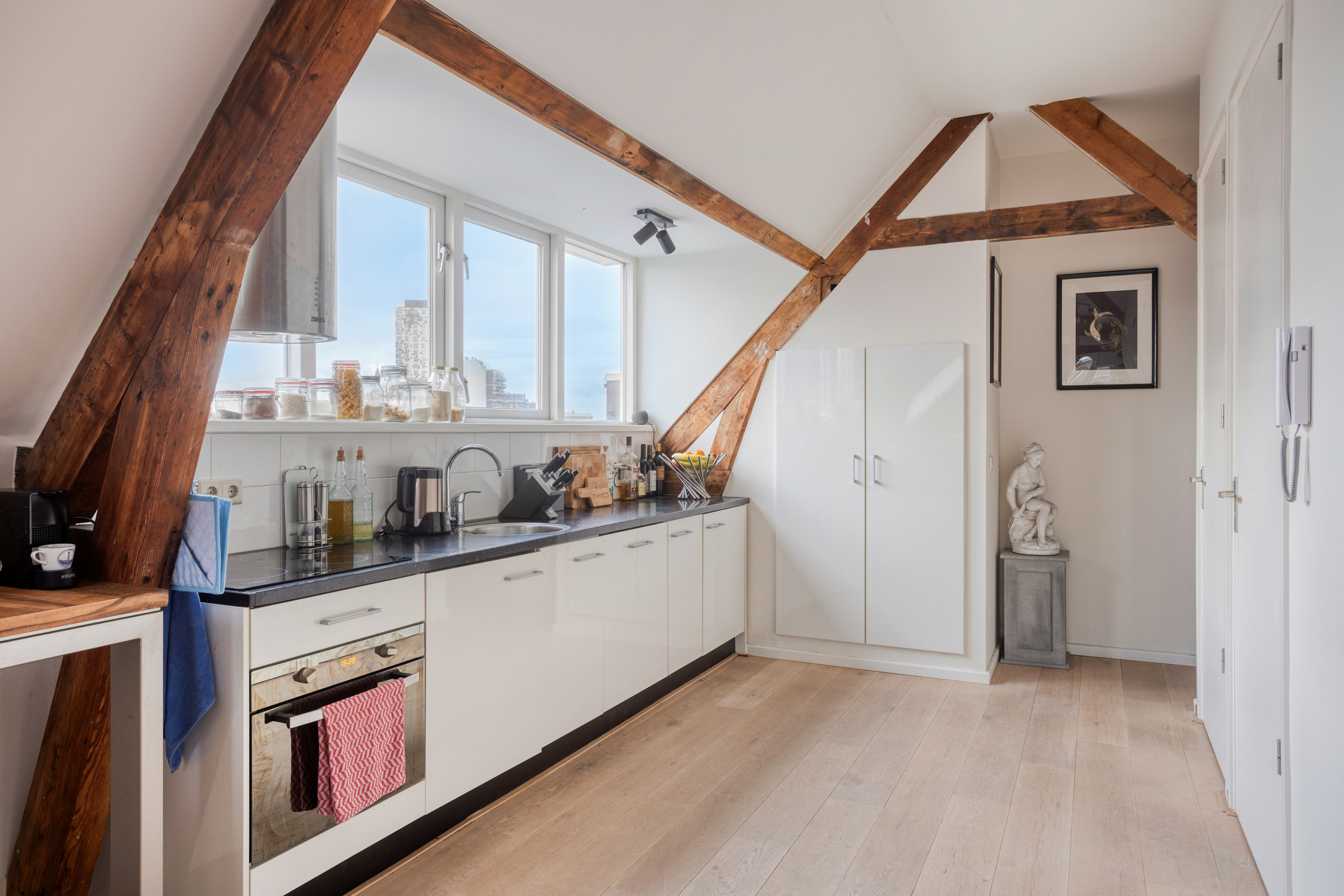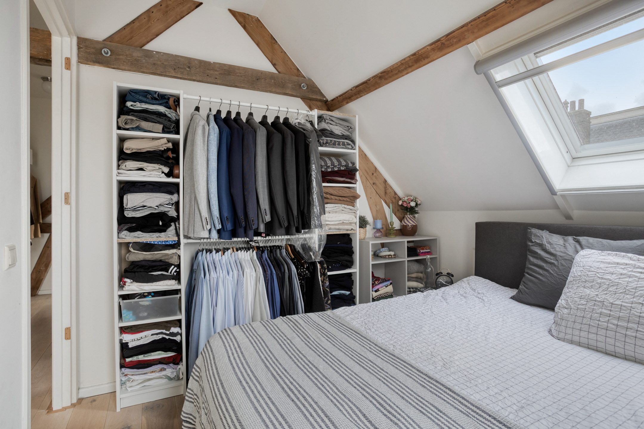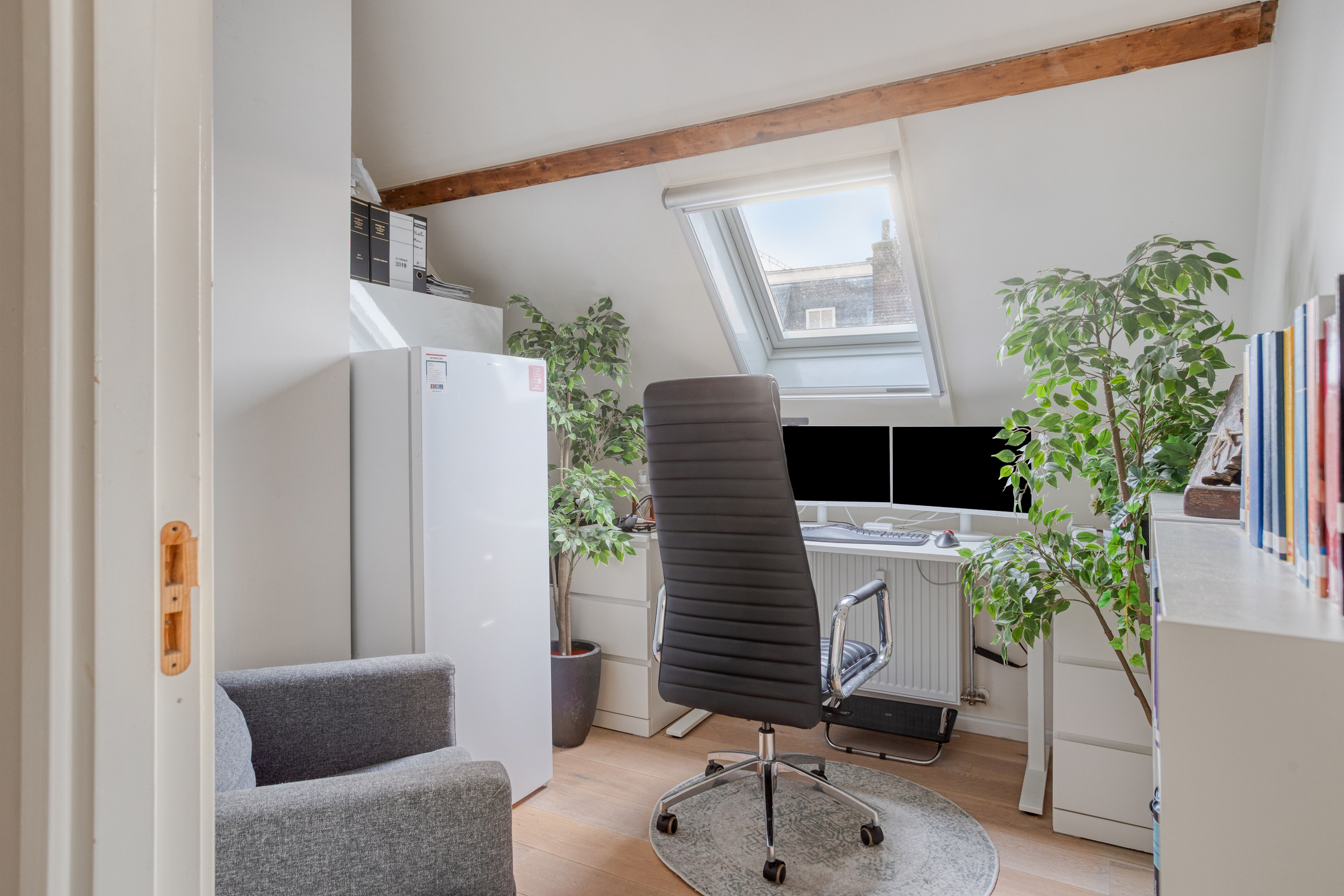 Het appartement beschikt over twee slaapkamers, beide voorzien van dakramen en gelegen aan de rustige achterzijde. Hierdoor zijn ze zeer geschikt als slaapkamer en/of werkruimte. De badkamer is uitgevoerd met een douche en wastafelmeubel. Daarnaast is er een separaat toilet met fontein. Het gehele appartement is afgewerkt met een houten vloer en voorzien van screens, wat bijdraagt aan het comfort.