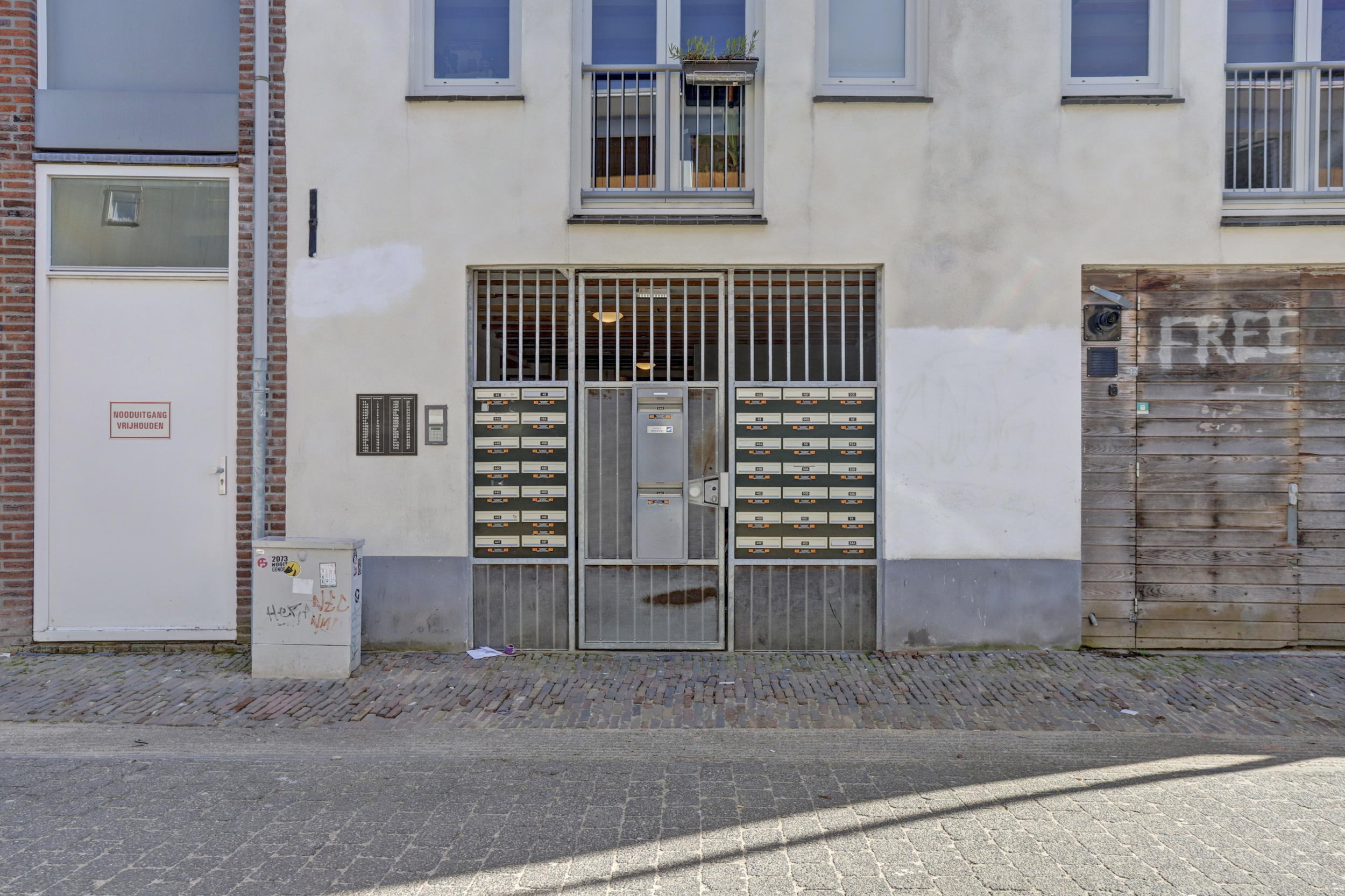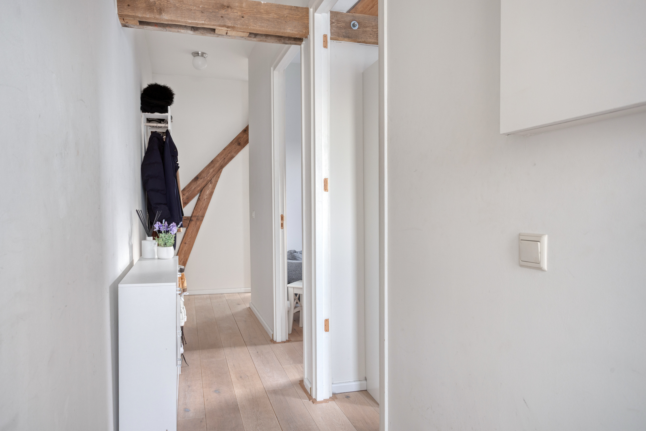 Via de centrale entree met intercom, bellentableau en trappenhuis bereik je de gezamenlijke binnenplaats. Van hieruit ga je naar de derde en bovenste verdieping, waar het appartement is gelegen. Het balkon bevindt zich aan de binnenzijde en vormt tevens de entree tot het appartement; een fijne plek om aan het einde van de dag nog van de zon te genieten.