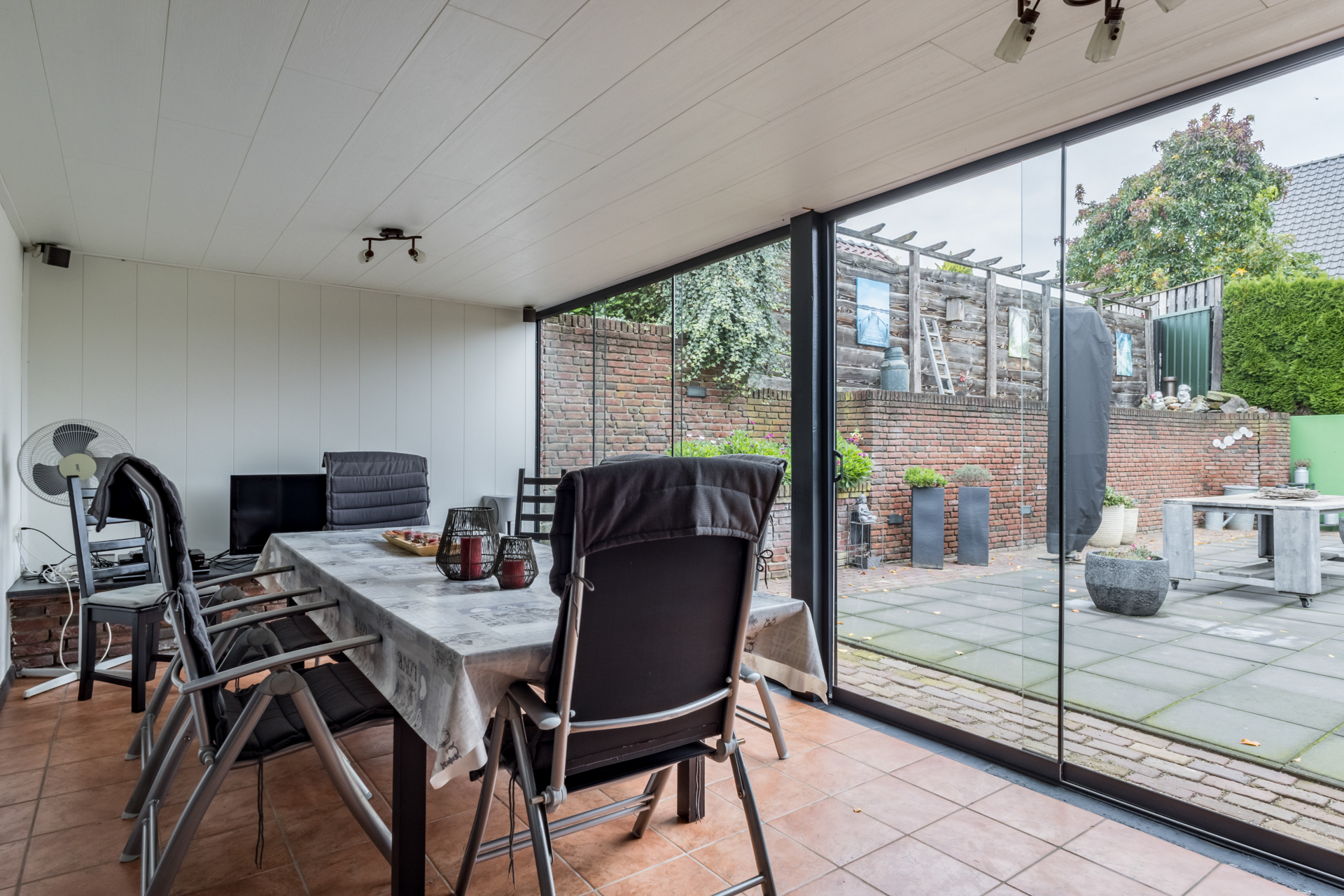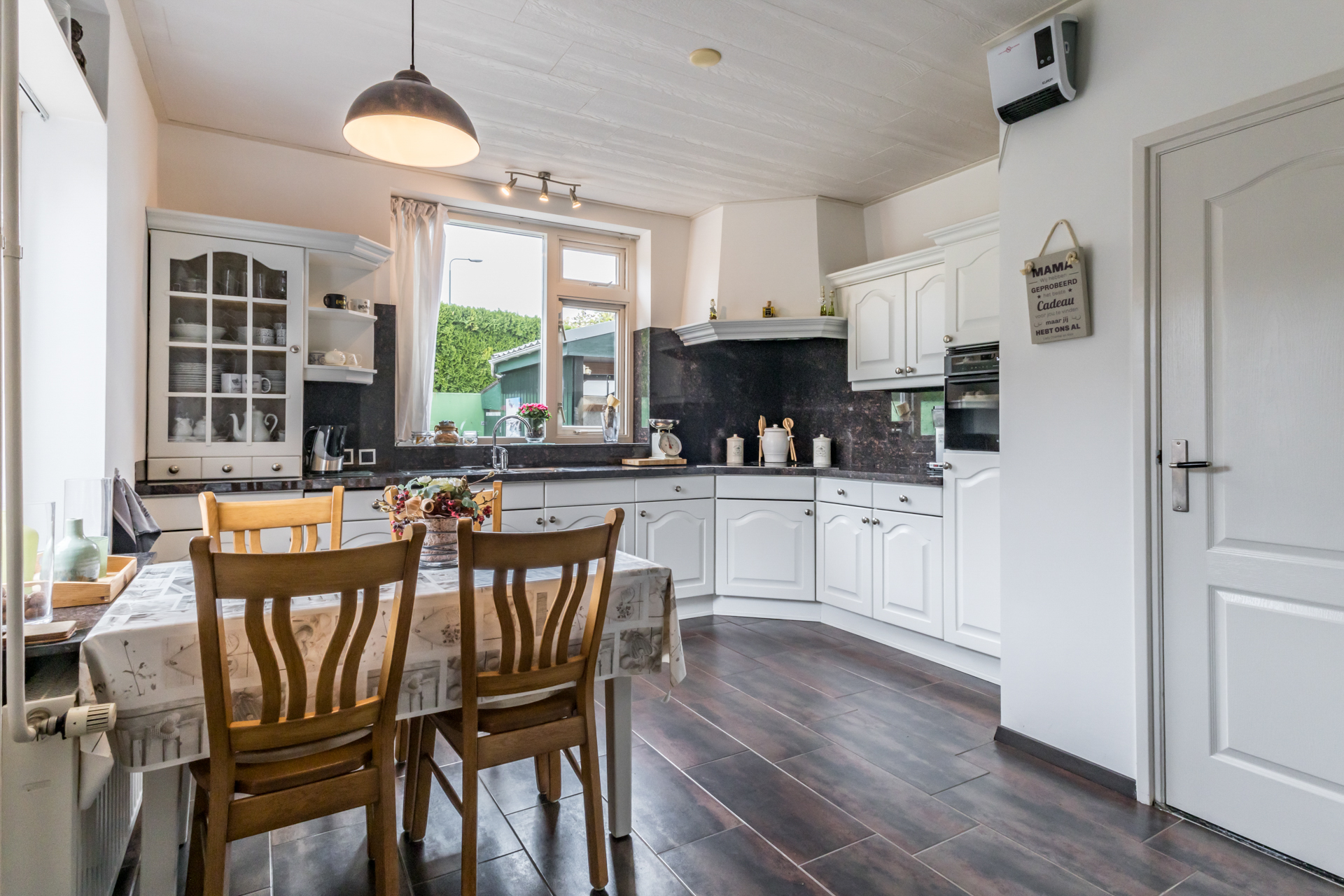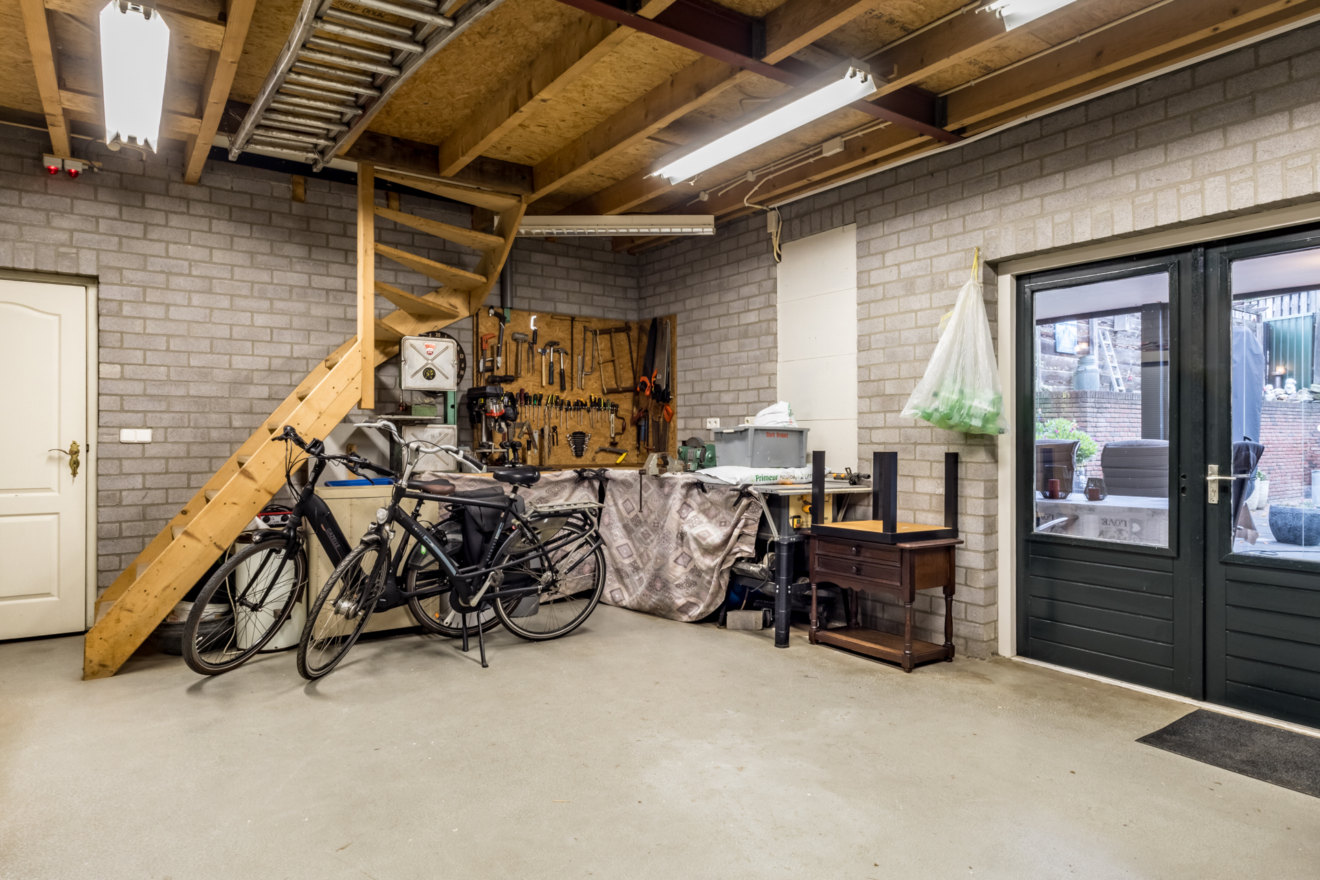 Via de bijkeuken heb je toegang tot de grote, goed geïsoleerde garage. Deze is voorzien van water en verwarming, krachtstroom, aparte berging en heeft een grote zolderverdieping. Ook vanuit de garage kun je in lichte tuinkamer met glazen schuifwand komen waar je het buitenleven tot ver in het najaar kunt verlengen.