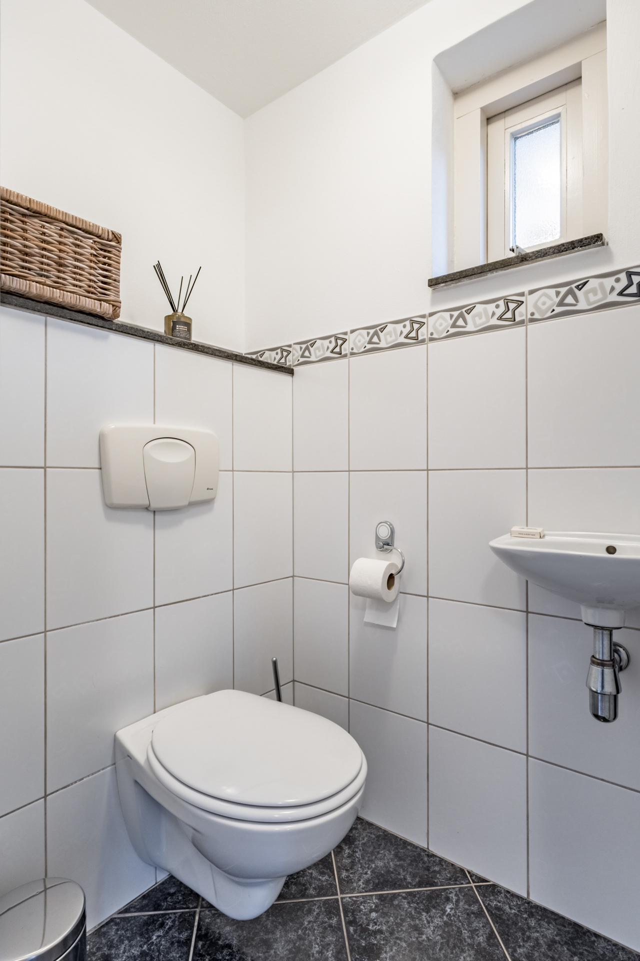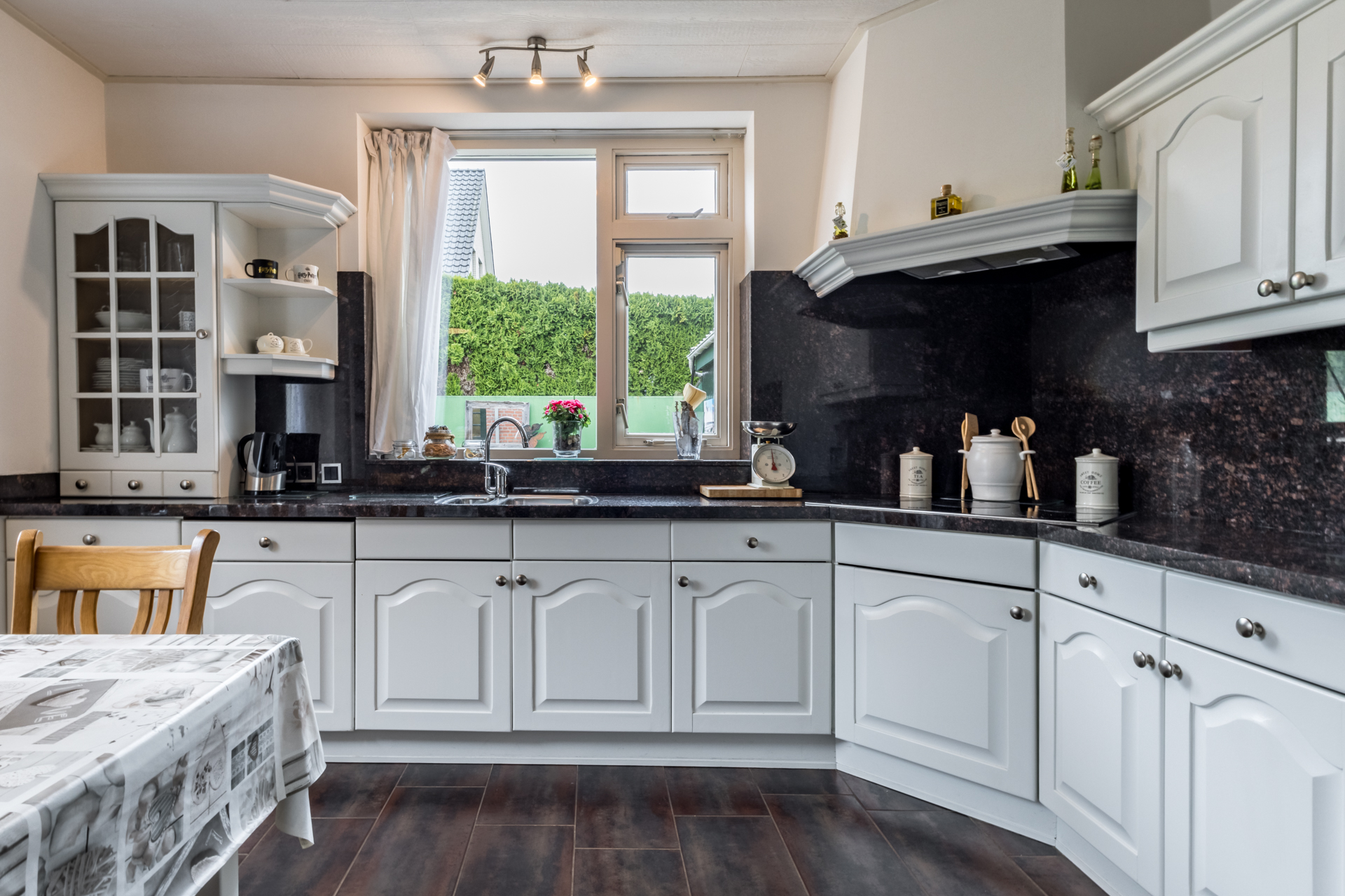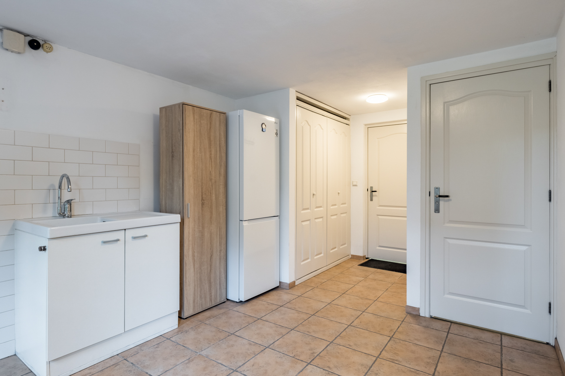Via de keuken is de grote bijkeuken bereikbaar welke is voorzien van inbouwkasten met witgoedaansluitingen en opstelling cv-installatie, toilet, badkamer met wastafelmeubel en douche en heb je toegang tot de tuin.