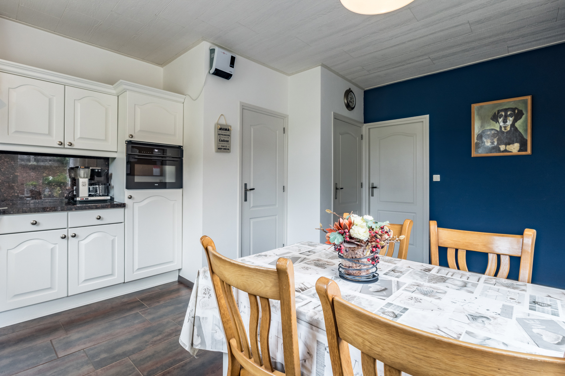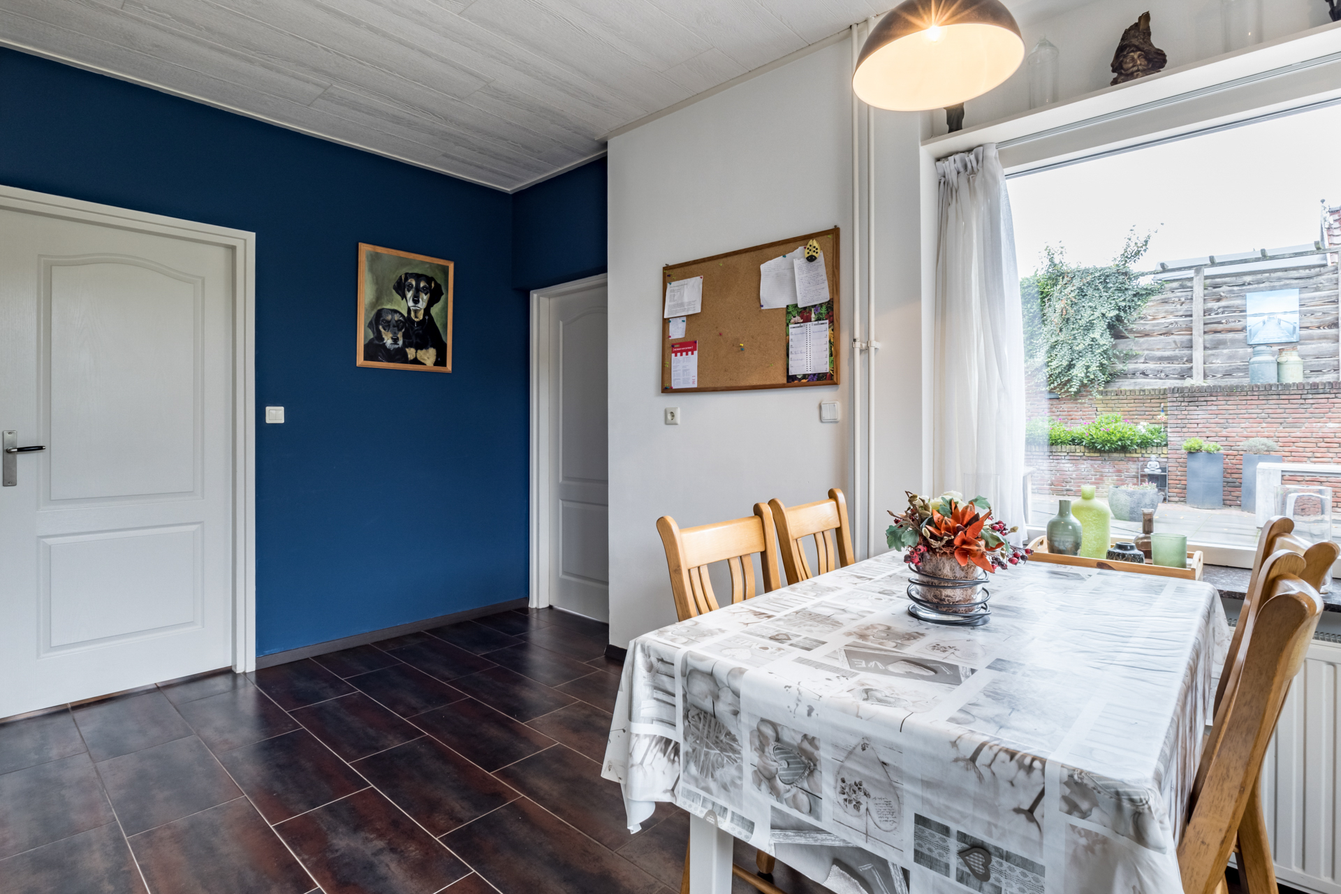 Vanuit de hal heb je toegang naar de woonkamer met goede lichtinval en de ruime, dichte, woonkeuken welke is voorzien van inbouwapparatuur, 10 liter boiler, provisiekelder en trapkast.