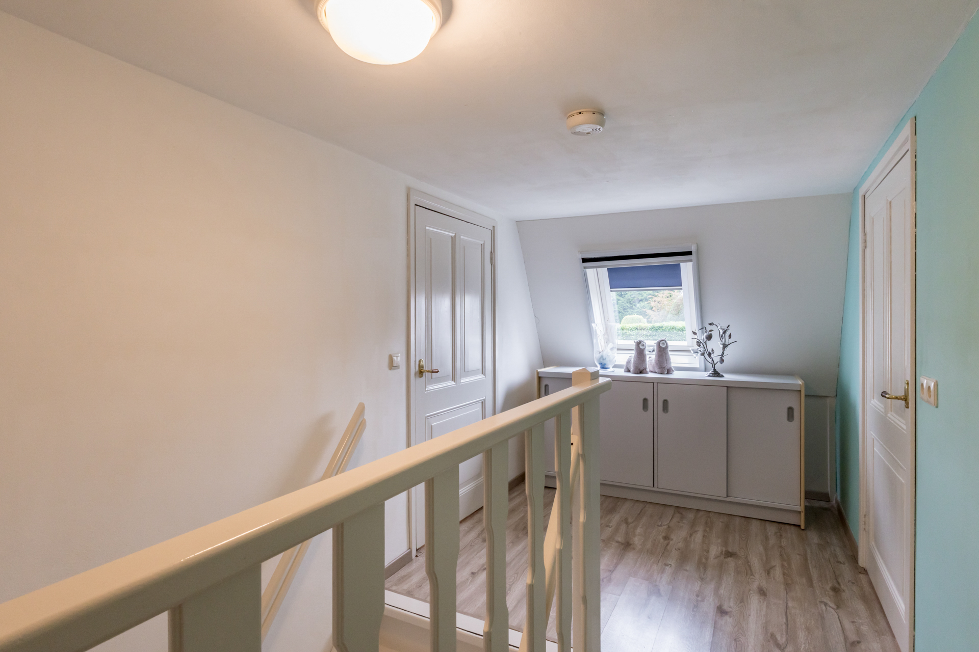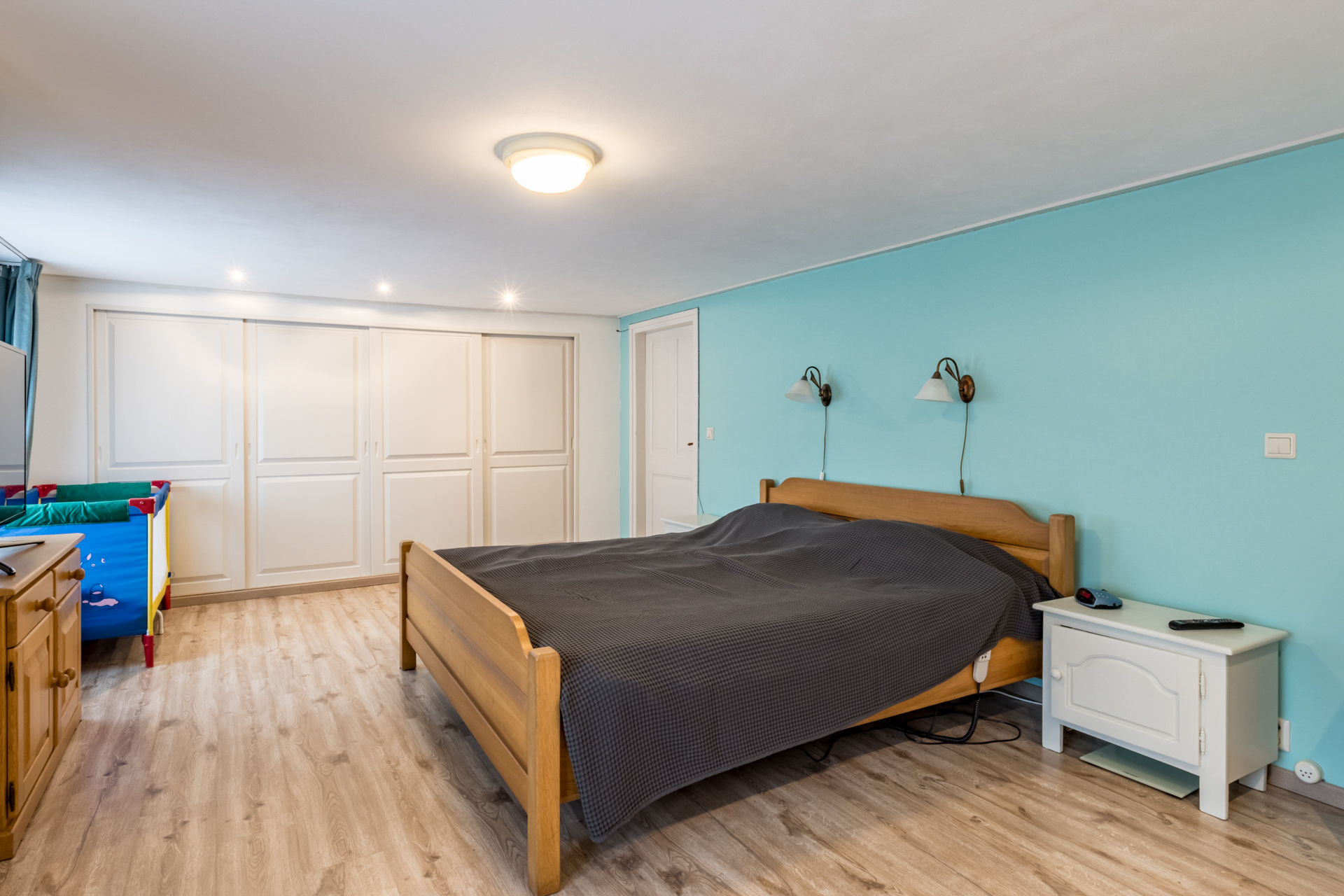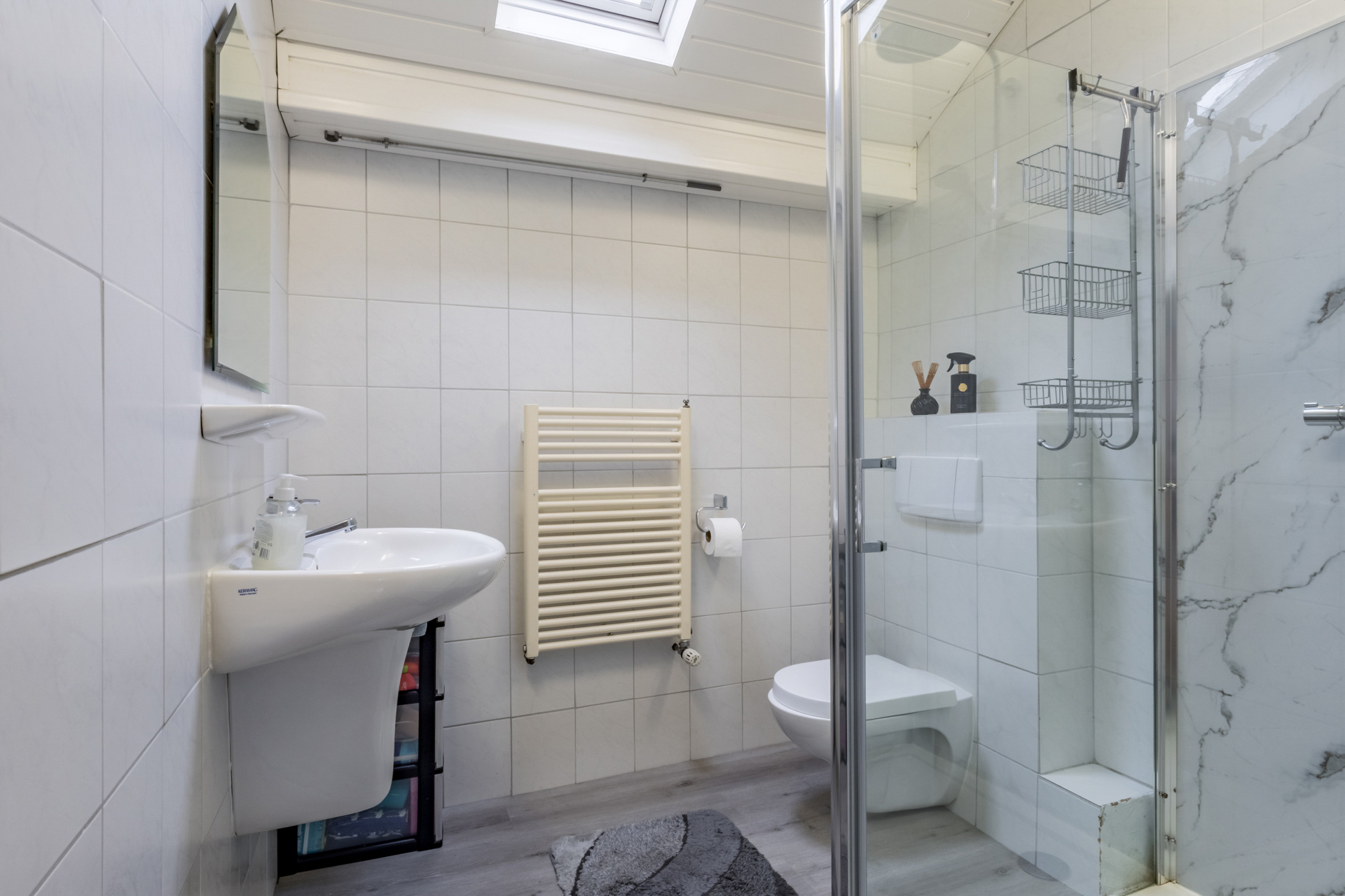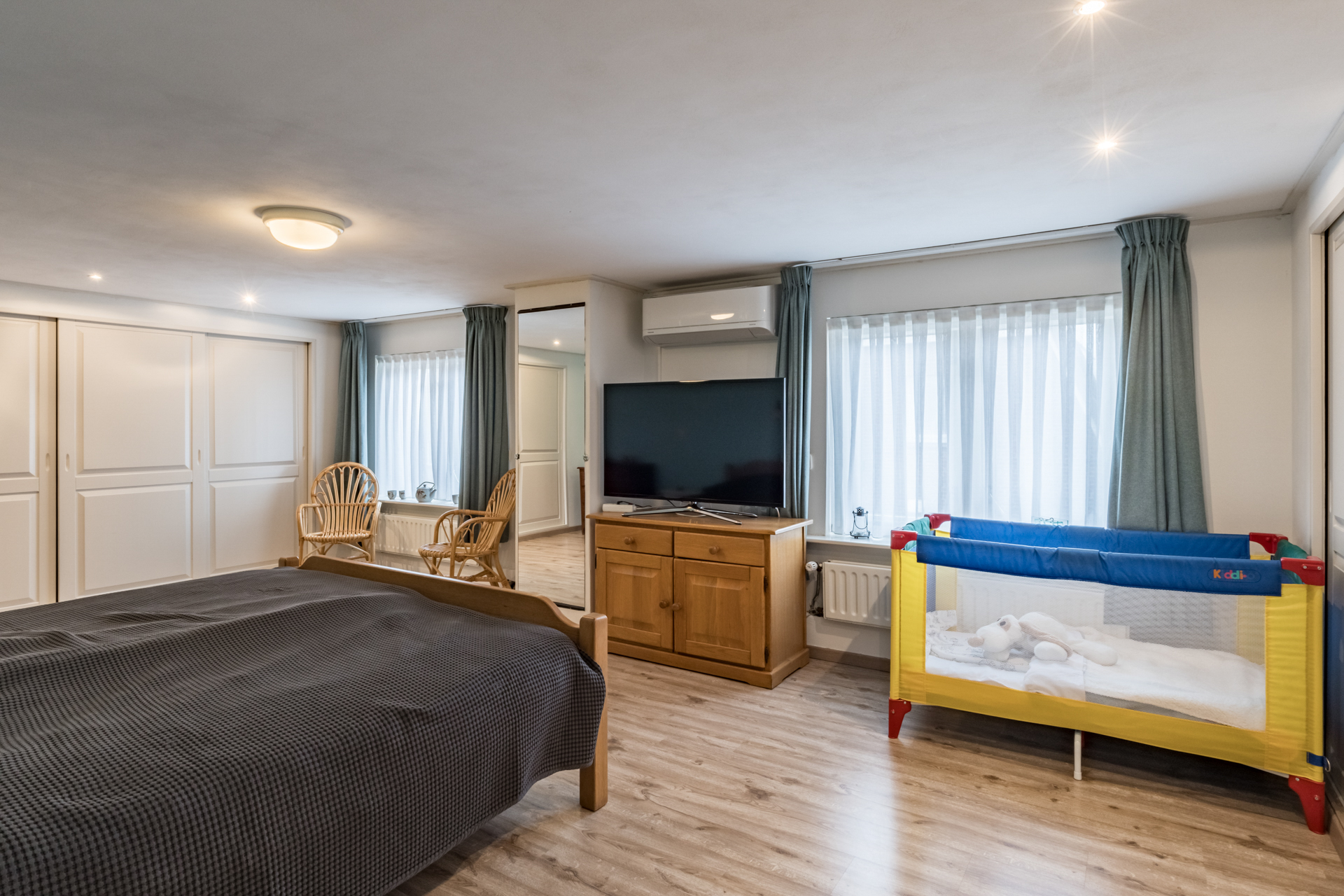 Vanuit de trap in de hal bereik je de overloop en 3 slaapkamers waarvan 1 zeer ruim. Alle slaapkamers zijn voorzien van airco. Hier vindt je ook de tweede badkamer, met douche, toilet en wastafel. Vanuit de overloop heb je middels een vlizotrap toegang tot de bergzolder. De hele verdieping is voorzien van een laminaatvloer.