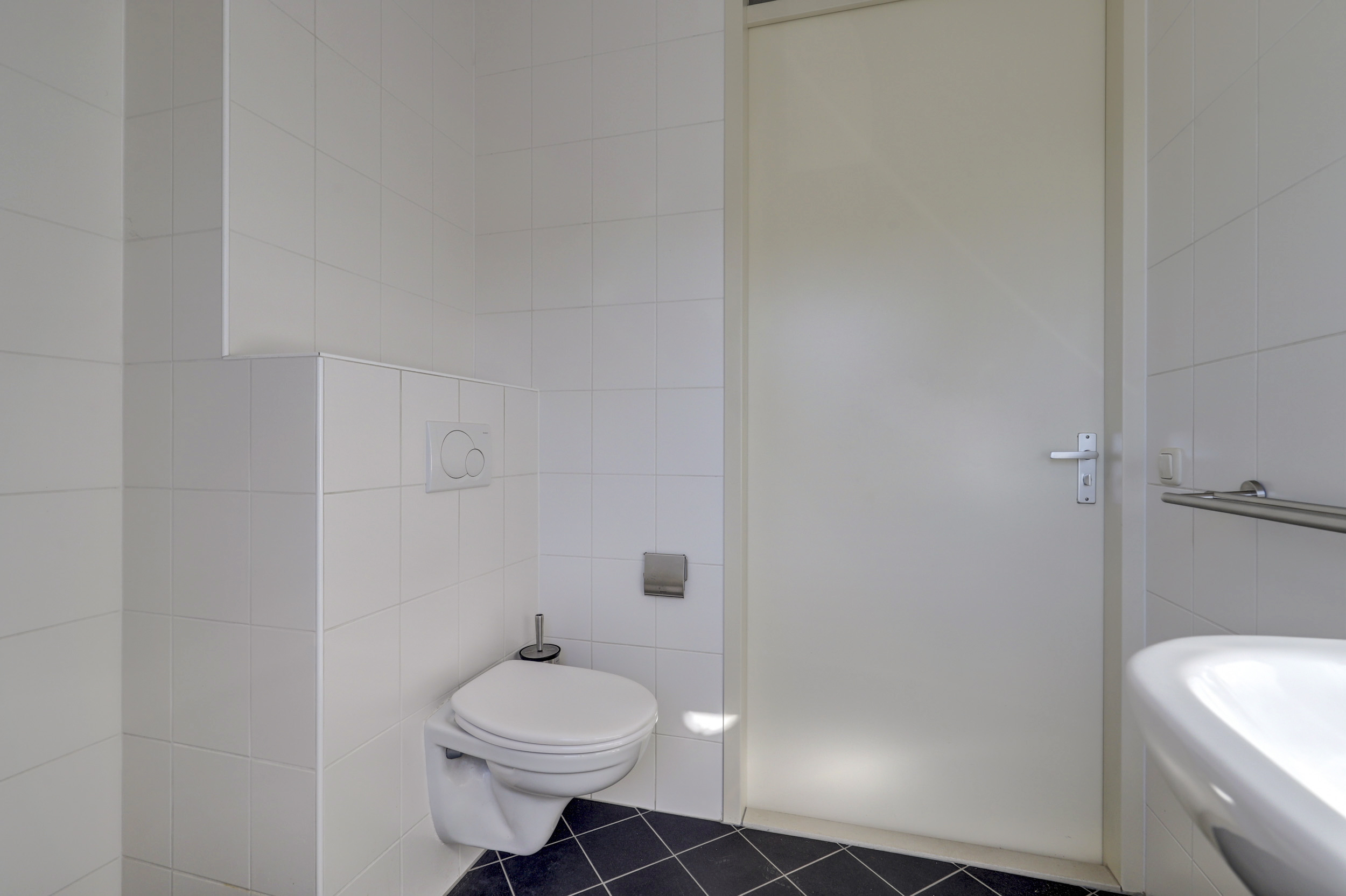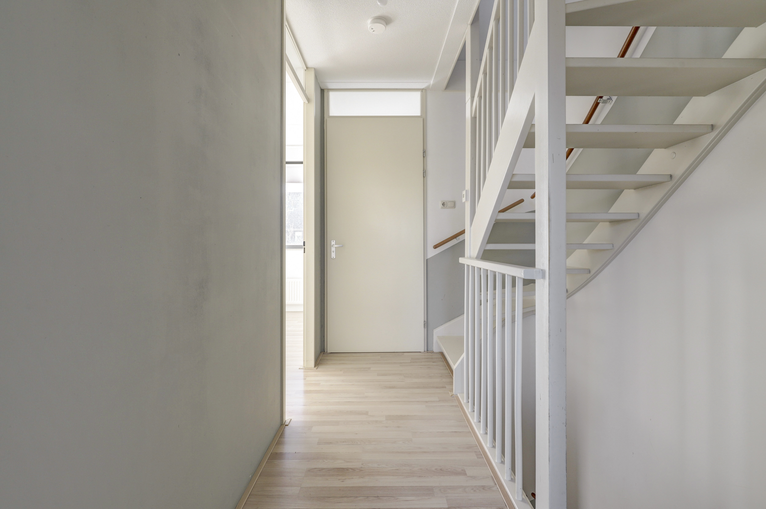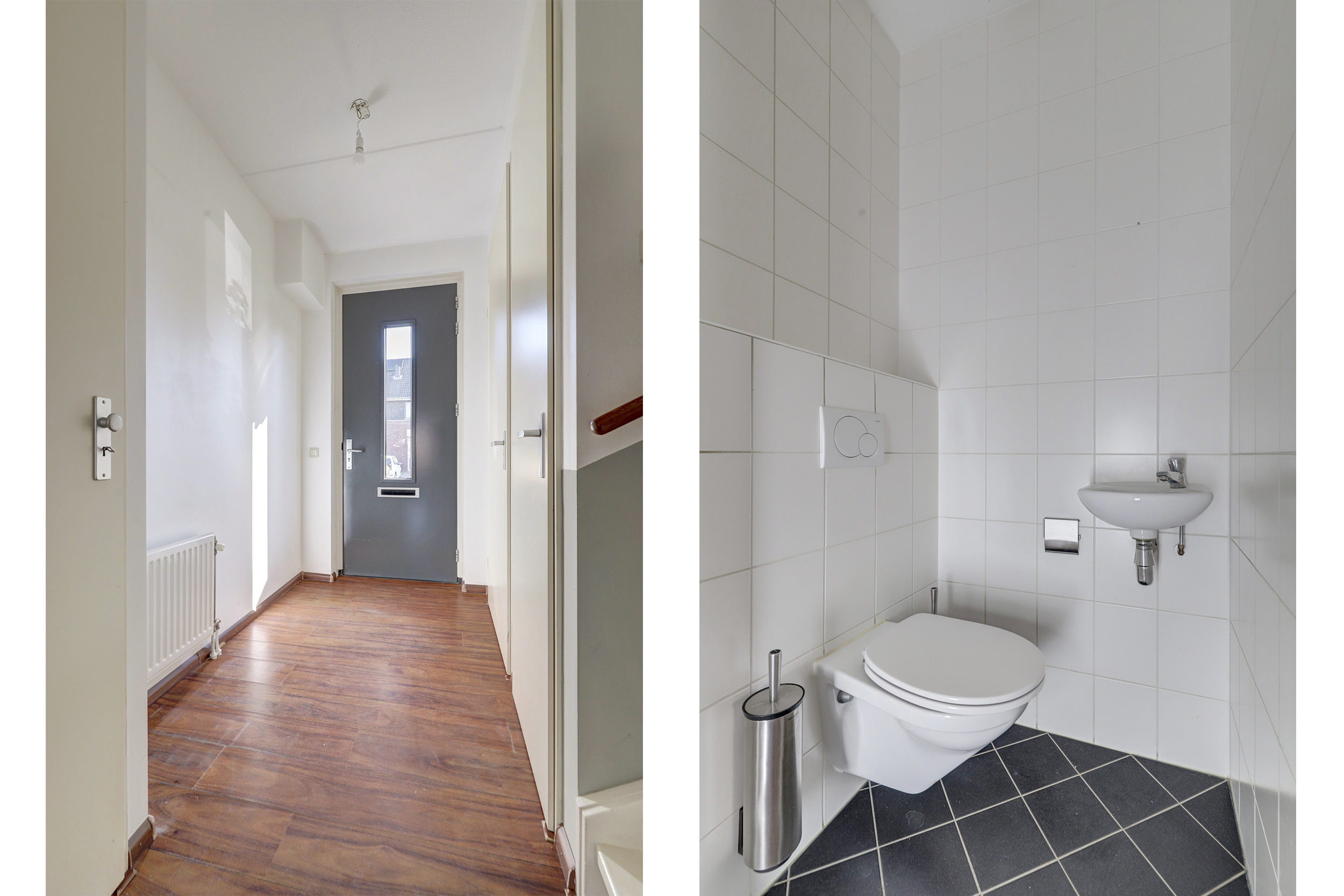 Je betreedt de woning via de entree/hal met meterkast, garderobekast met cv-ketel (Intergas 2008), een toiletruimte met zwevend toilet en fonteintje en de trapopgang naar de verdieping. Vanuit de hal stap je de woonkamer van circa 35 m² binnen. De leefruimte richt zich op de achtertuin en dankzij de grote ramen stroomt het daglicht prettig naar binnen. Via de achterdeur loop je direct het terras en de tuin in.