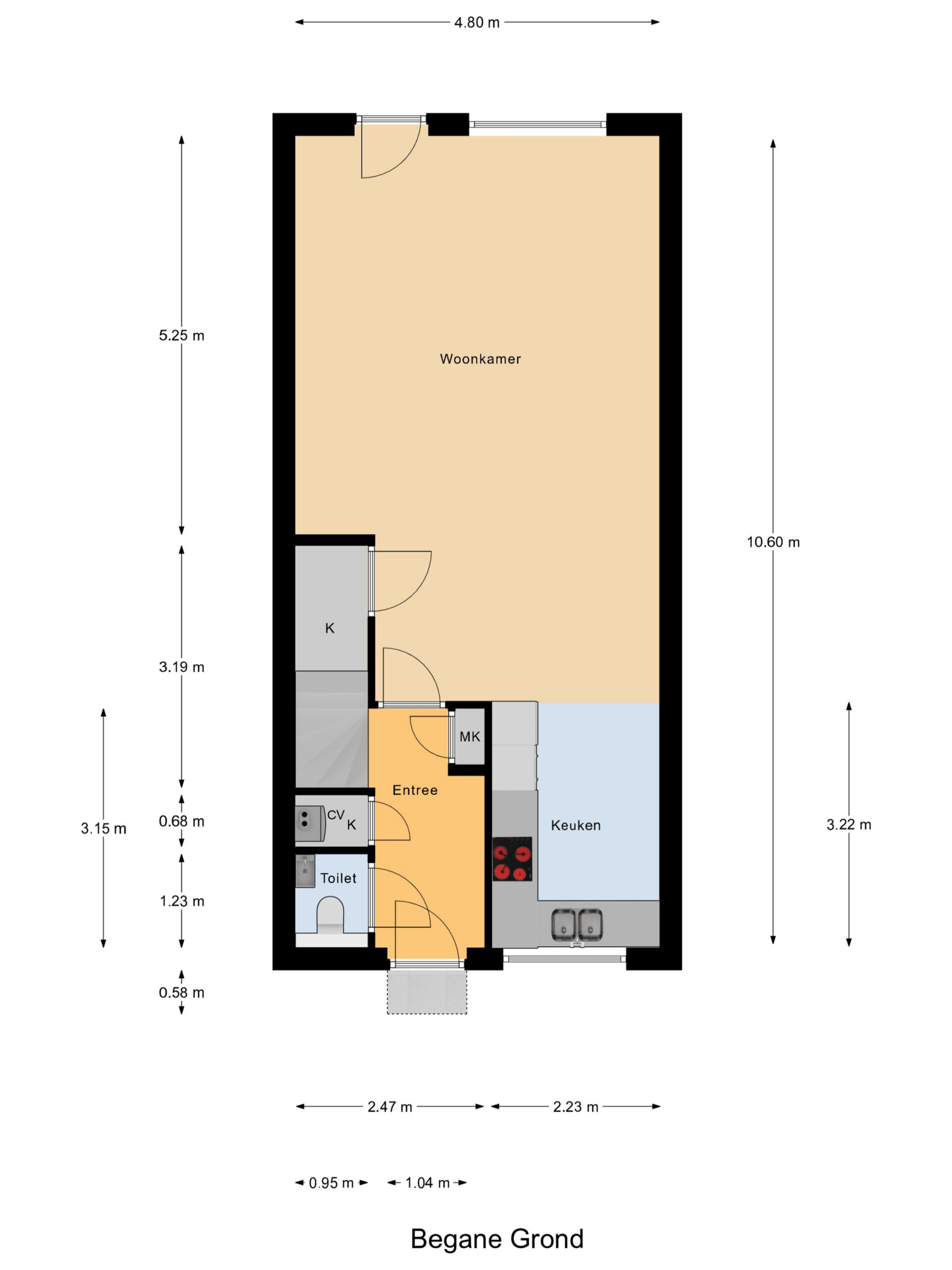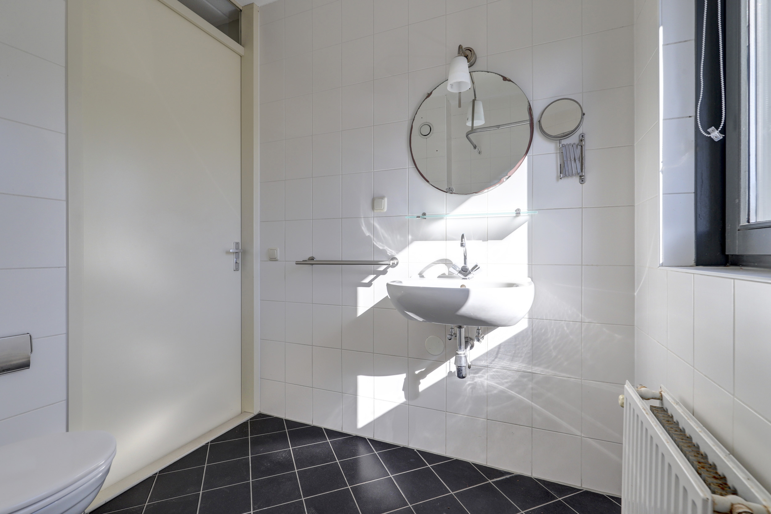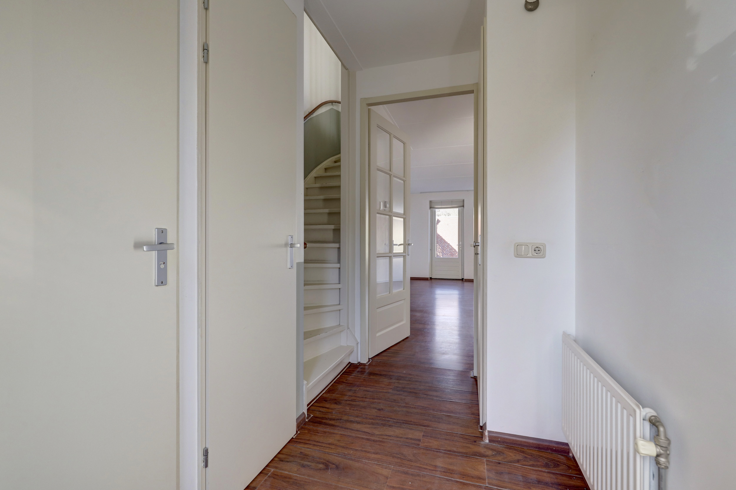 Je betreedt de woning via de entree/hal met meterkast, garderobekast met cv-ketel (Intergas 2008), een toiletruimte met zwevend toilet en fonteintje en de trapopgang naar de verdieping. Vanuit de hal stap je de woonkamer van circa 35 m² binnen. De leefruimte richt zich op de achtertuin en dankzij de grote ramen stroomt het daglicht prettig naar binnen. Via de achterdeur loop je direct het terras en de tuin in.