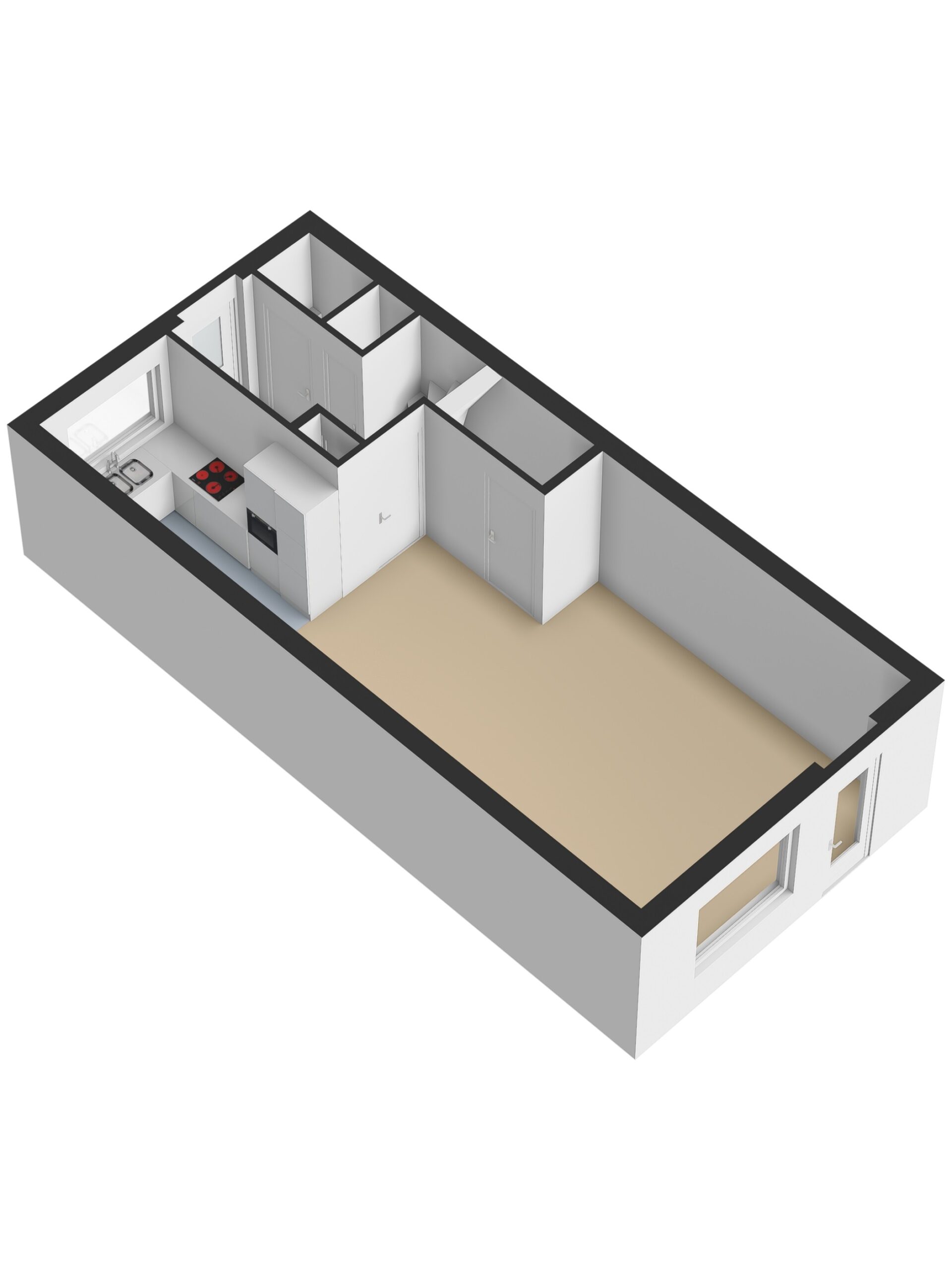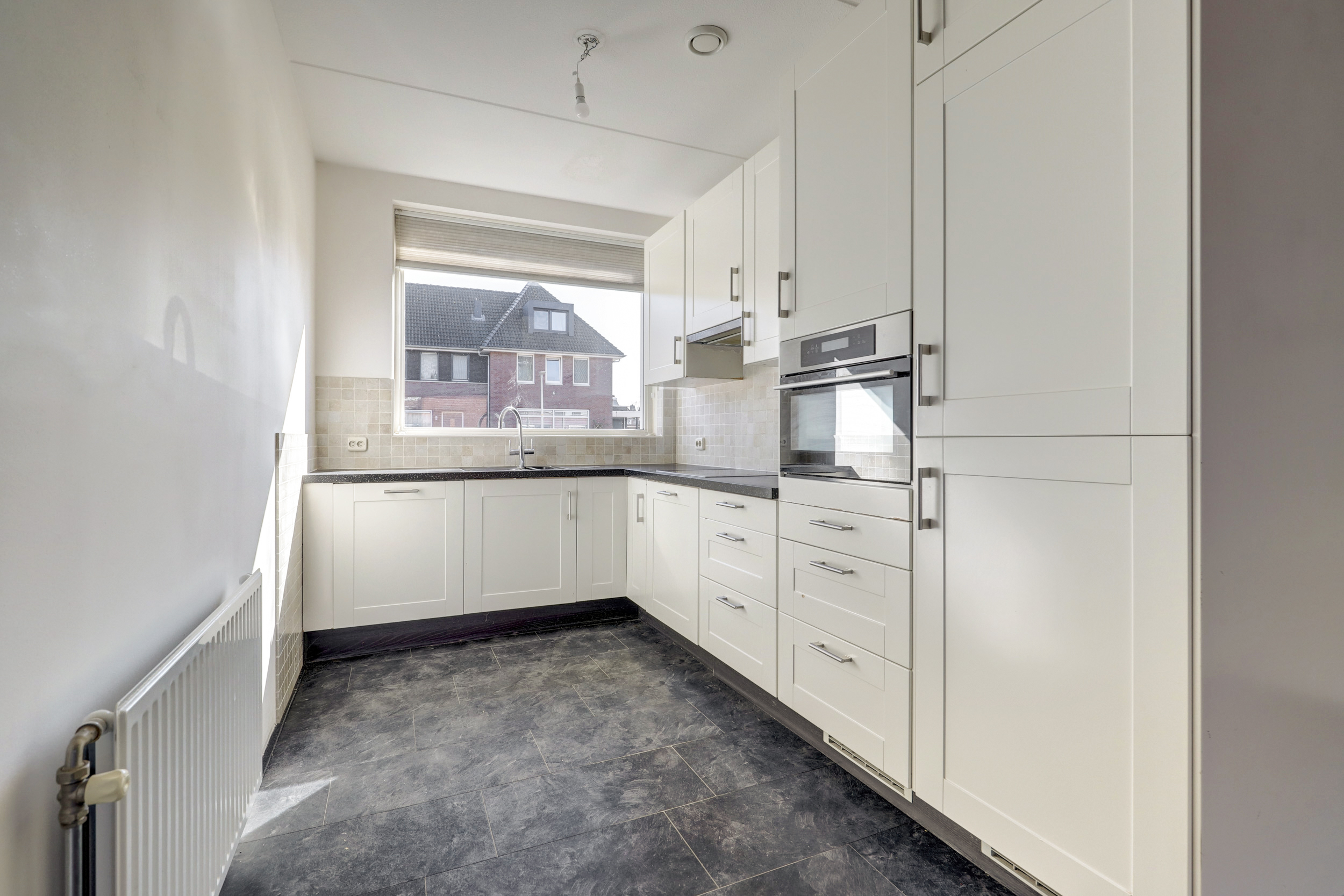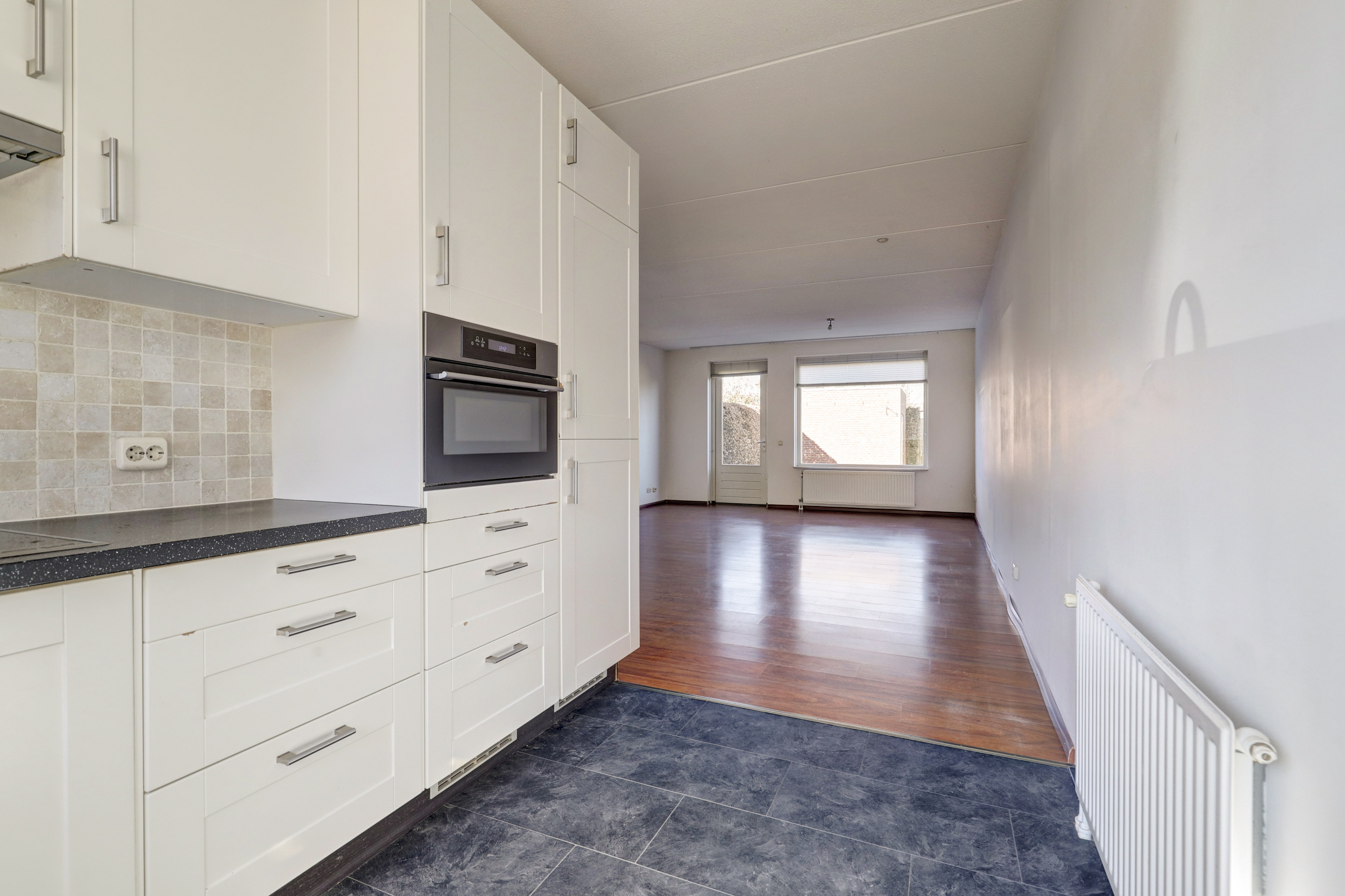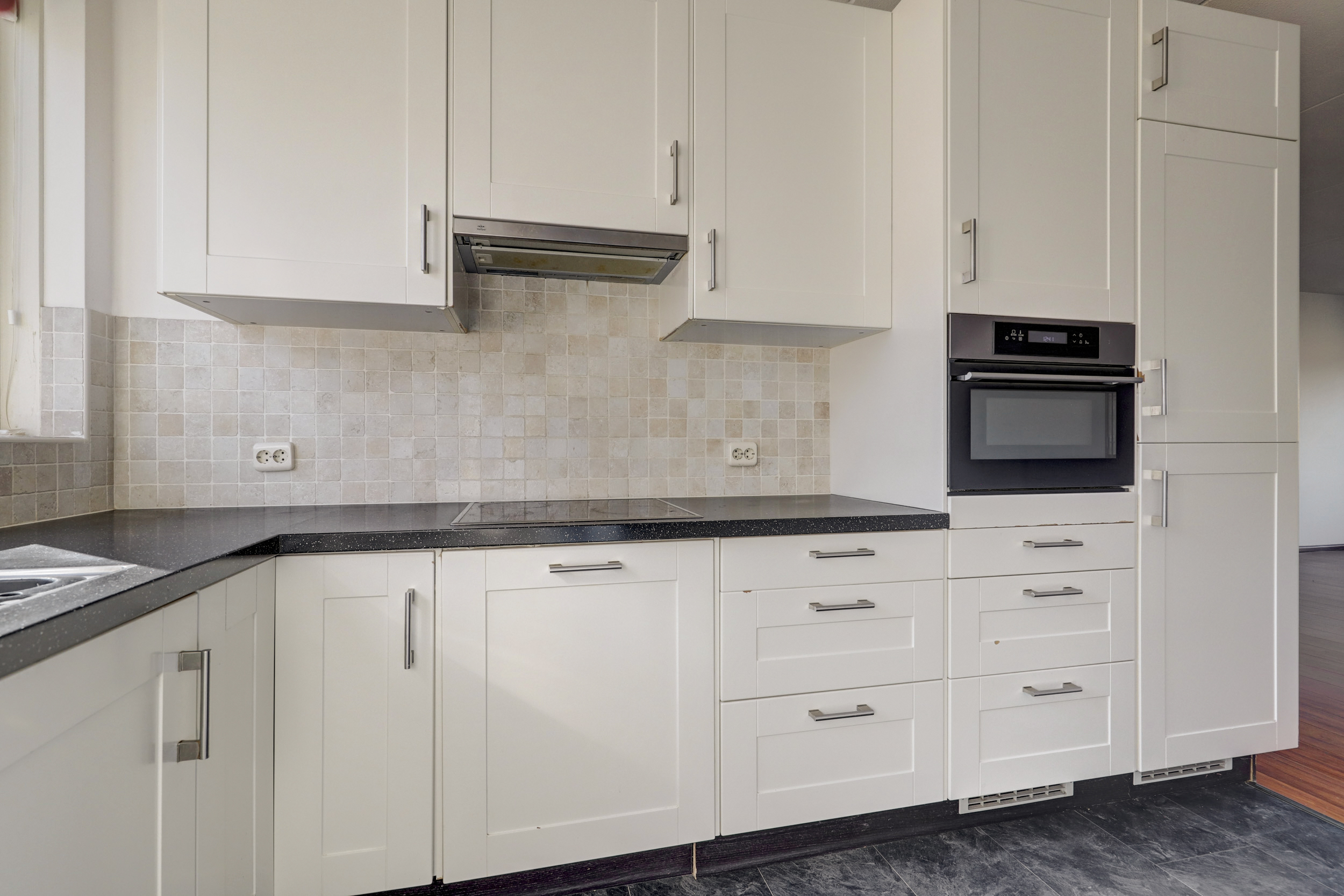 Aan de voorzijde van de woning bevindt zich de open keuken. Deze is uitgerust met onder andere een 4-pits gaskookplaat, afzuigkap, oven, vaatwasser en koelkast.