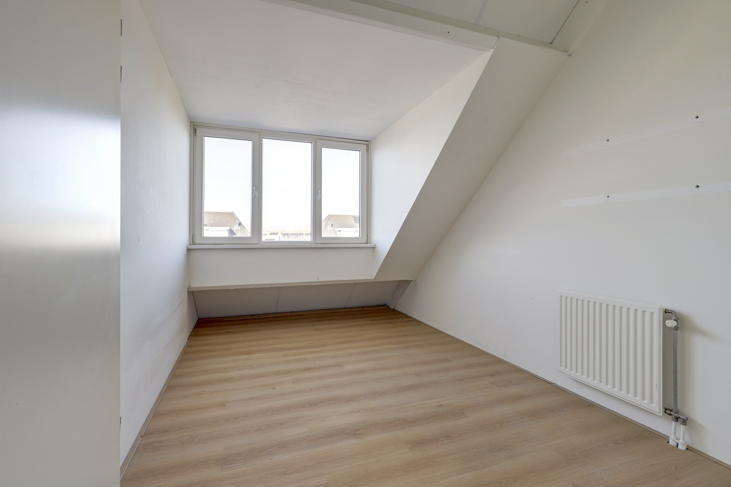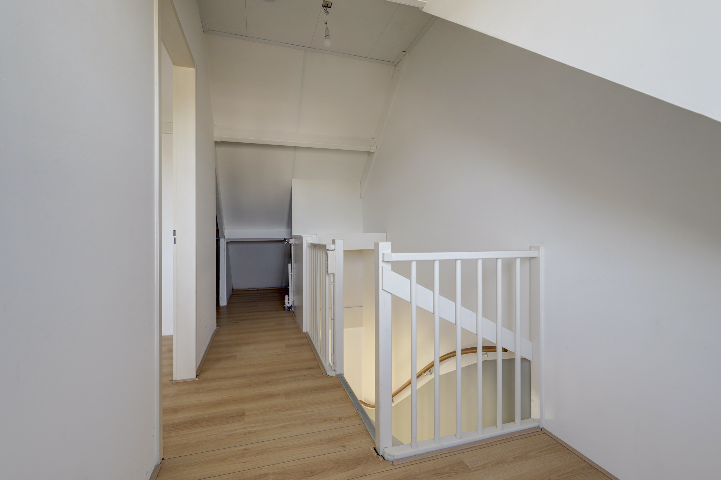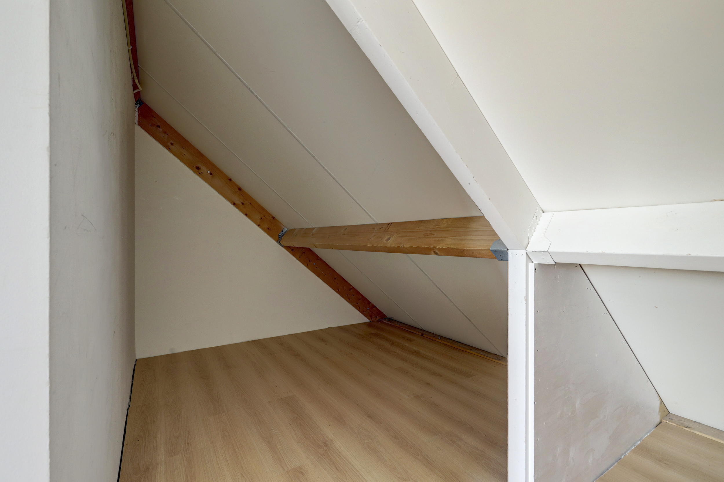 Via een vaste trap bereik je de tweede verdieping. Dankzij de brede dakkapel aan de achterzijde is hier een comfortabele slaapkamer gerealiseerd met veel natuurlijk licht. Ook op de voorzolder valt daglicht binnen, wat deze ruimte prettig bruikbaar maakt.