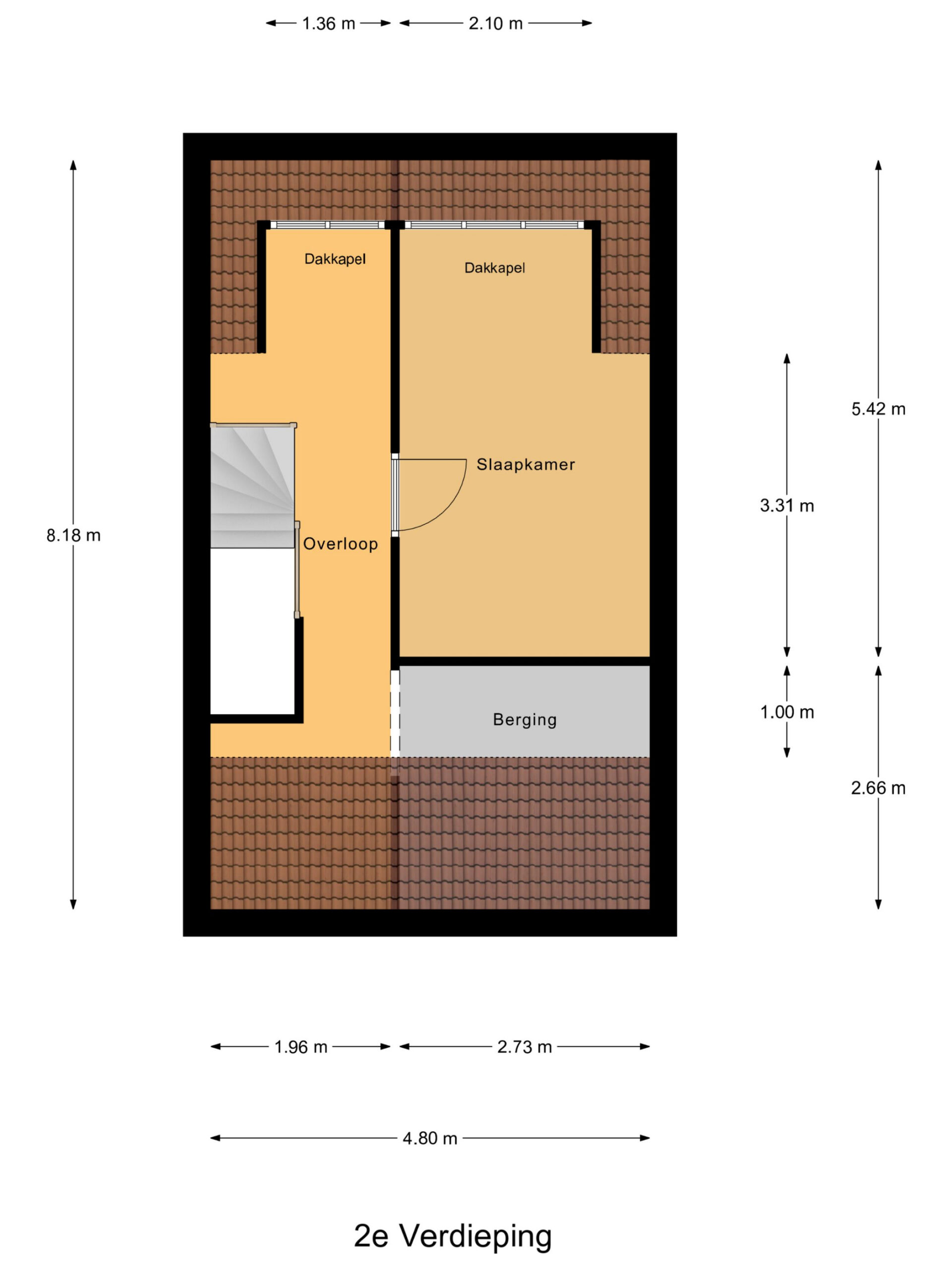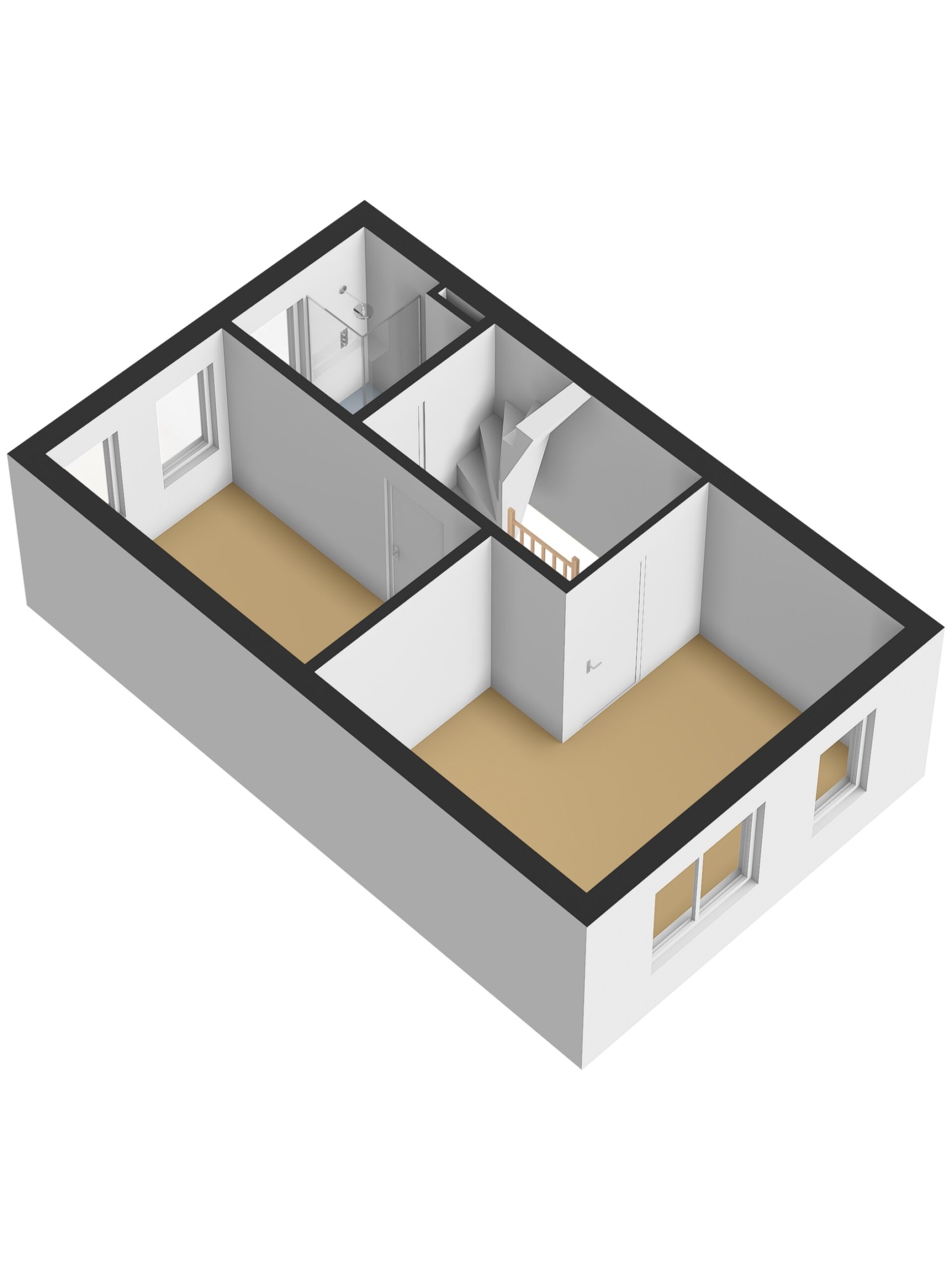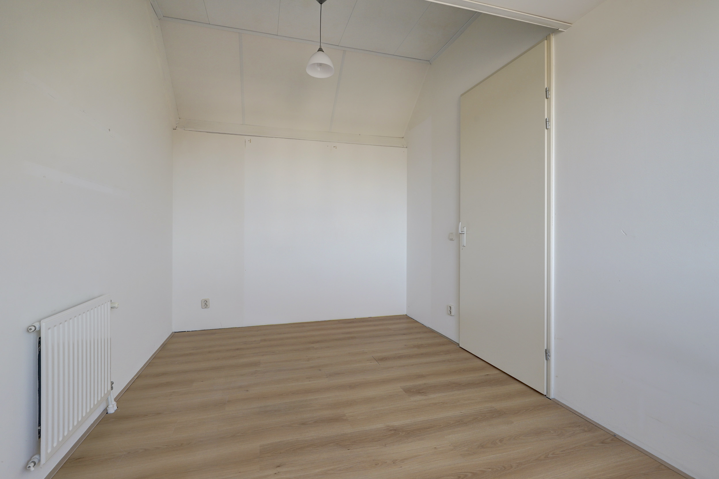 Via een vaste trap bereik je de tweede verdieping. Dankzij de brede dakkapel aan de achterzijde is hier een comfortabele slaapkamer gerealiseerd met veel natuurlijk licht. Ook op de voorzolder valt daglicht binnen, wat deze ruimte prettig bruikbaar maakt.