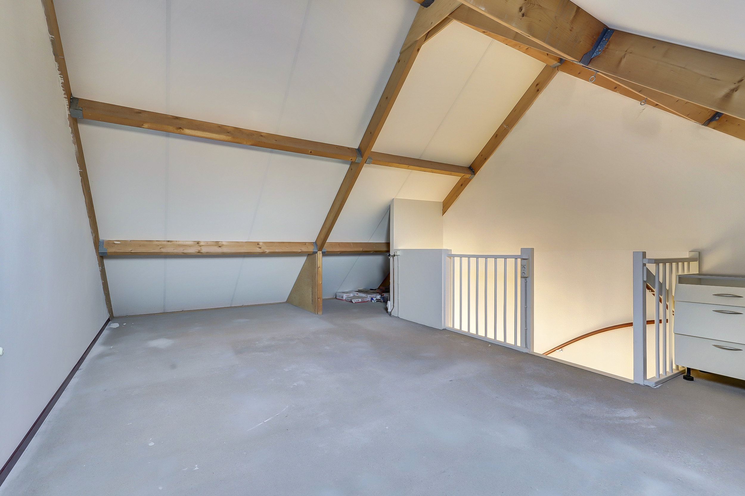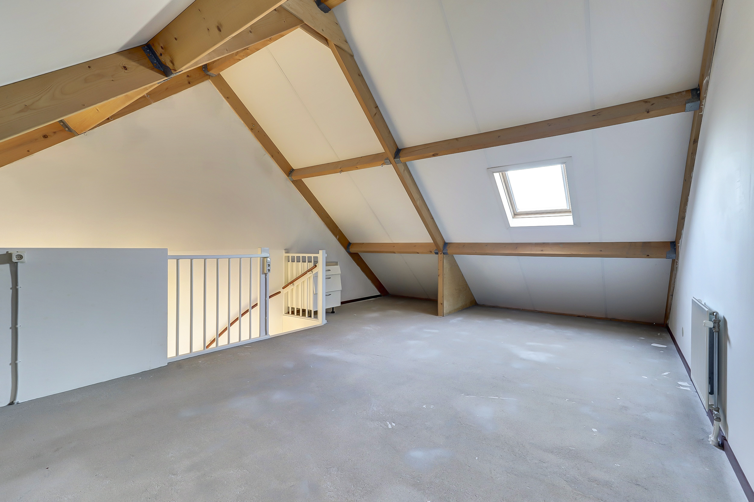 Via een vaste trap bereik je de ruime zolderverdieping. Deze open ruimte (ca. 23 m²) biedt volop mogelijkheden. Hier kun je eenvoudig een extra slaapkamer of werkruimte creëren.