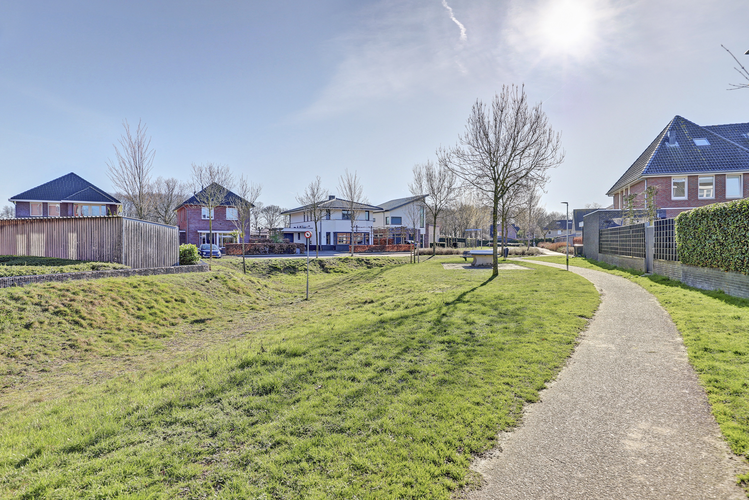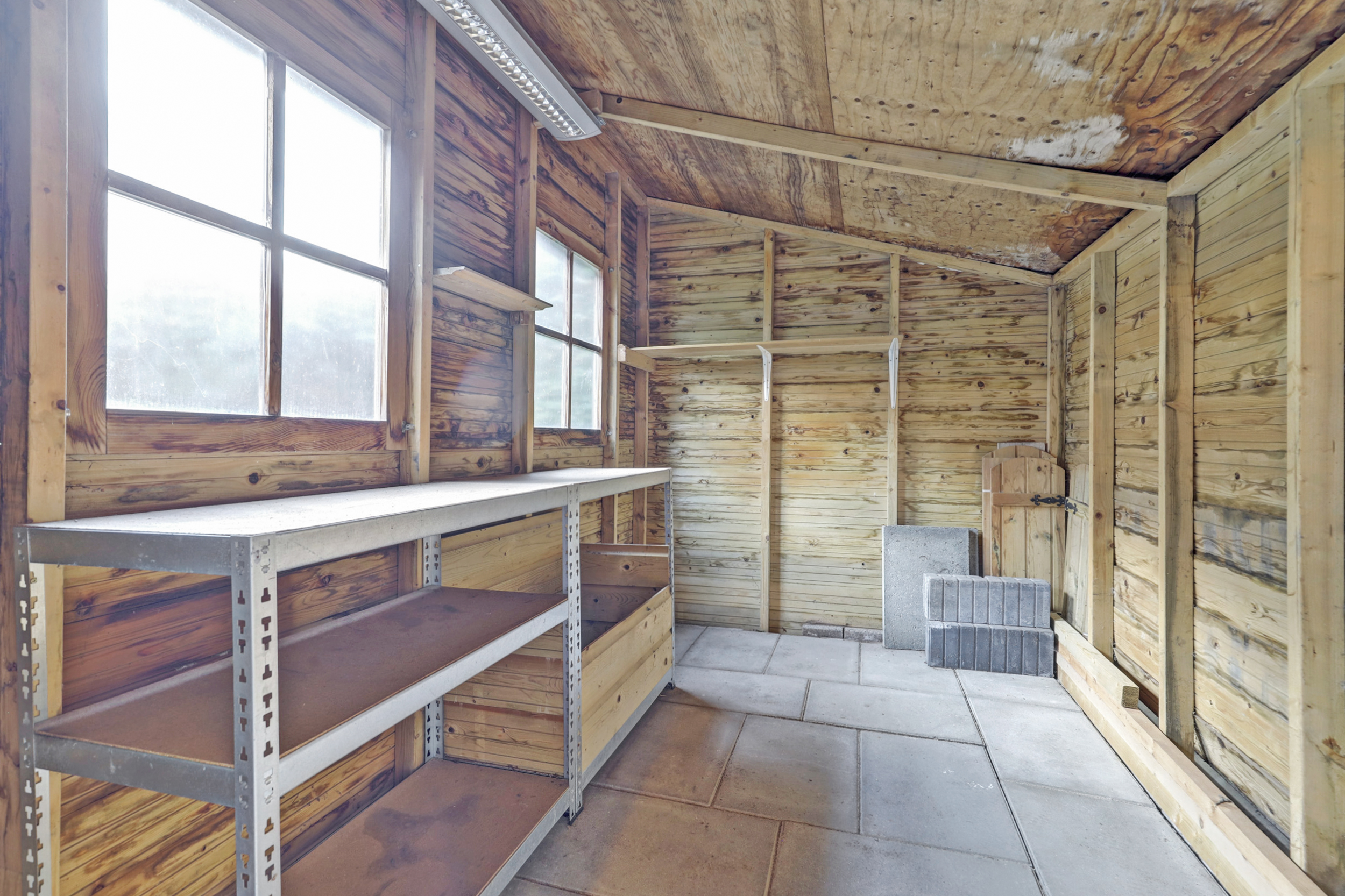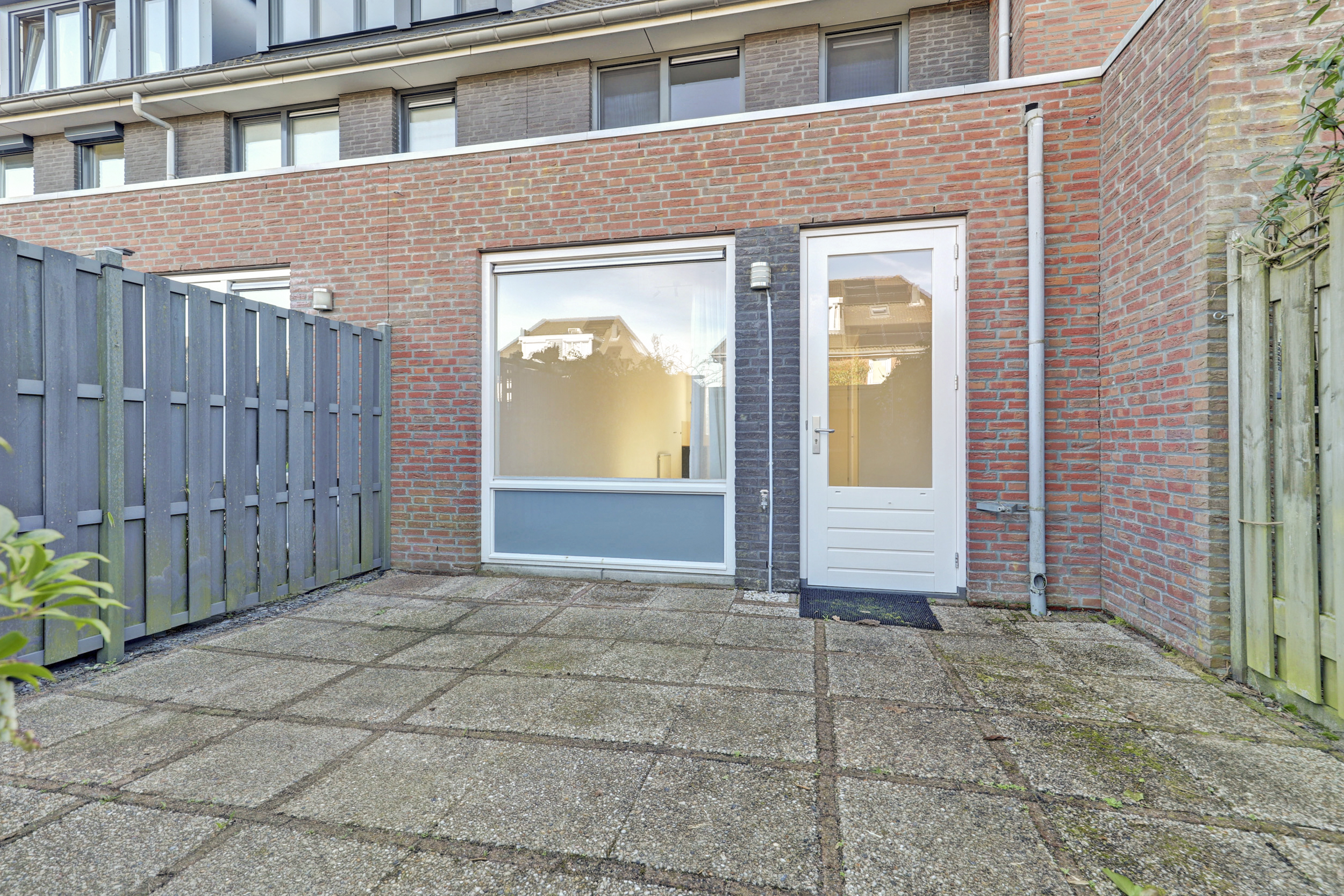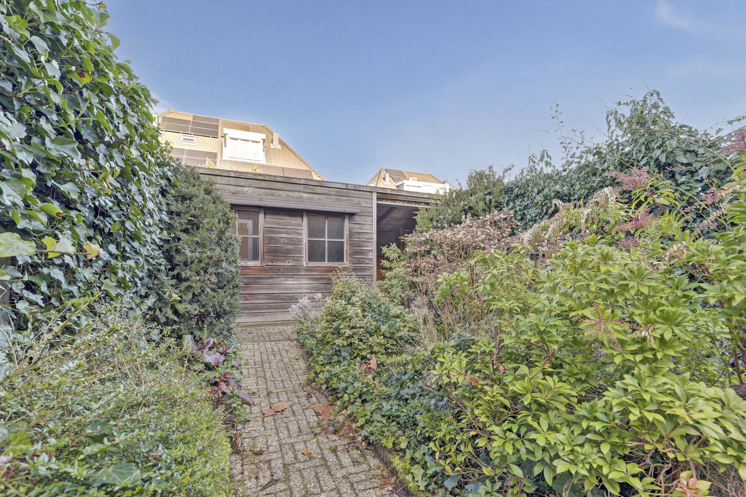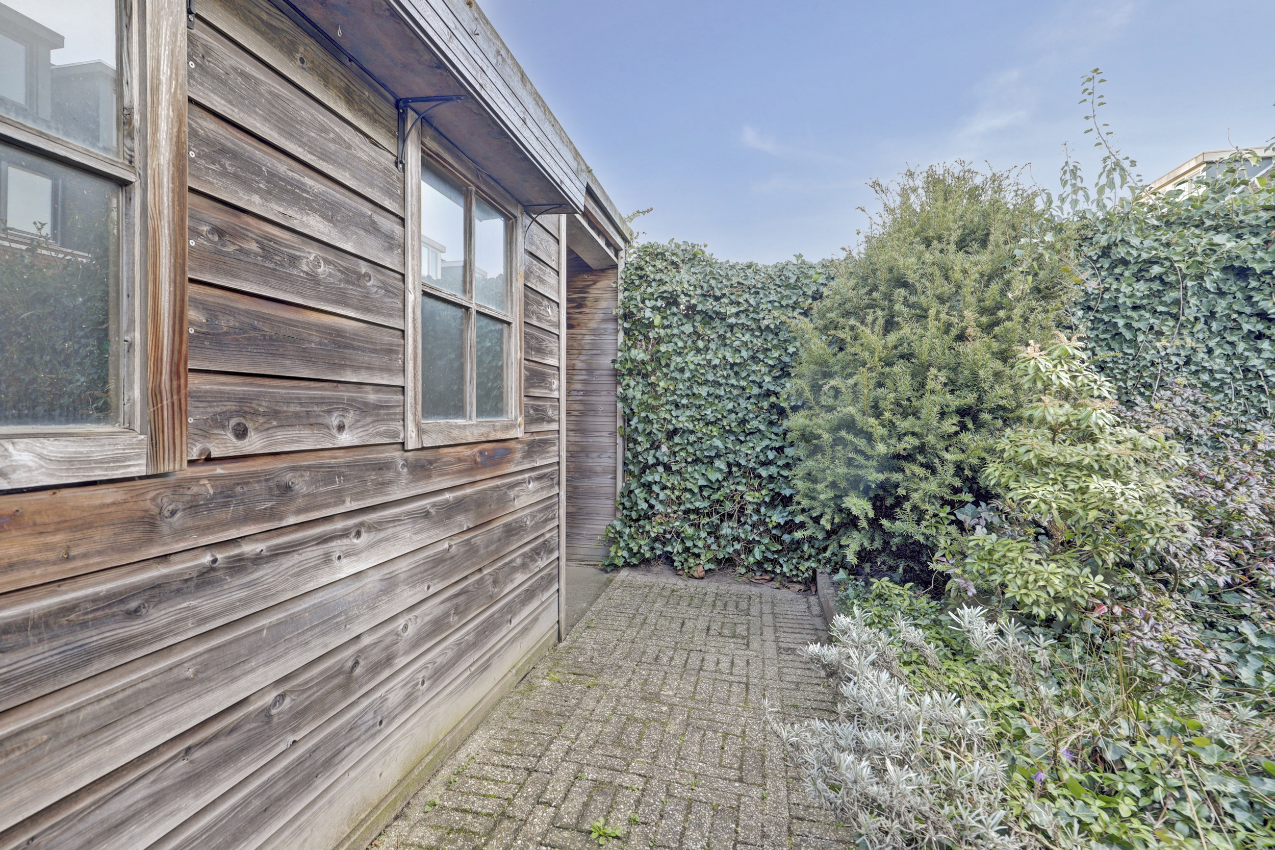 De woning beschikt over een onderhoudsvriendelijke voortuin en een netjes aangelegde achtertuin. In de tuin staat een praktische houten berging, ideaal voor fietsen en tuingereedschap. Via de achterom bereik je eenvoudig de woning en de tuin.