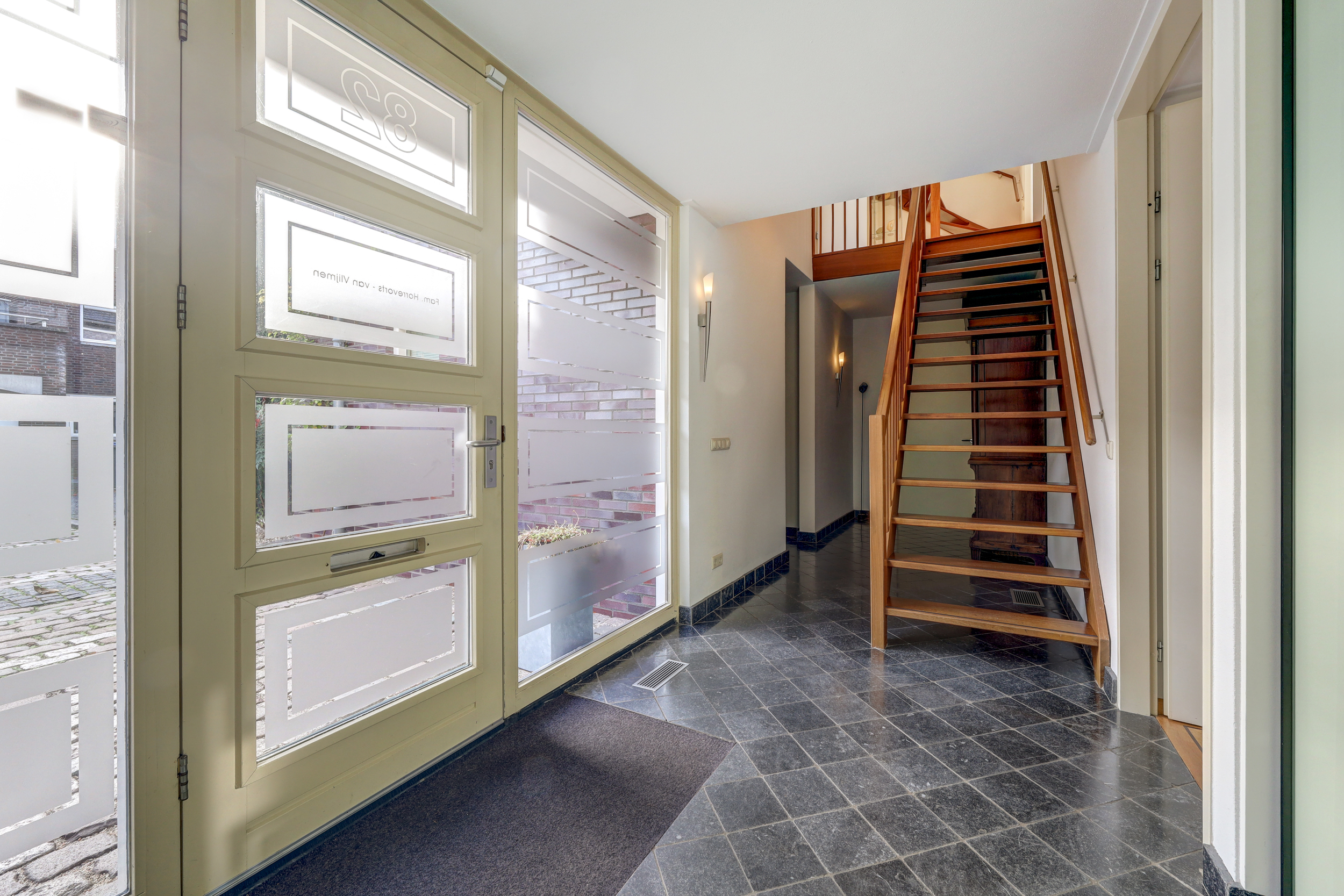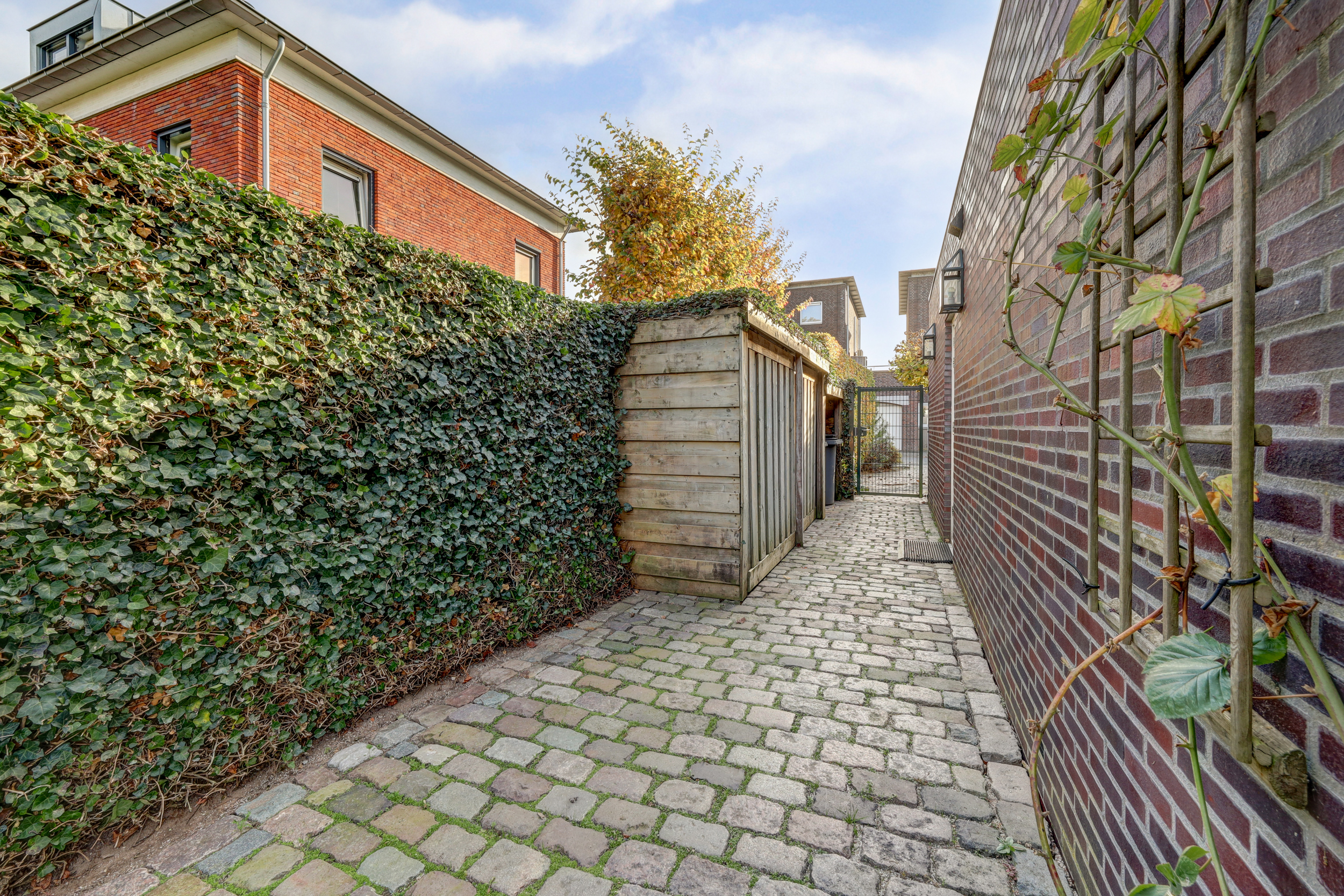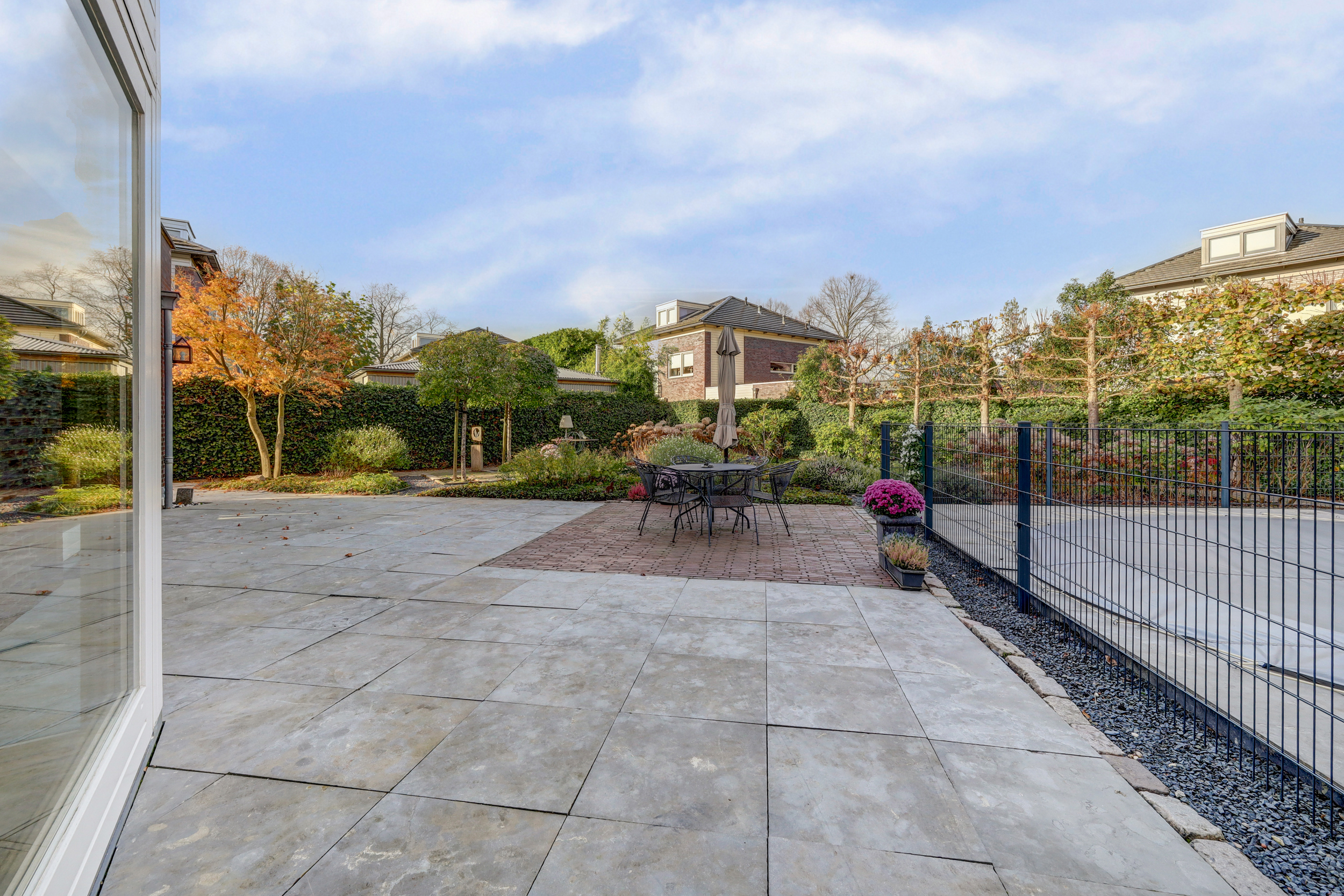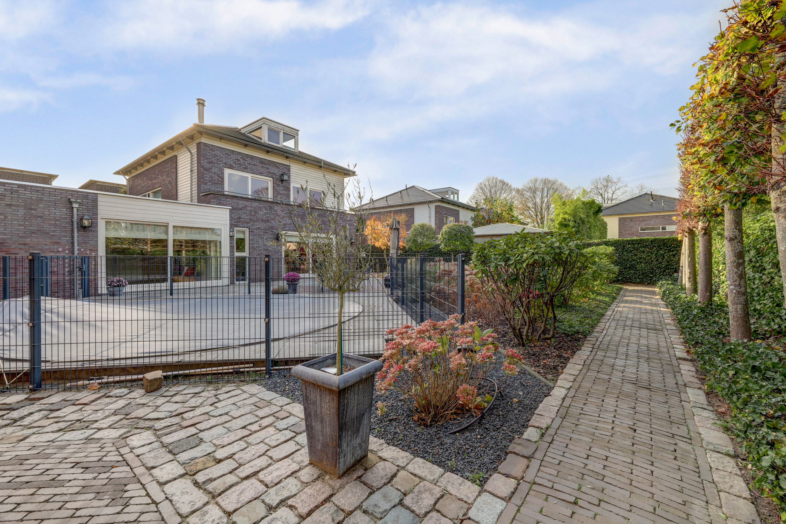 De achtertuin op het noorden, is verzorgd aangelegd en biedt volop ruimte om te ontspannen en te genieten van de zon of de schaduw. Door de ligging heb je veel vrijheid en privacy. Het ruime perceel, meerdere terrassen (boven het zijterras bevindt zich een zonnescherm), het zwembad (ca. 1,50 m diep), de houten berging met overkapping, sproei installatie, elektrapunten, buitenkraan en achterom via poort maken dit een fijne plek om te genieten. De houten berging van ca. 6 m² met elektra en opstelplaats voor de pomp van de sproei installatie en de pomp en het filter van het zwembad. Voor de garage kun je op de eigen oprit met meerdere auto’s naast elkaar parkeren. De voortuin is netjes en onderhoudsvriendelijk aangelegd.