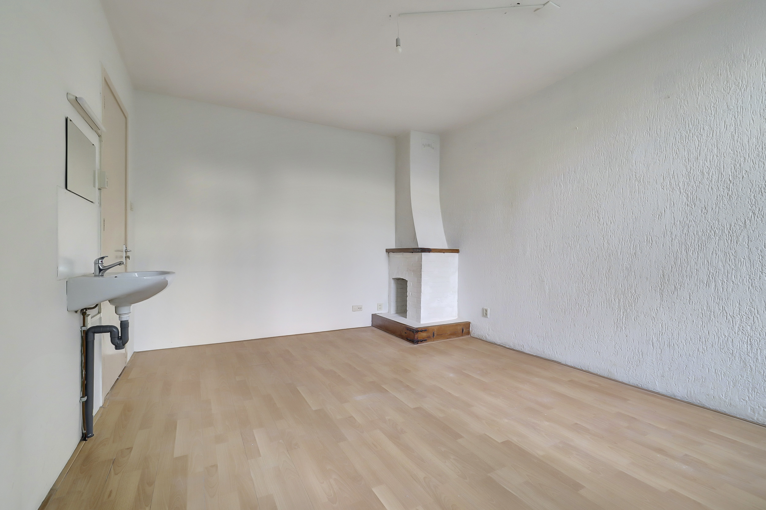 Aansluitend bereik je een slaapkamer met wastafel en toegang tot de achtertuin. Dankzij de directe aansluiting op de woonkamer leent deze kamer zich perfect voor een royale, open leefruimte.