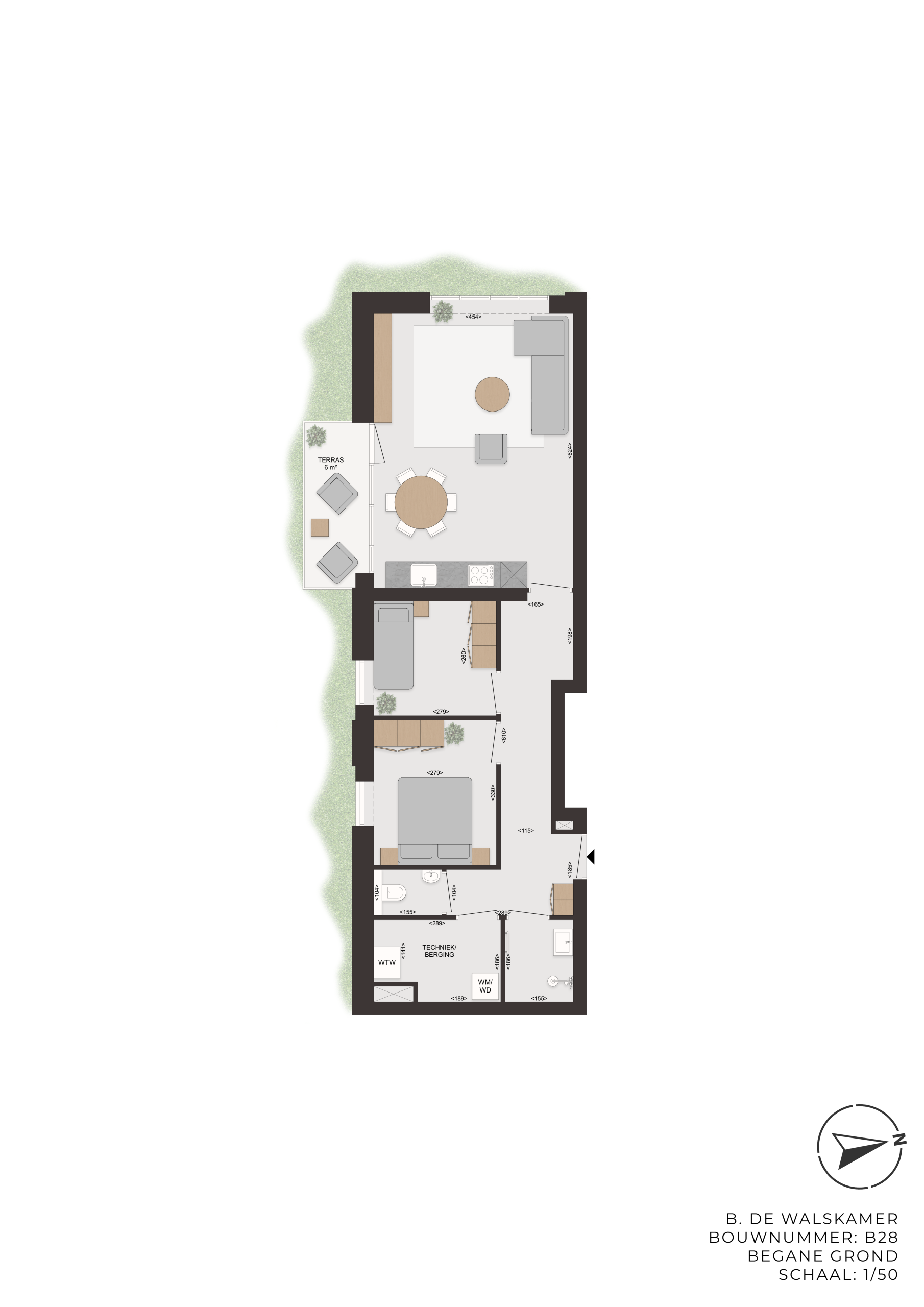 De Walskamer is een modern zeslaags appartementencomplex met in totaal 20 appartementen en 2 maisonettes. Vanuit de centrale hal bereik je via de gang het driekamer-hoekappartement op de begane grond – een lichte, ruime en comfortabel ingedeelde woning met een sterke verbinding met de groene omgeving.