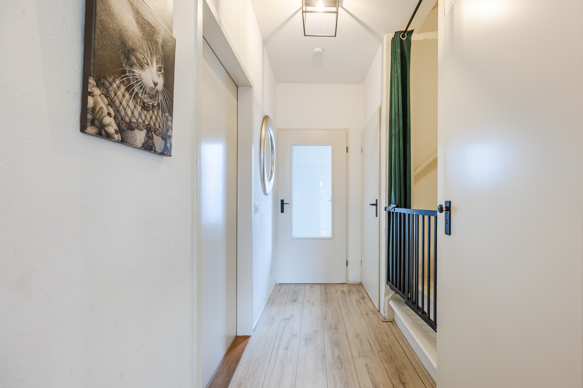 Entree, hal met trapopgang, trap/meterkast, toilet en toegang naar de woonkamer en de keuken.