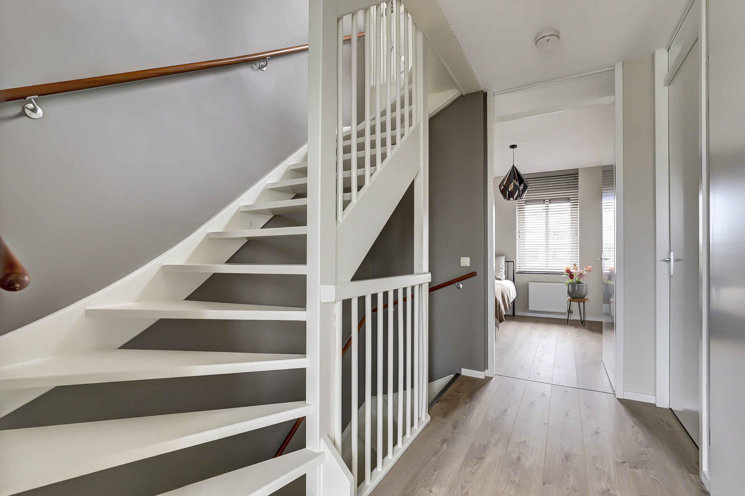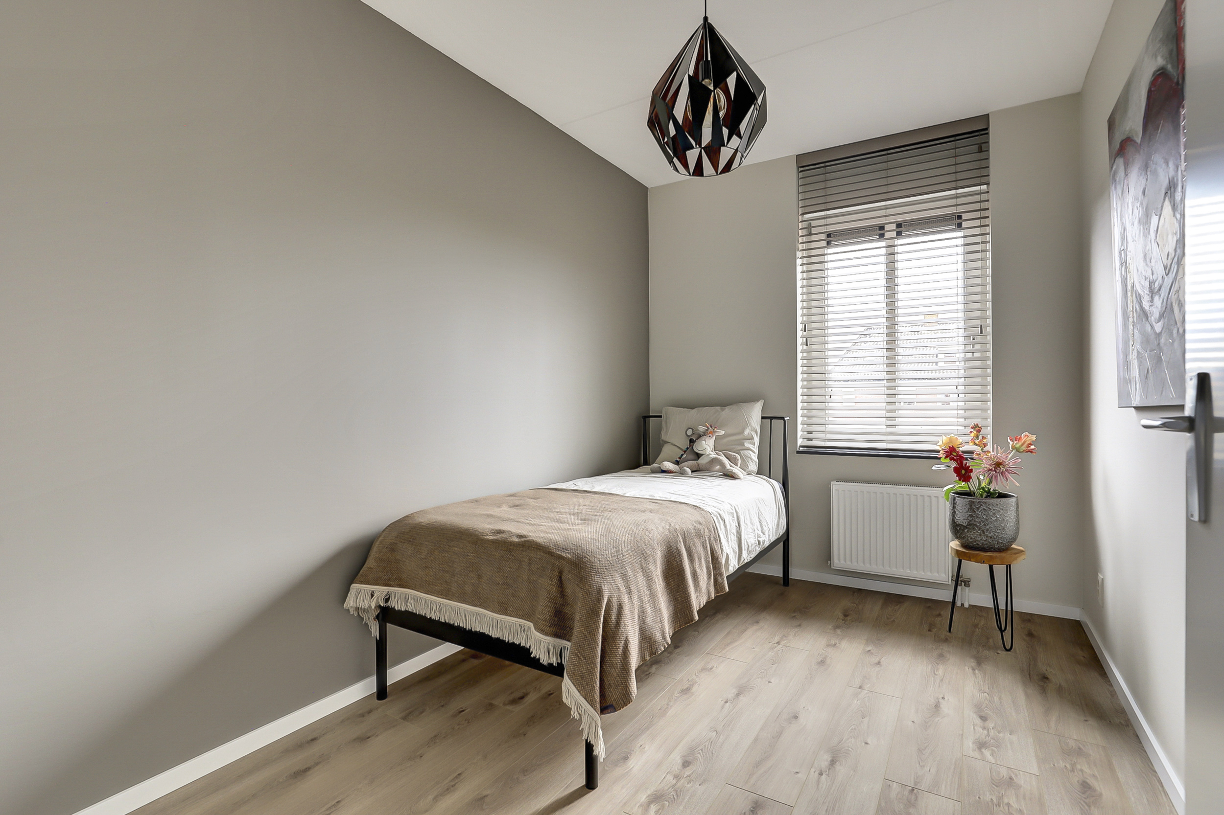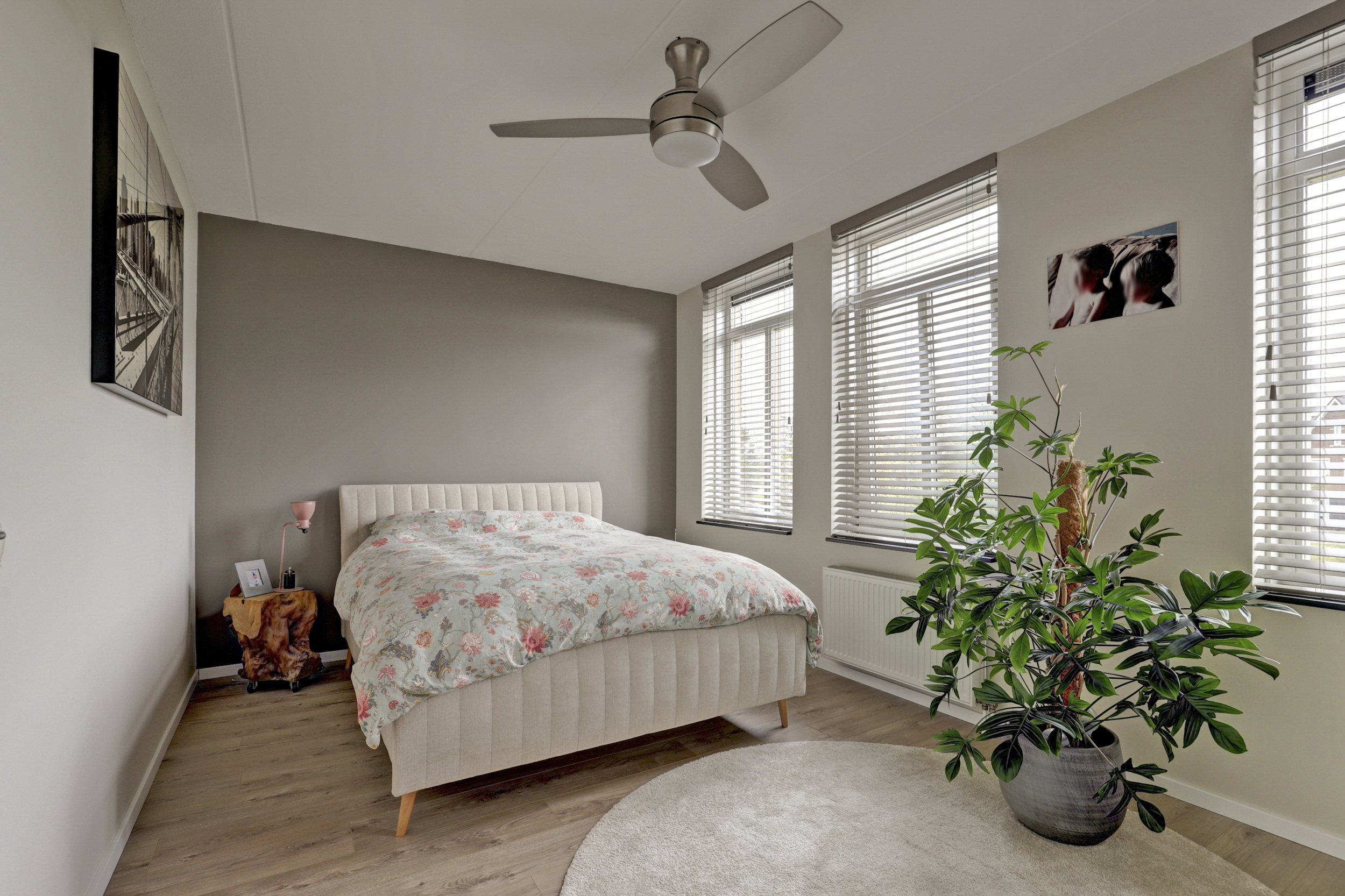 Op de eerste verdieping vind je drie slaapkamers, waarvan de hoofdslaapkamer uitkijkt over het water. De twee overige kamers liggen aan de tuinzijde. Alle kamers zijn voorzien van laminaatvloeren. De badkamer is fris en modern, met een ruime inloopdouche, wastafel en een vrij hangend toilet.