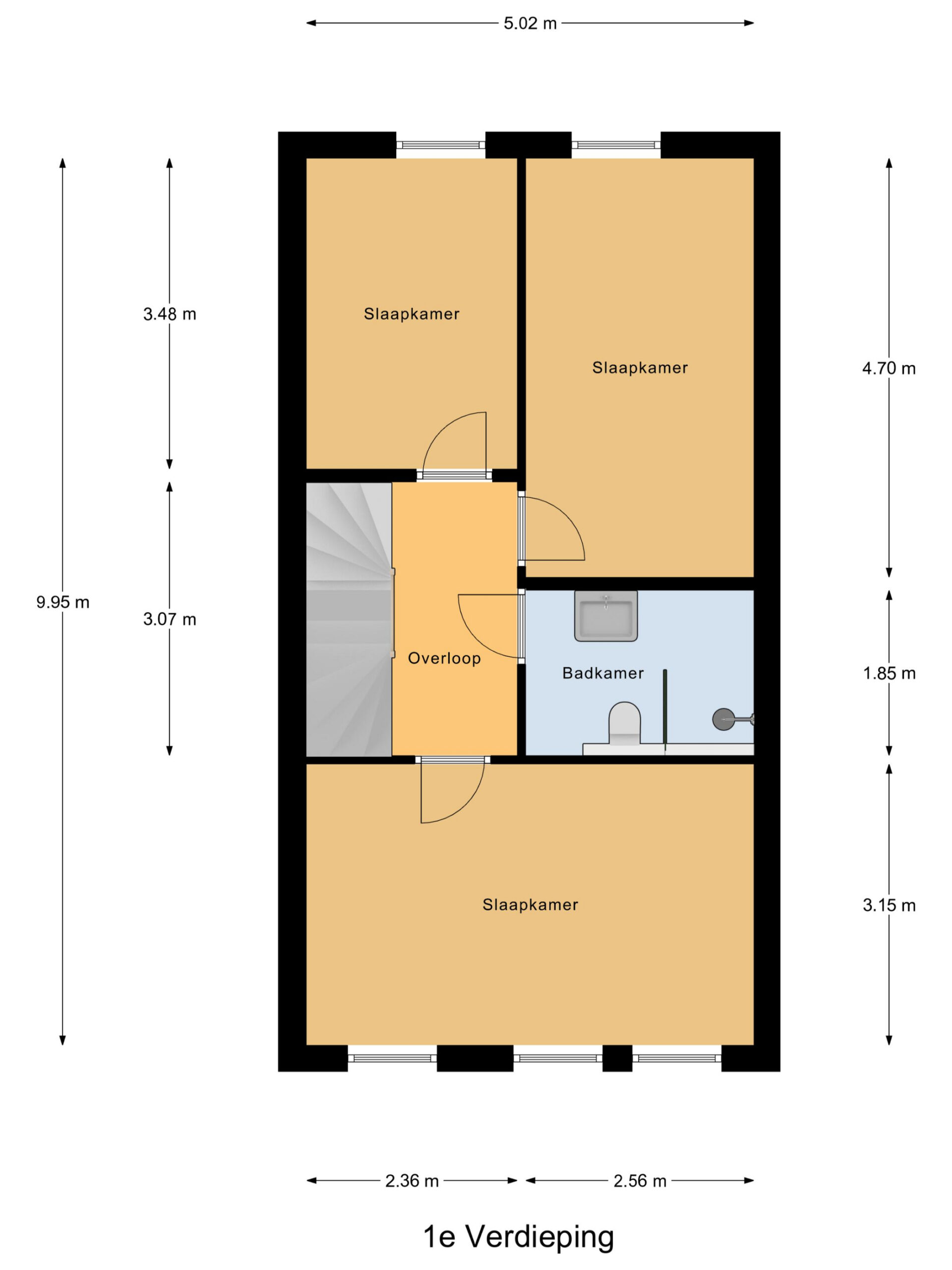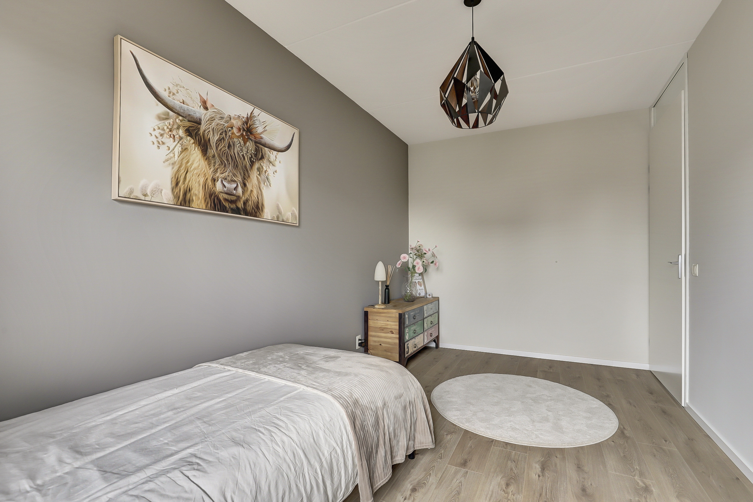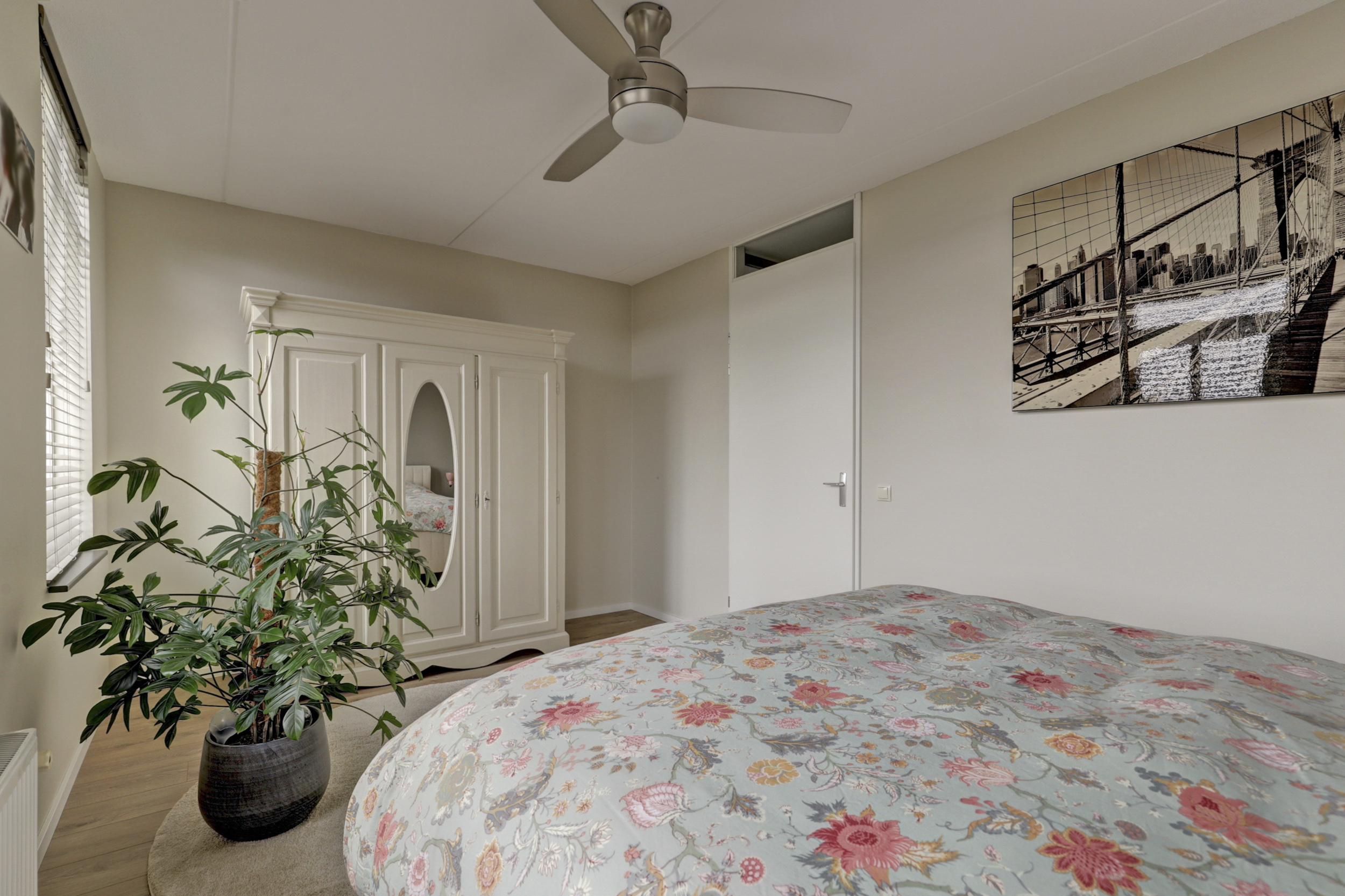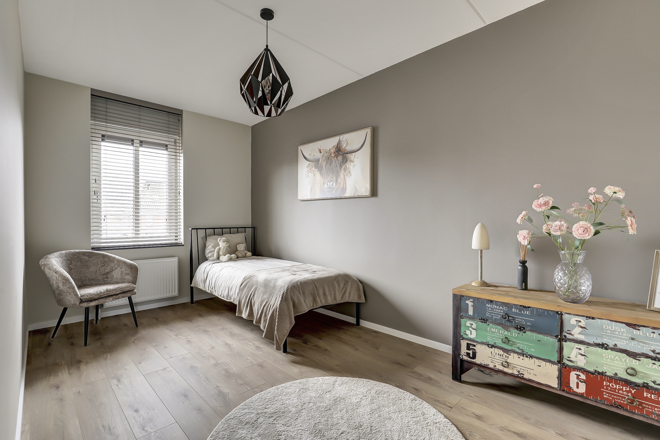 Op de eerste verdieping vind je drie slaapkamers, waarvan de hoofdslaapkamer uitkijkt over het water. De twee overige kamers liggen aan de tuinzijde. Alle kamers zijn voorzien van laminaatvloeren. De badkamer is fris en modern, met een ruime inloopdouche, wastafel en een vrij hangend toilet.
