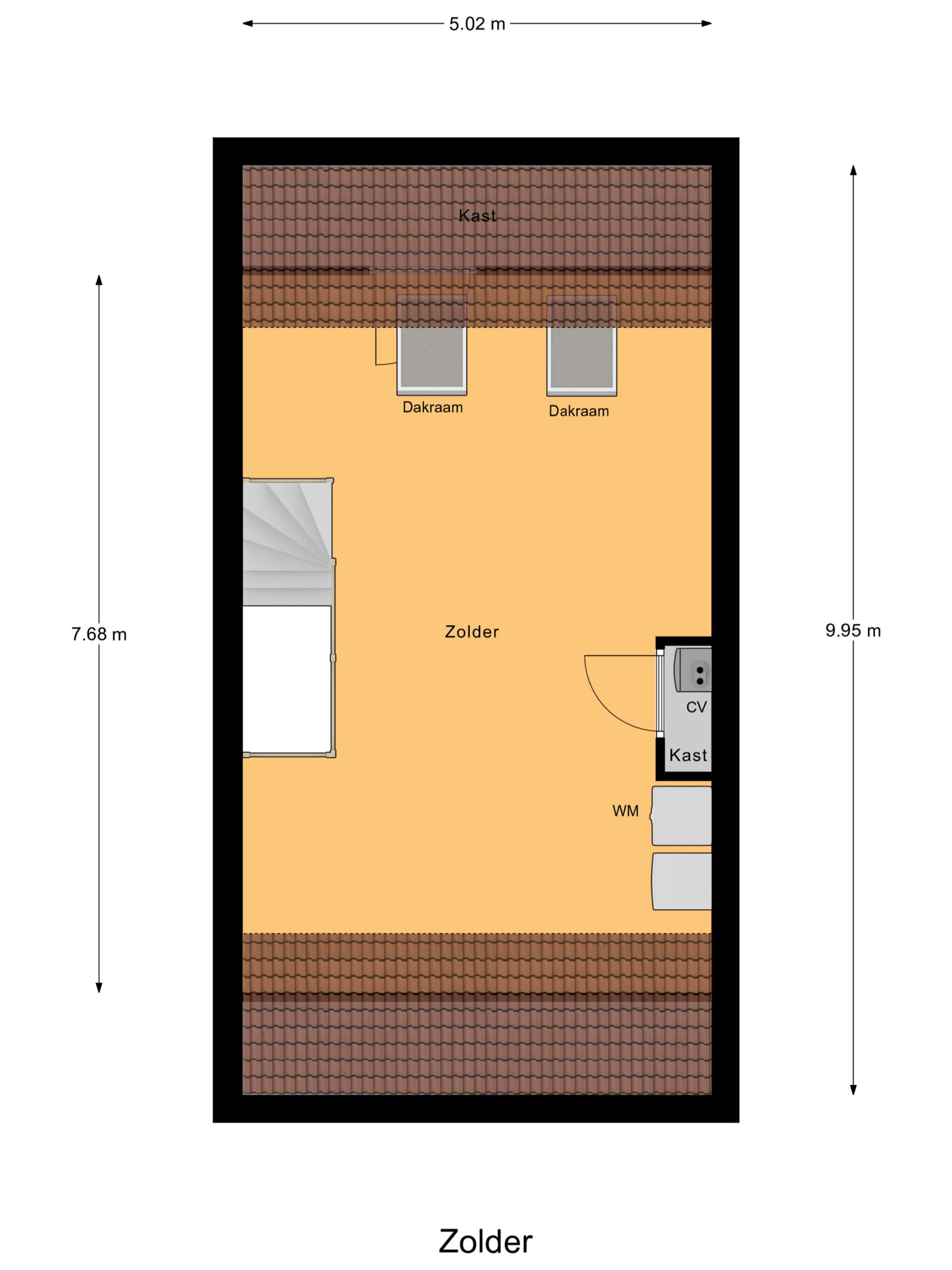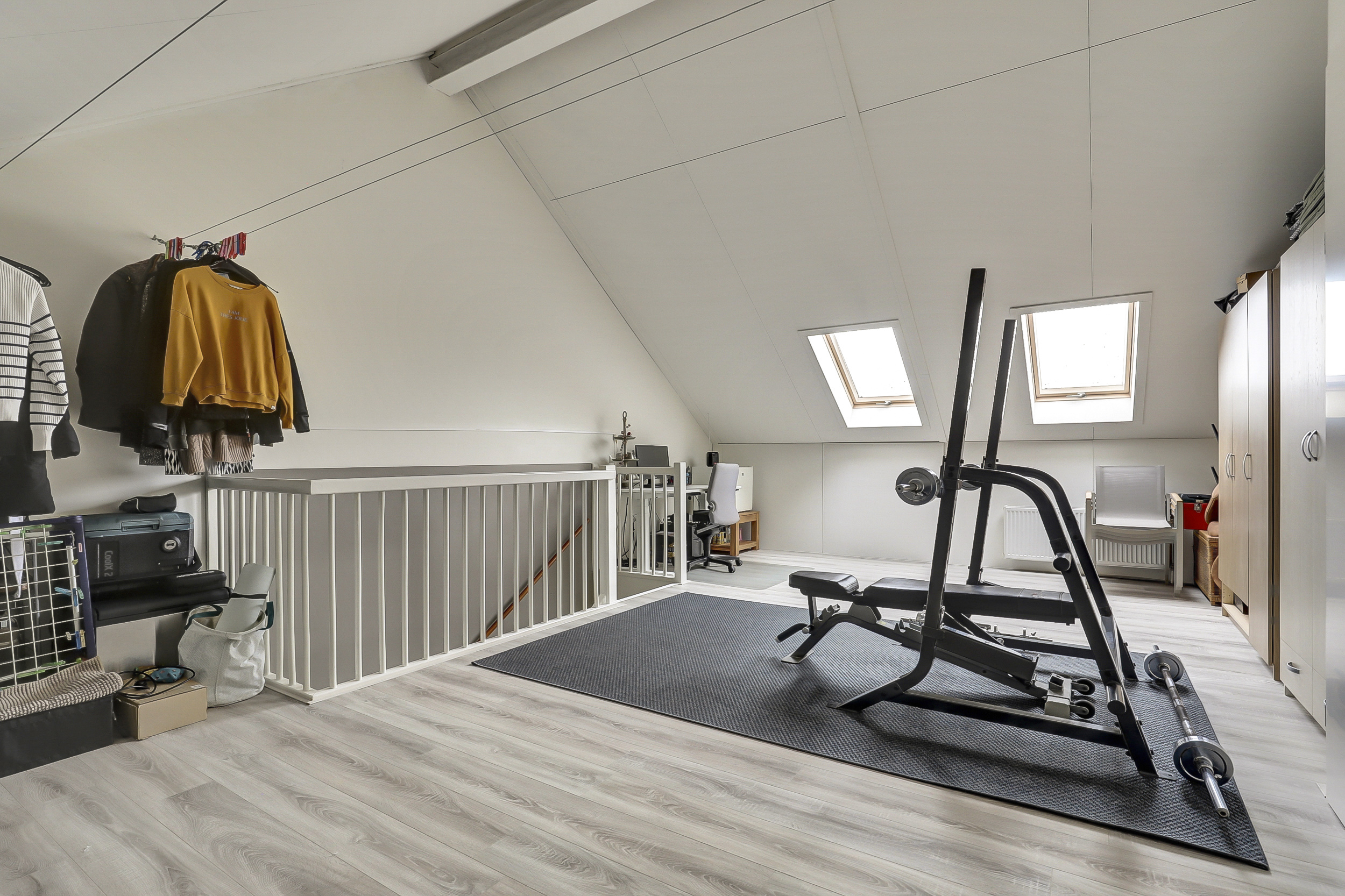 De tweede verdieping is een open zolderruimte met twee dakvensters, wit afgewerkte dakplaten en een nette laminaatvloer. Hier is eenvoudig een vierde of zelfs vijfde slaapkamer te realiseren – met eventueel een vliering voor extra bergruimte. De cv-ketel (Intergas HRE, 2024) is eigendom, en ook de witgoedaansluitingen bevinden zich hier.