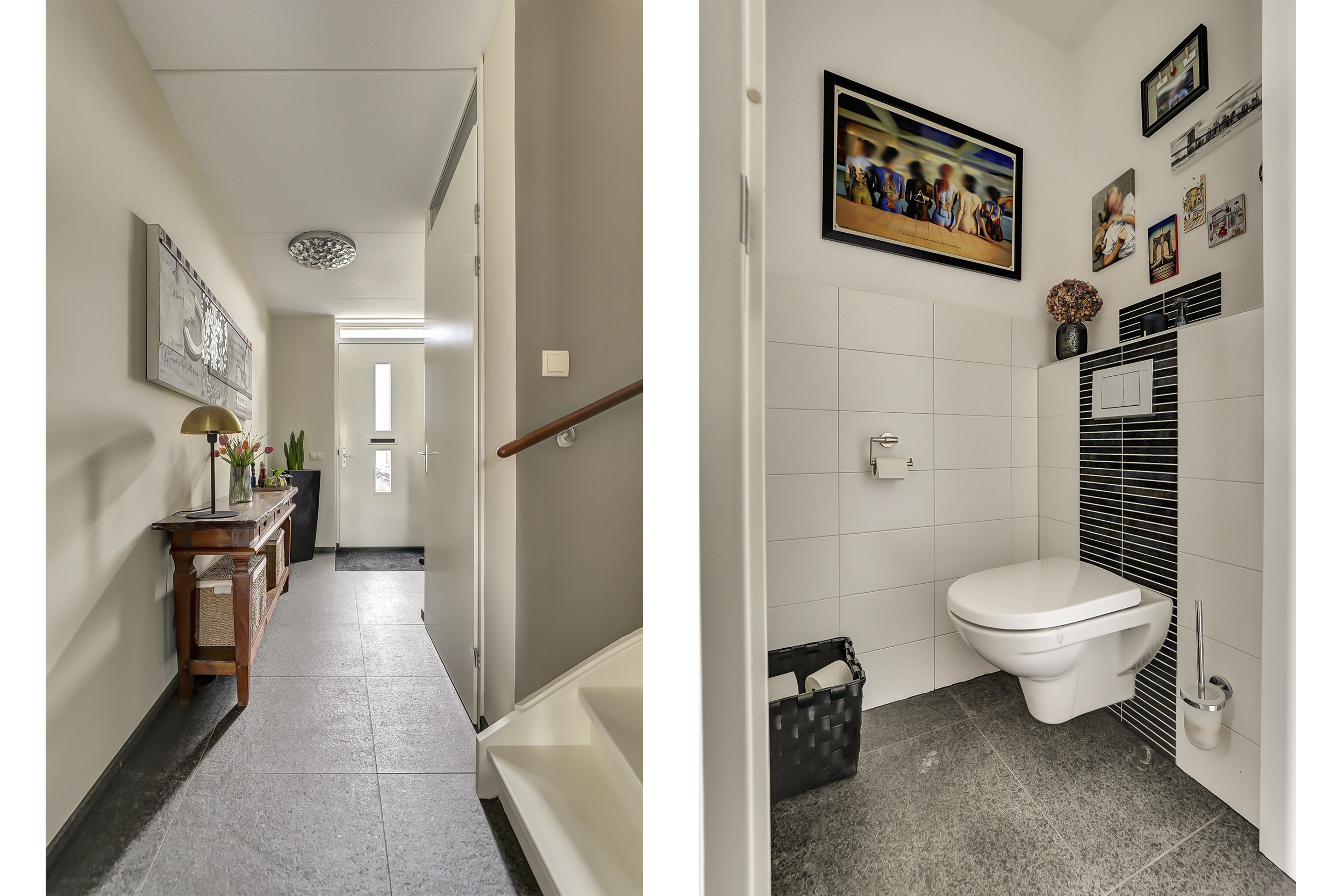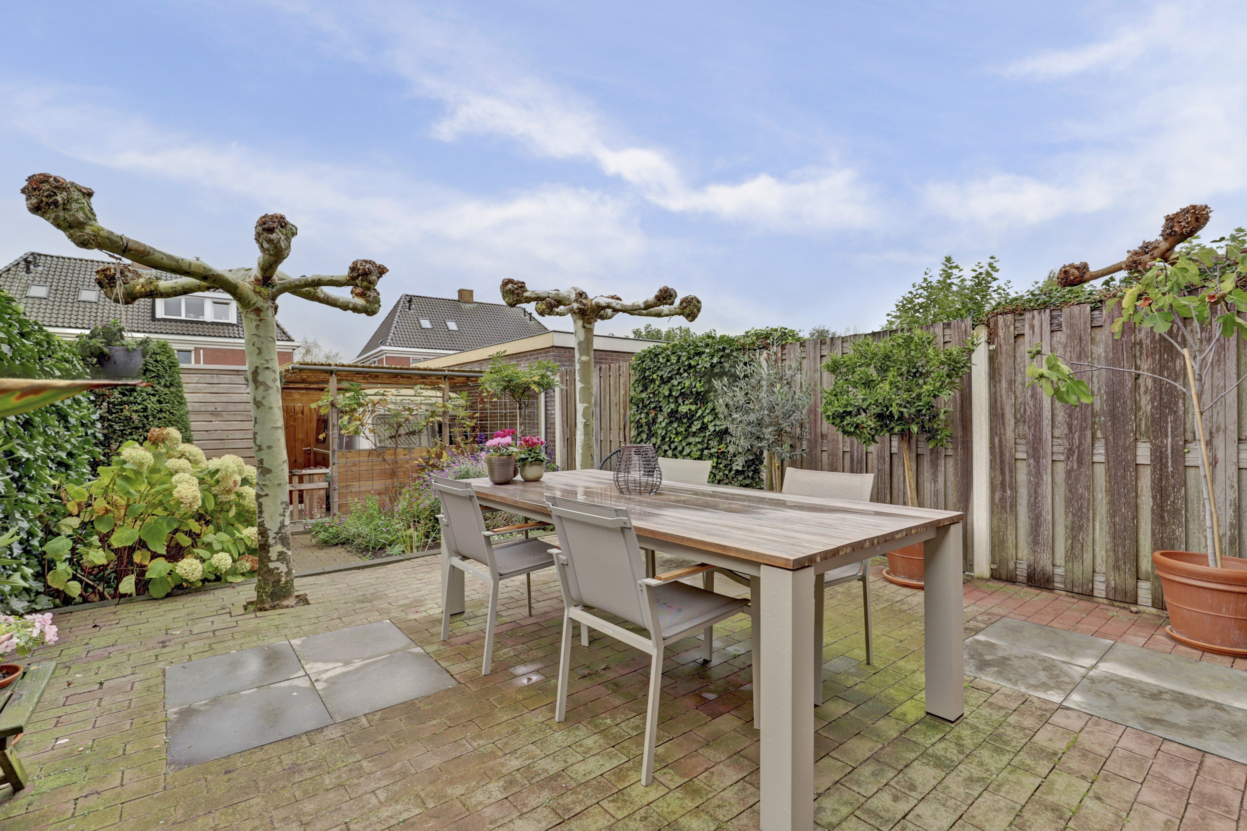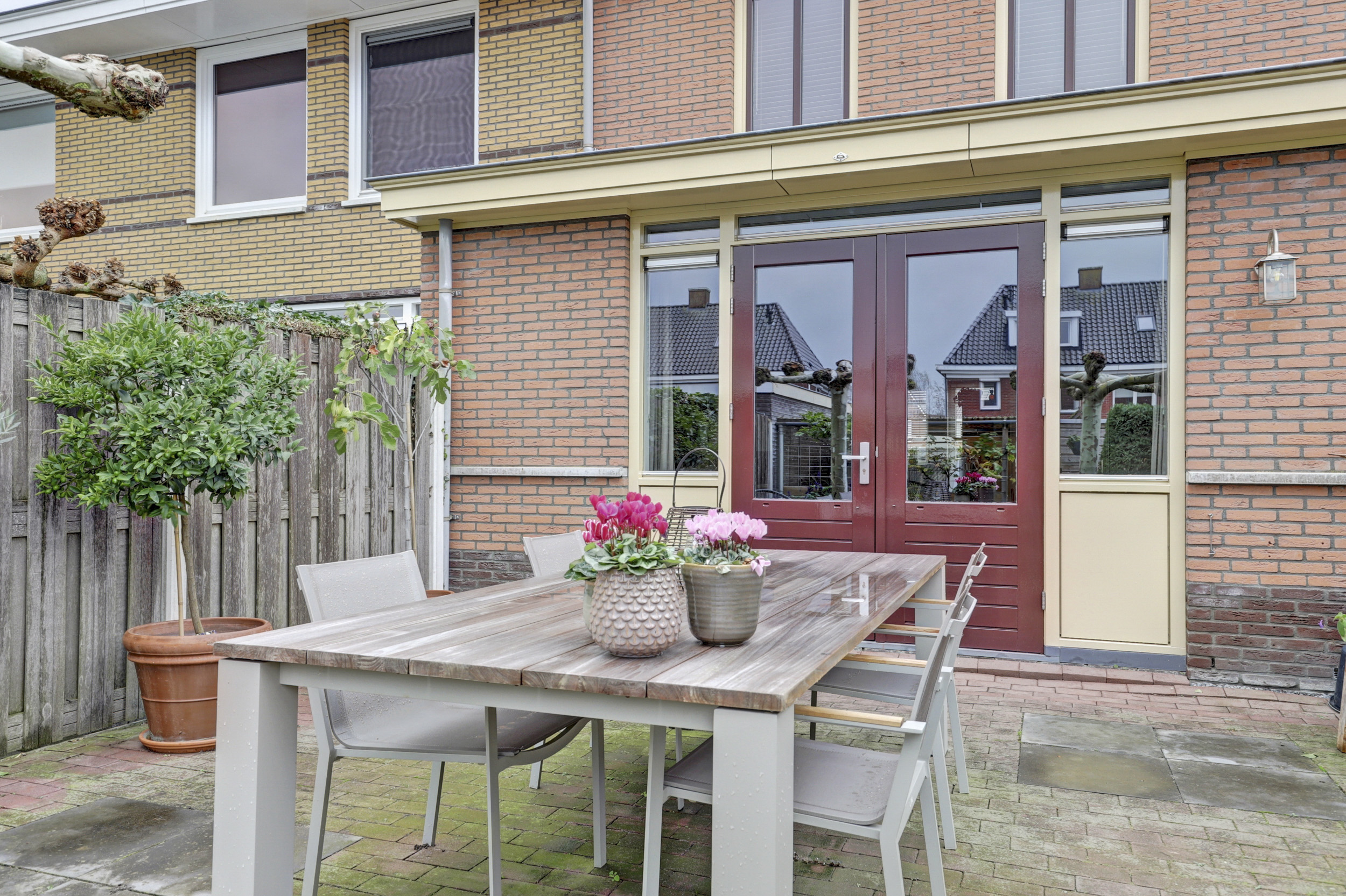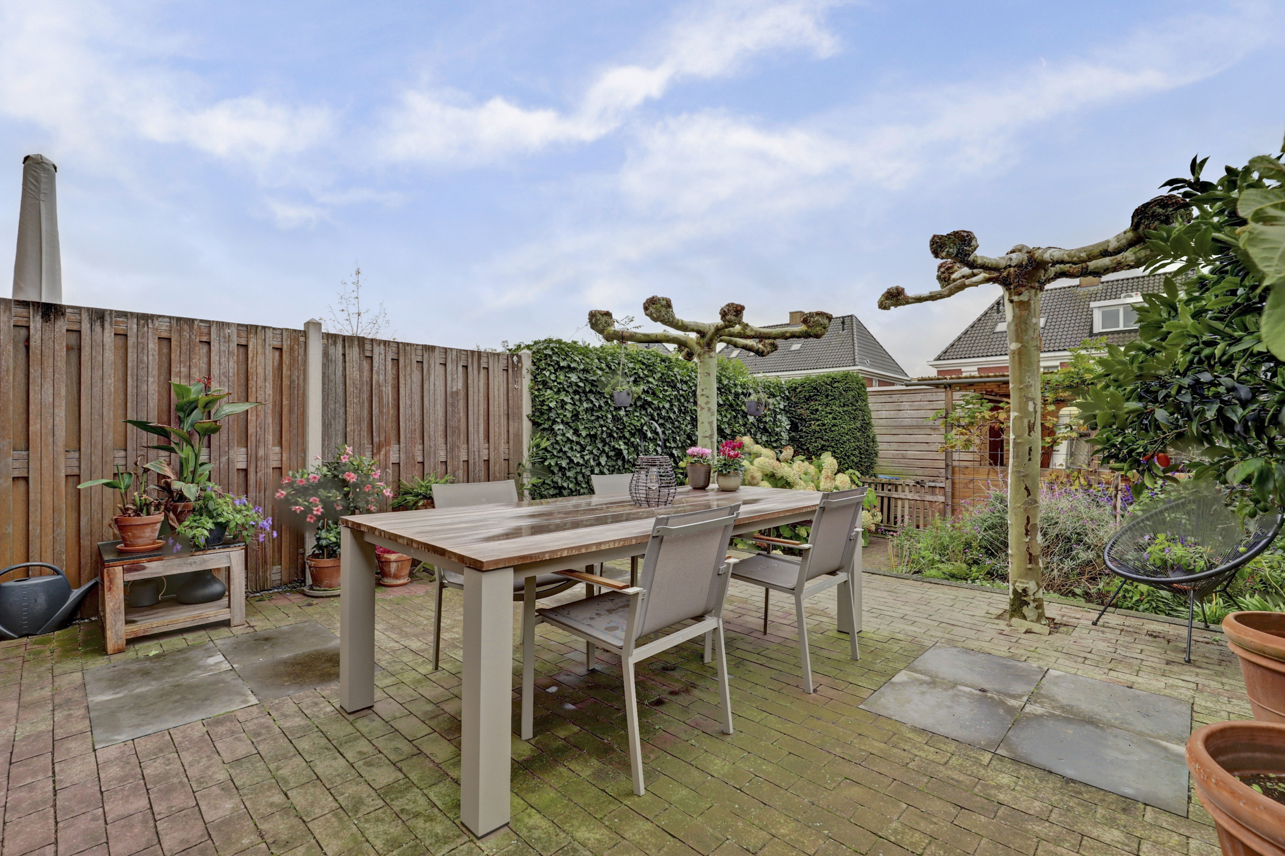 De achtertuin is verzorgd aangelegd met groot terras en bestrating, ideaal voor lange zomerdagen. Dankzij de ligging op het zuid/zuidwesten heb je hier volop middag- en avondzon. Achter in de tuin staat een berging, een carport en een poort naar de mandelige straat: een veilige, autoluwe speelruimte voor kinderen.
