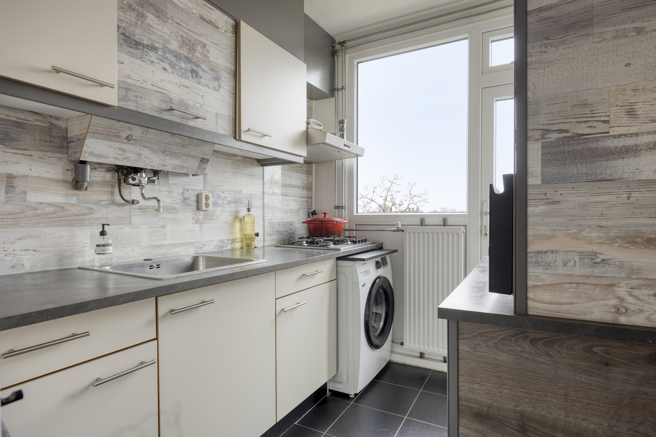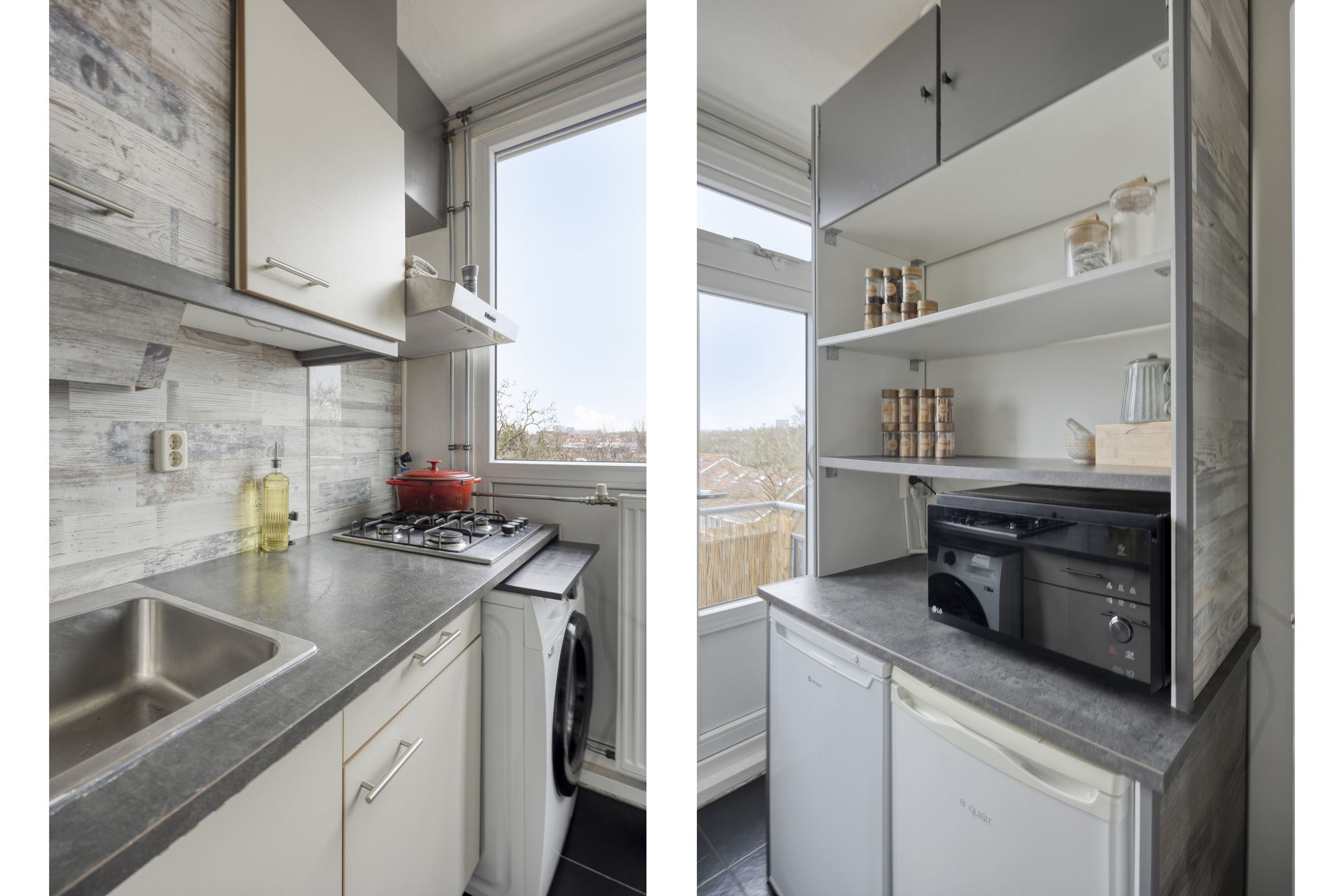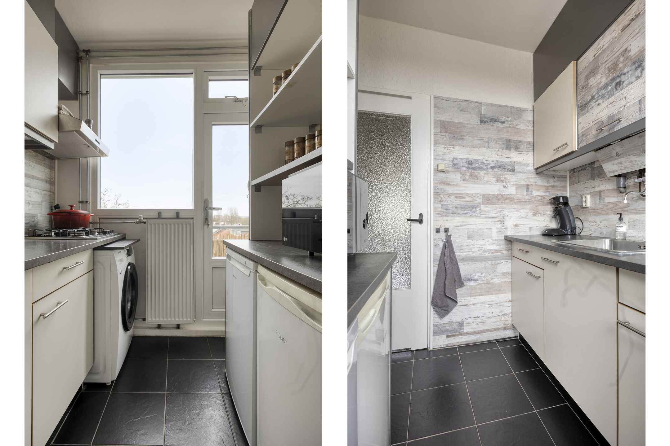 De keuken sluit praktisch aan en biedt wat je nodig hebt voor dagelijks comfort. Vanuit de keuken heb je toegang tot een balkon, een fijne plek voor je eerste koffie in de ochtend.