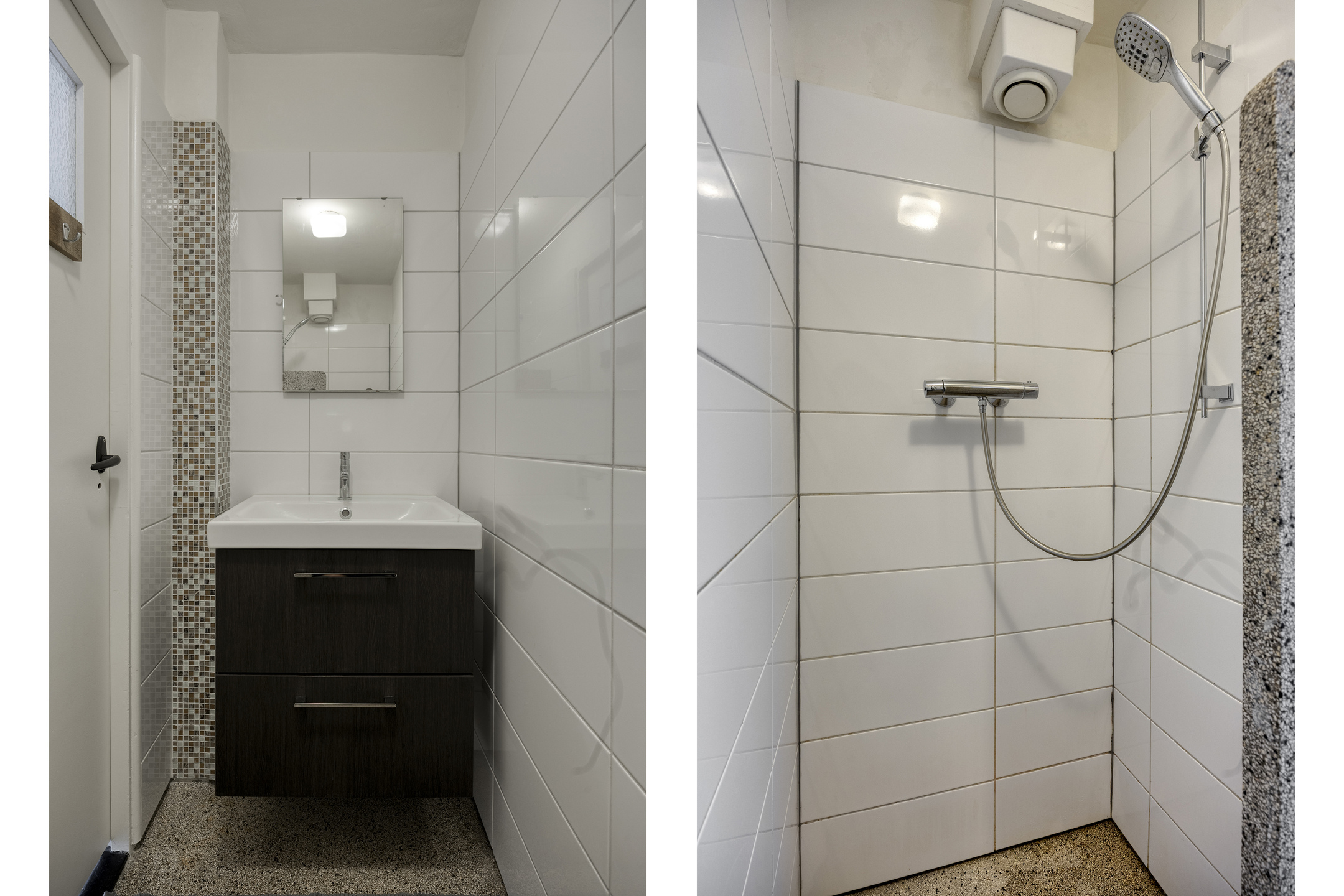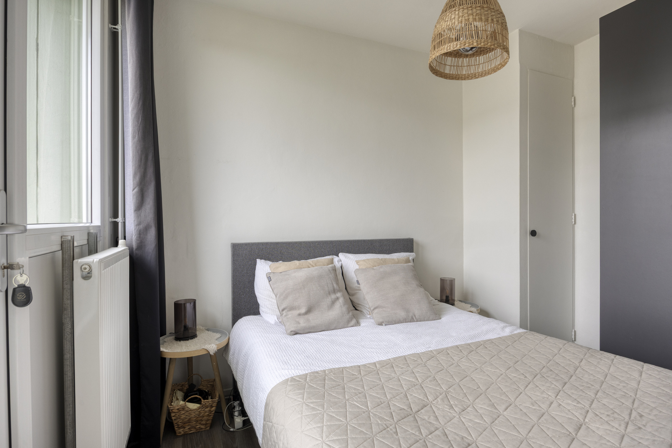 De badkamer, vernieuwd in 2021, heeft een frisse en moderne uitstraling. De woning wordt nu gebruikt met één volwaardige slaapkamer, deze geeft toegang tot een balkon, wat zorgt voor extra licht en een prettig buitengevoel.