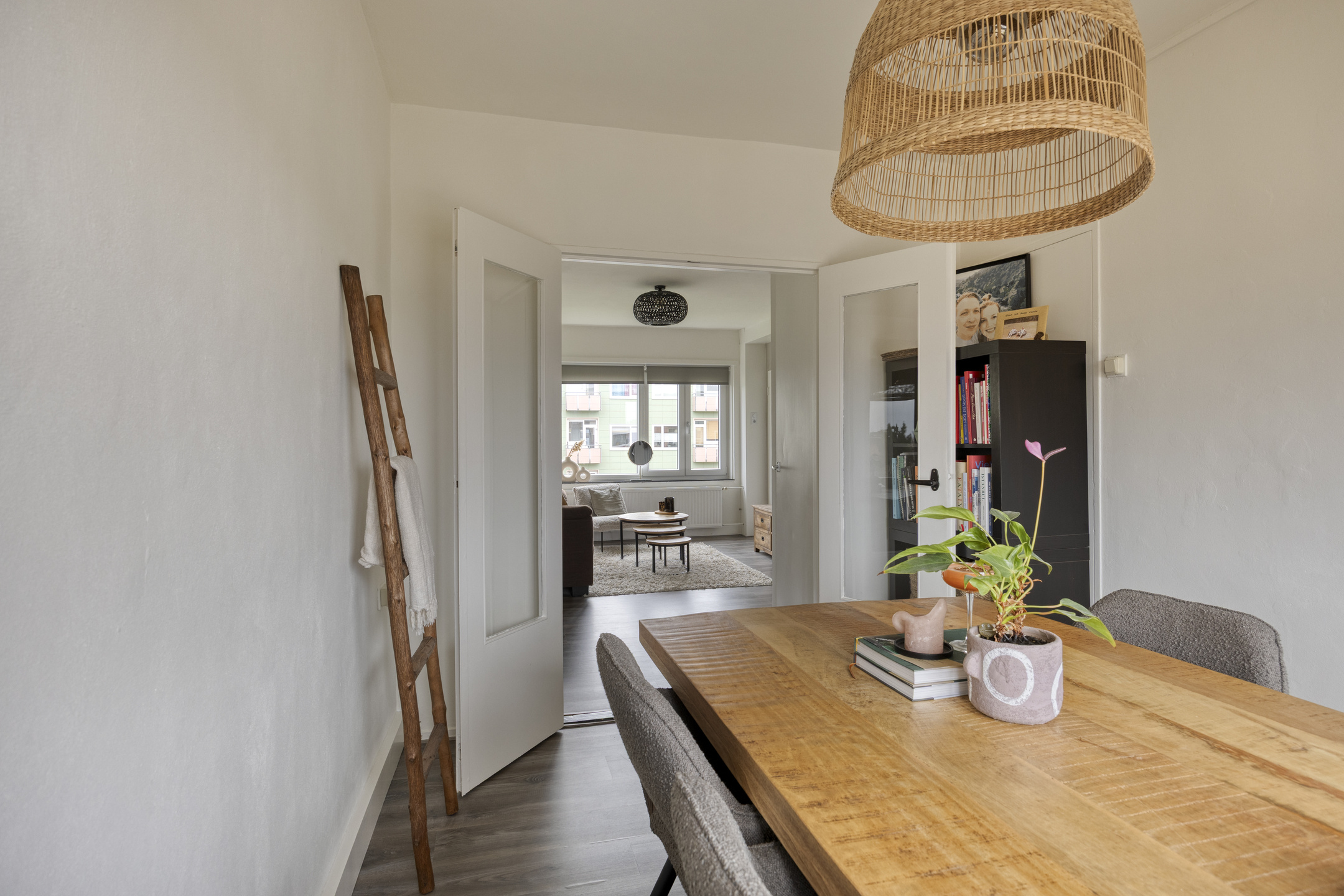 Dit 3 kamer appartement zet direct de juiste toon: licht, praktisch en verzorgd. Ideaal voor wie zijn eerste stap op de woningmarkt zet of samen een nieuwe fase wil starten. Het wordt nu gebruikt als 2 kamer, waarbij de 3e kamer nu een eetkamer is. In de onderbouw is de afsluitbare fietsenberging. De woning is in 2024 geheel voorzien van nieuwe kunststof kozijnen met HR ++ glas waardoor er een goede isolatie is en het energielabel is verandert in een goede B.