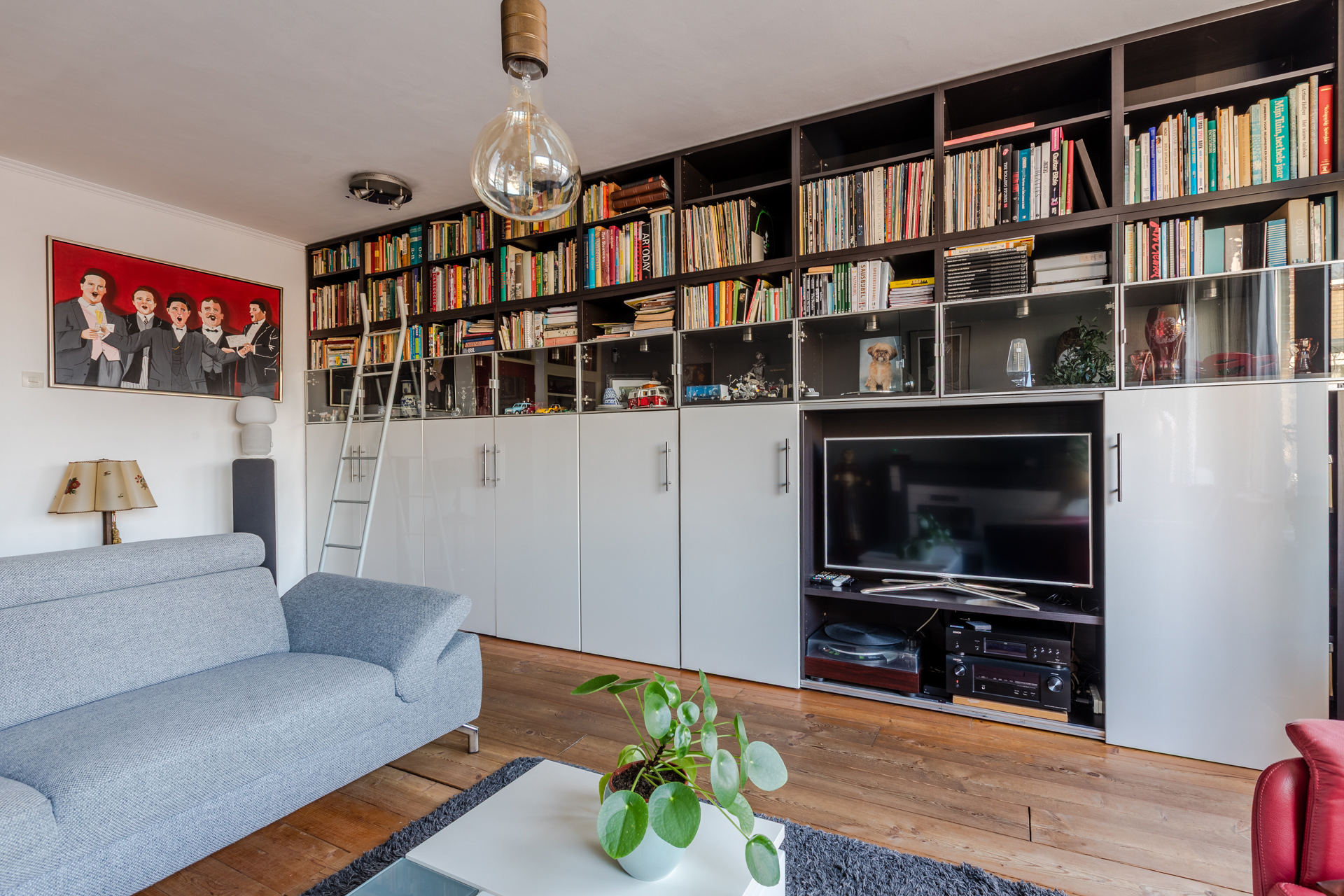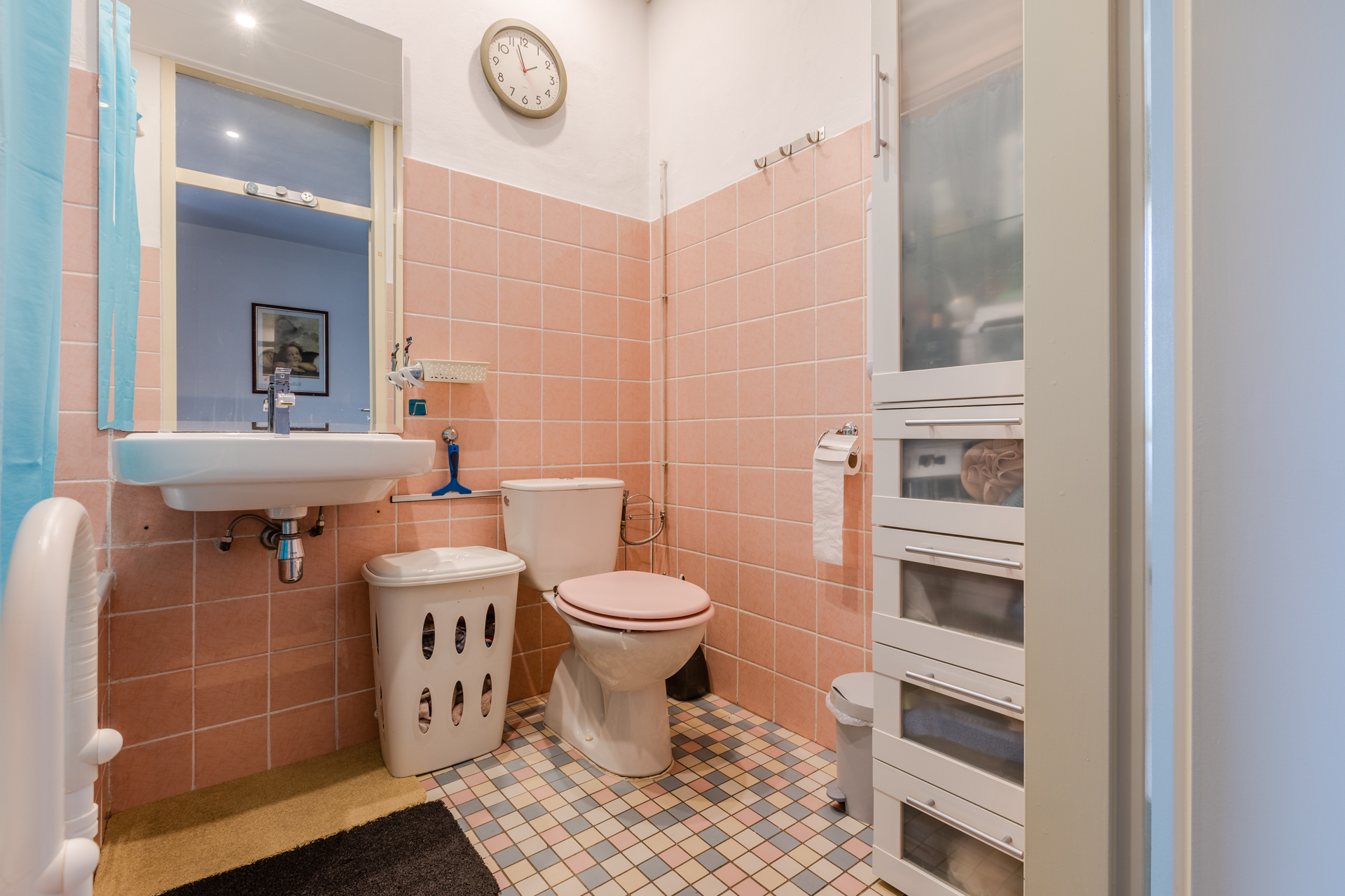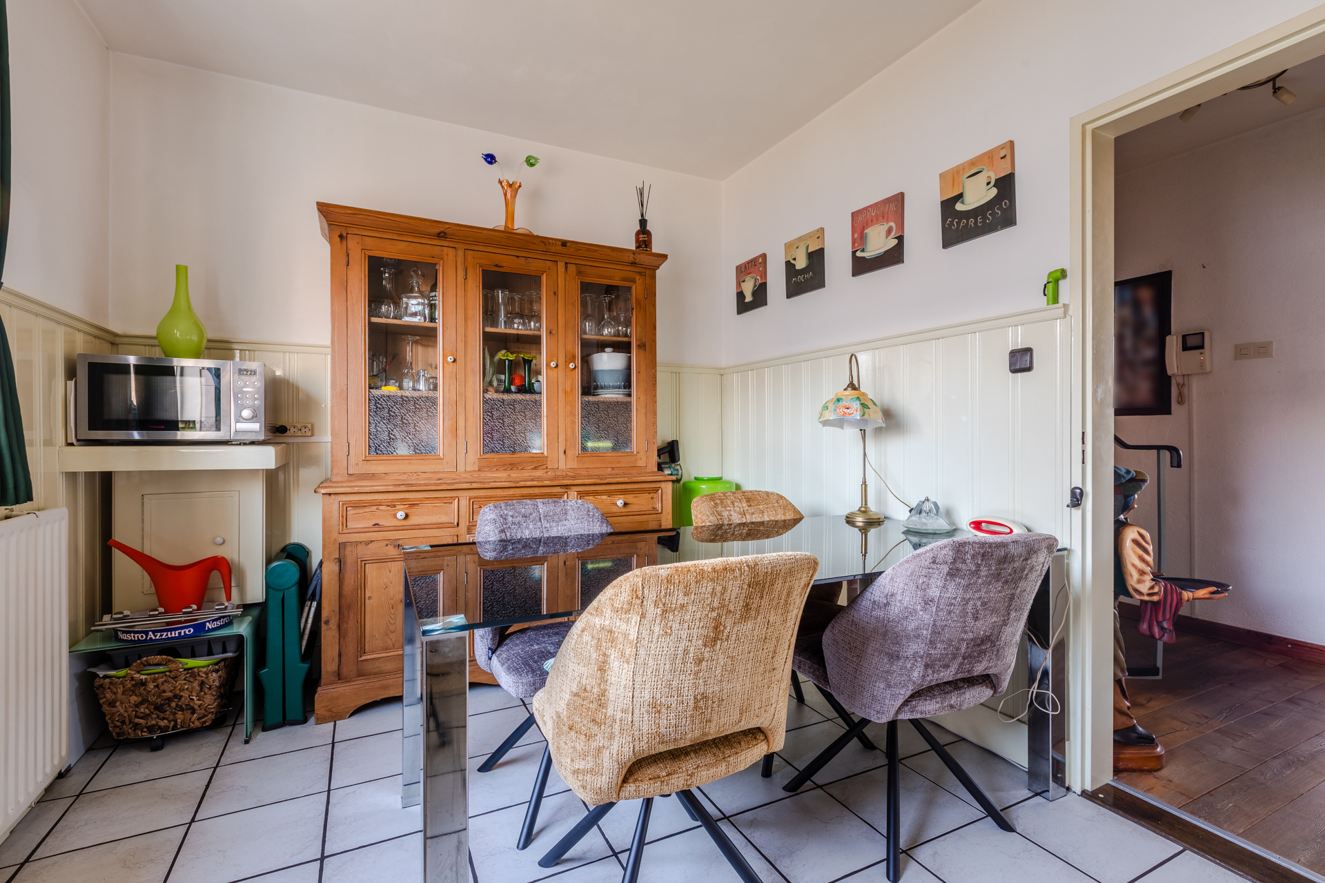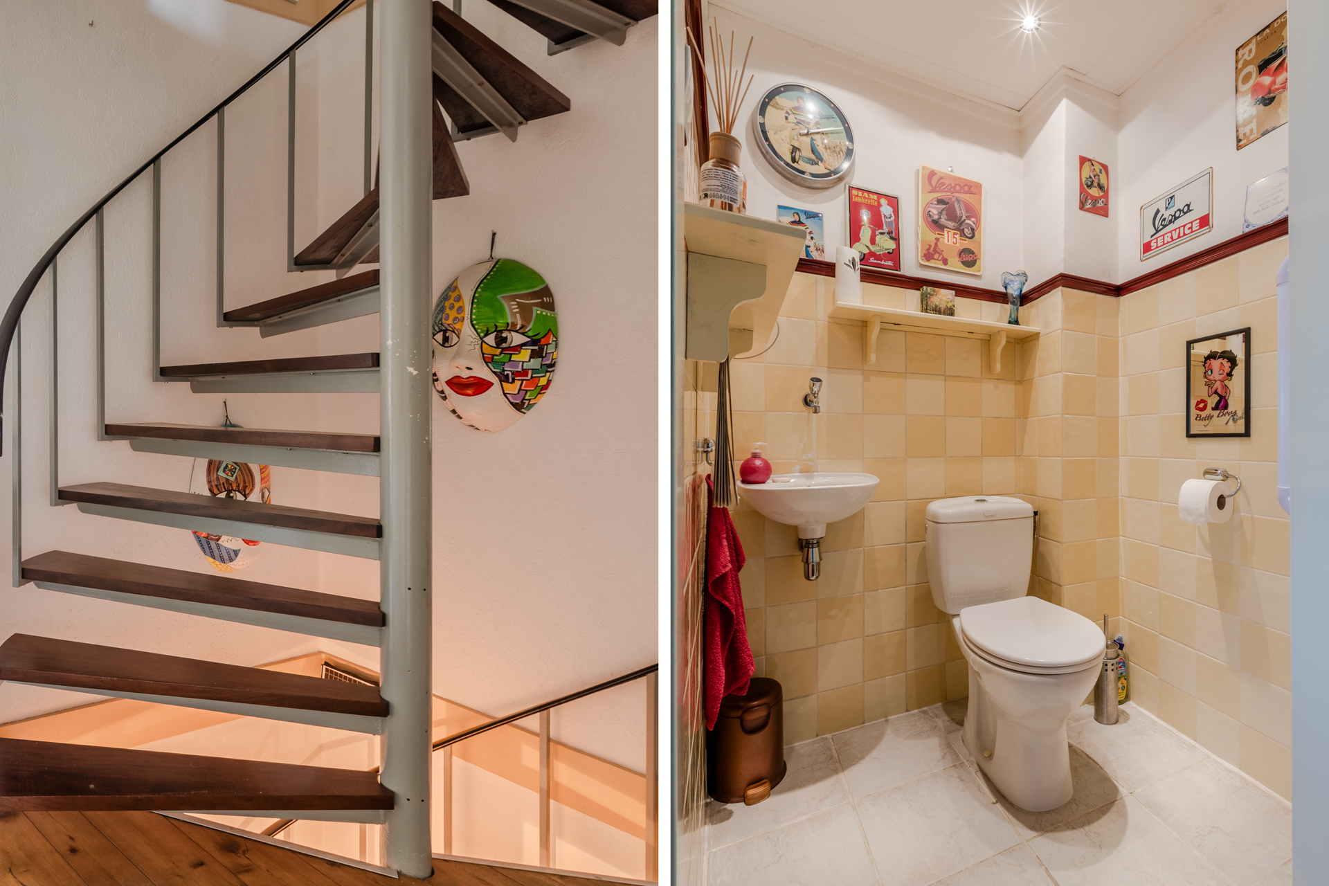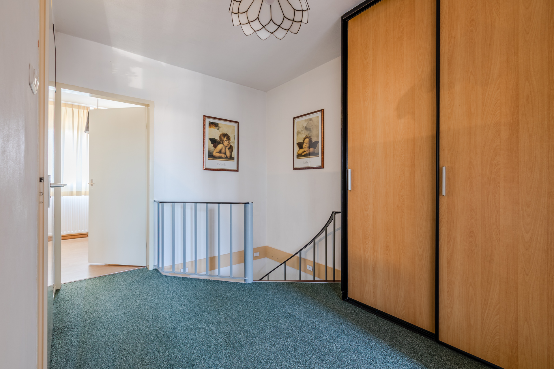 Op de overloop vind je een ruim toilet met fonteintje en heb je toegang tot de lichte woonkamer met een massief houten vloer, elektrische kachel en toegang tot het balkon, gelegen op het noordwesten. De dichte keuken is voorzien van verschillende apparatuur, waaronder een 4-pits gaskookplaat, afzuigkap, oven, vaatwasser en een koel-/vriescombinatie. De keuken is afgewerkt met een tegelvloer.