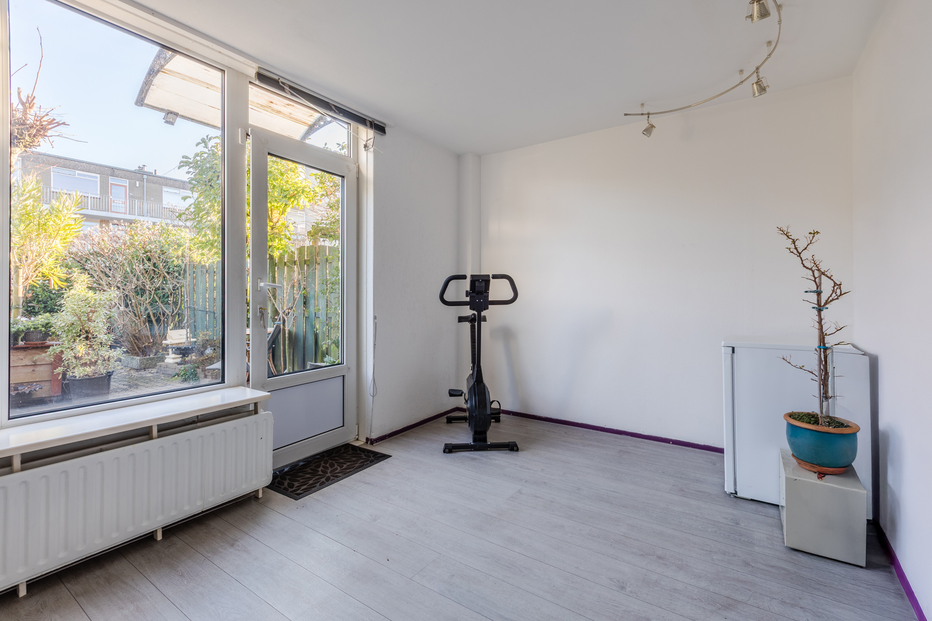 De achtertuin ligt op het zuidoosten en aan de zijkant van de woning bevindt zich een houten schuurtje met achterom. Je hebt eigen parkeergelegenheid op de oprit aan de voorzijde van de woning.