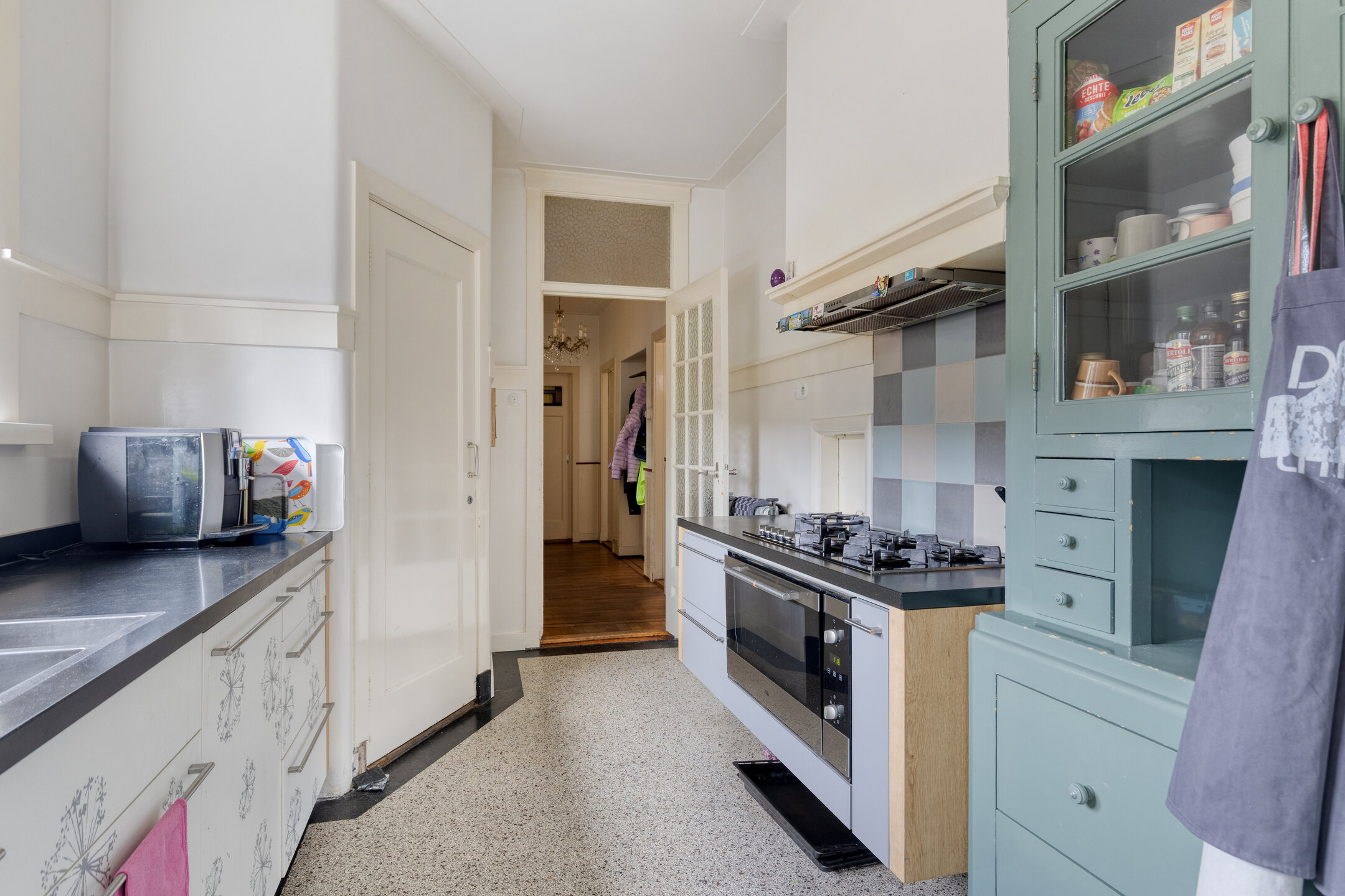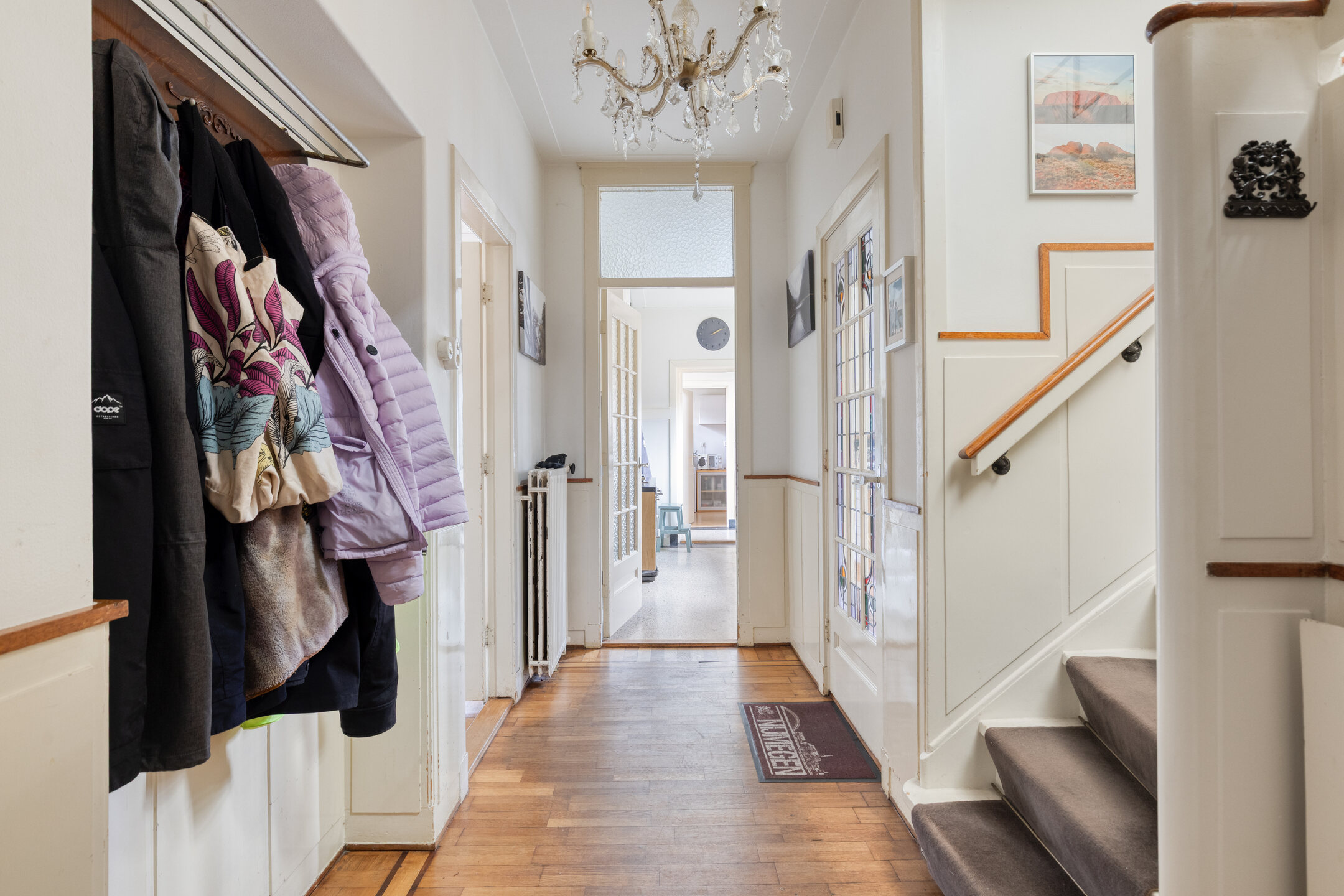 De woning ademt de charme van de jaren ’30, met volop authentieke details die het karakter versterken. De uitgebouwde woonkamer en suite vormt het hart van het huis en opent zich naar de achtertuin. Hier creëer je moeiteloos verschillende leefzones: een zitkamer, eetkamer en plek om samen te komen.