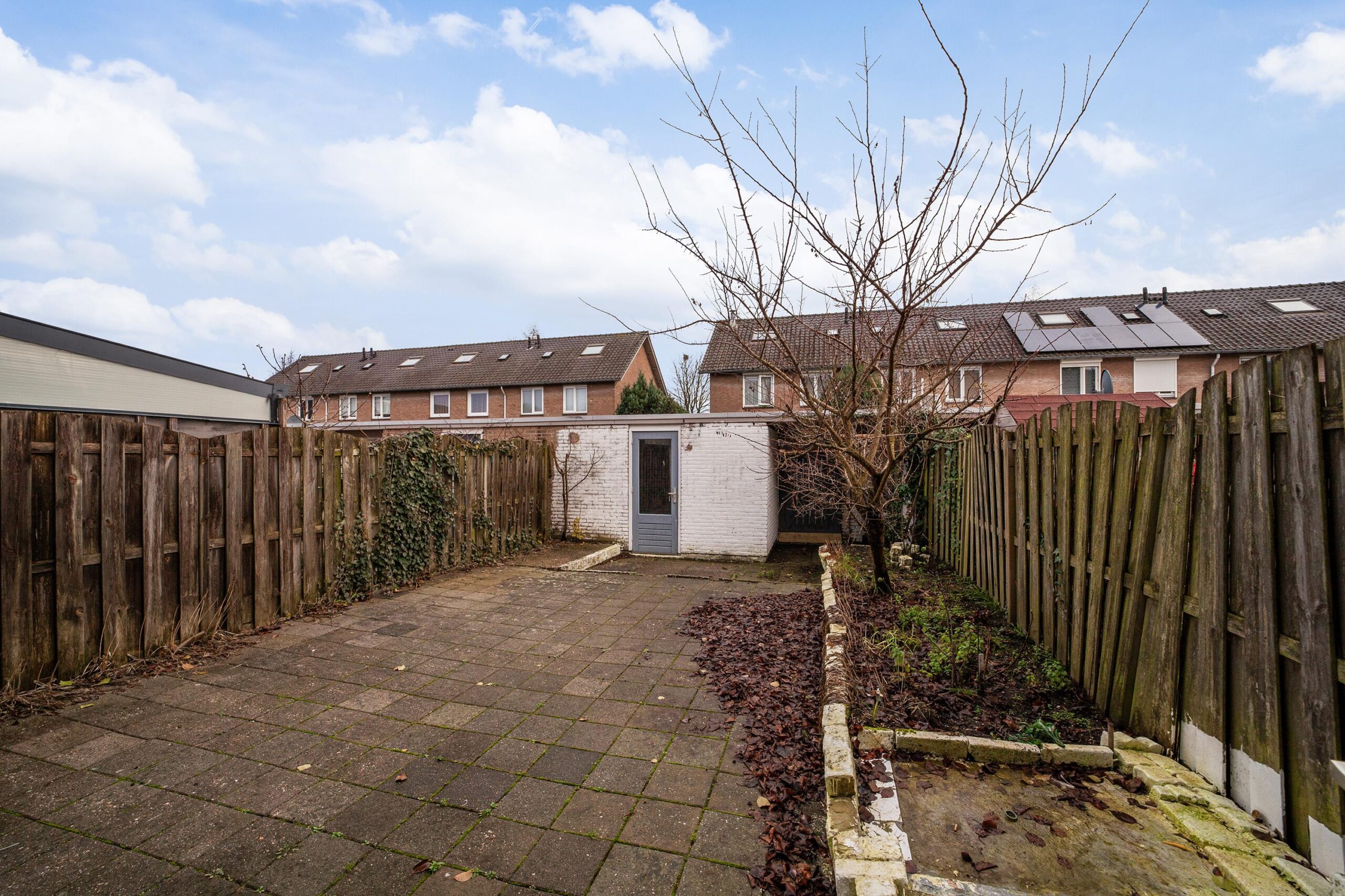 – Tussenwoning met fijne achtertuin, achterom en berging.