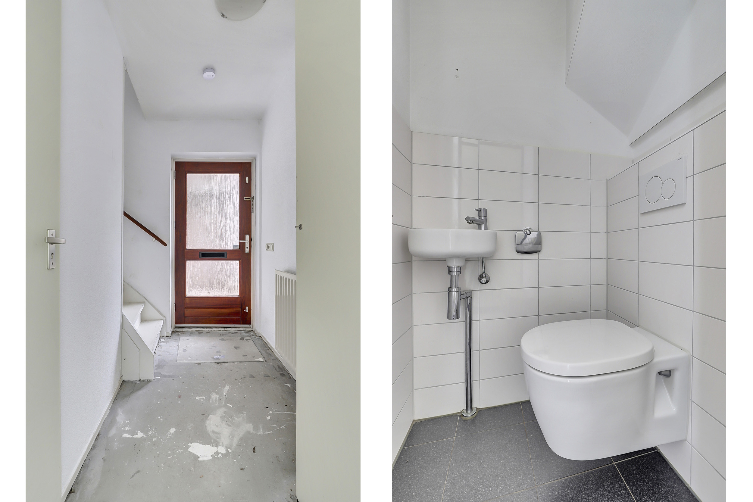 Parkeer je auto op eigen terrein en stap binnen in de hal, waar je toegang hebt tot de woonkamer, het toilet en de trap naar boven. De woonkamer voelt heerlijk ruim en licht door de grote ramen en schuifpui naar de tuin. De open (basis) keuken biedt genoeg ruimte voor al jouw kookavonturen en heeft toegang tot de ruime tuin.