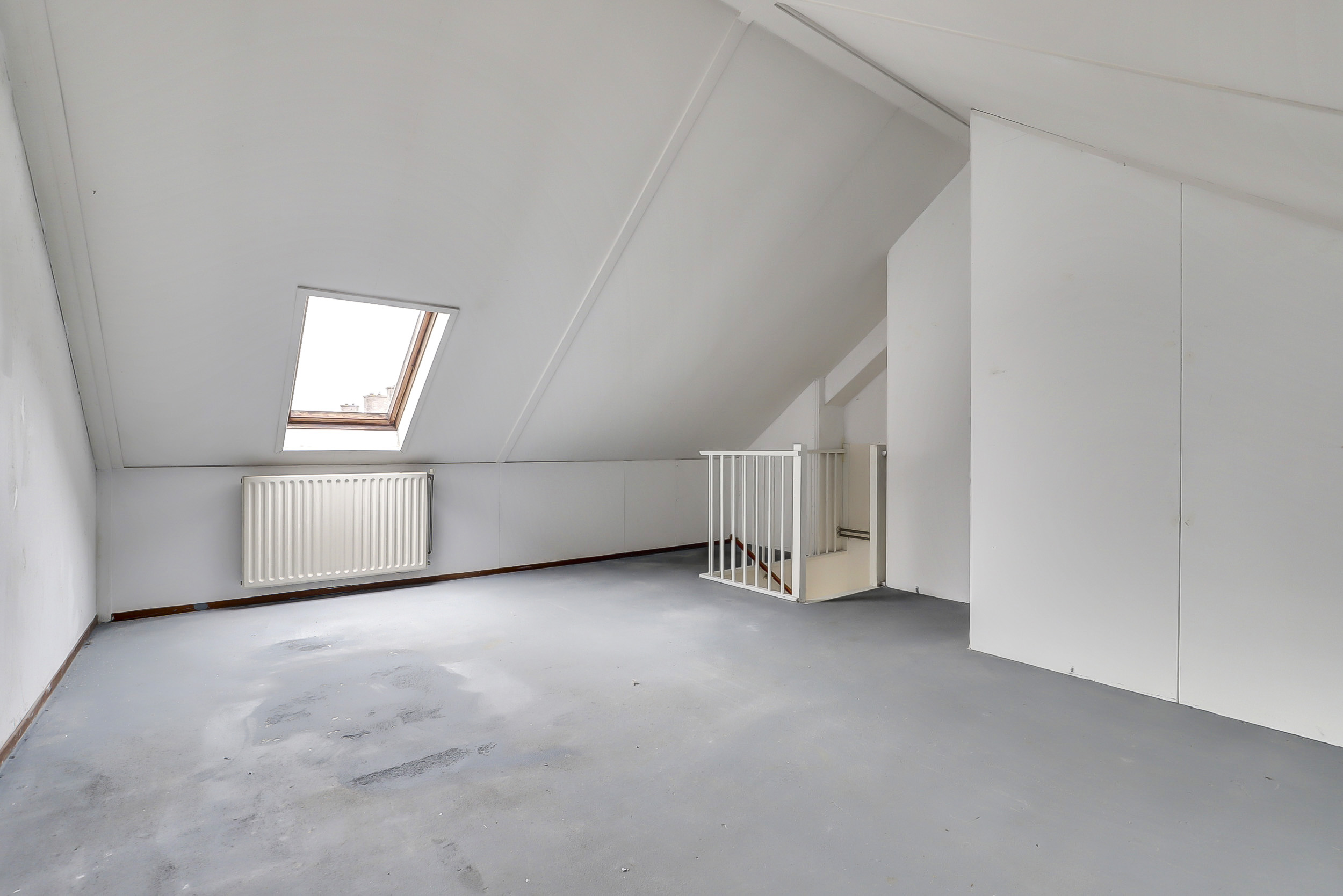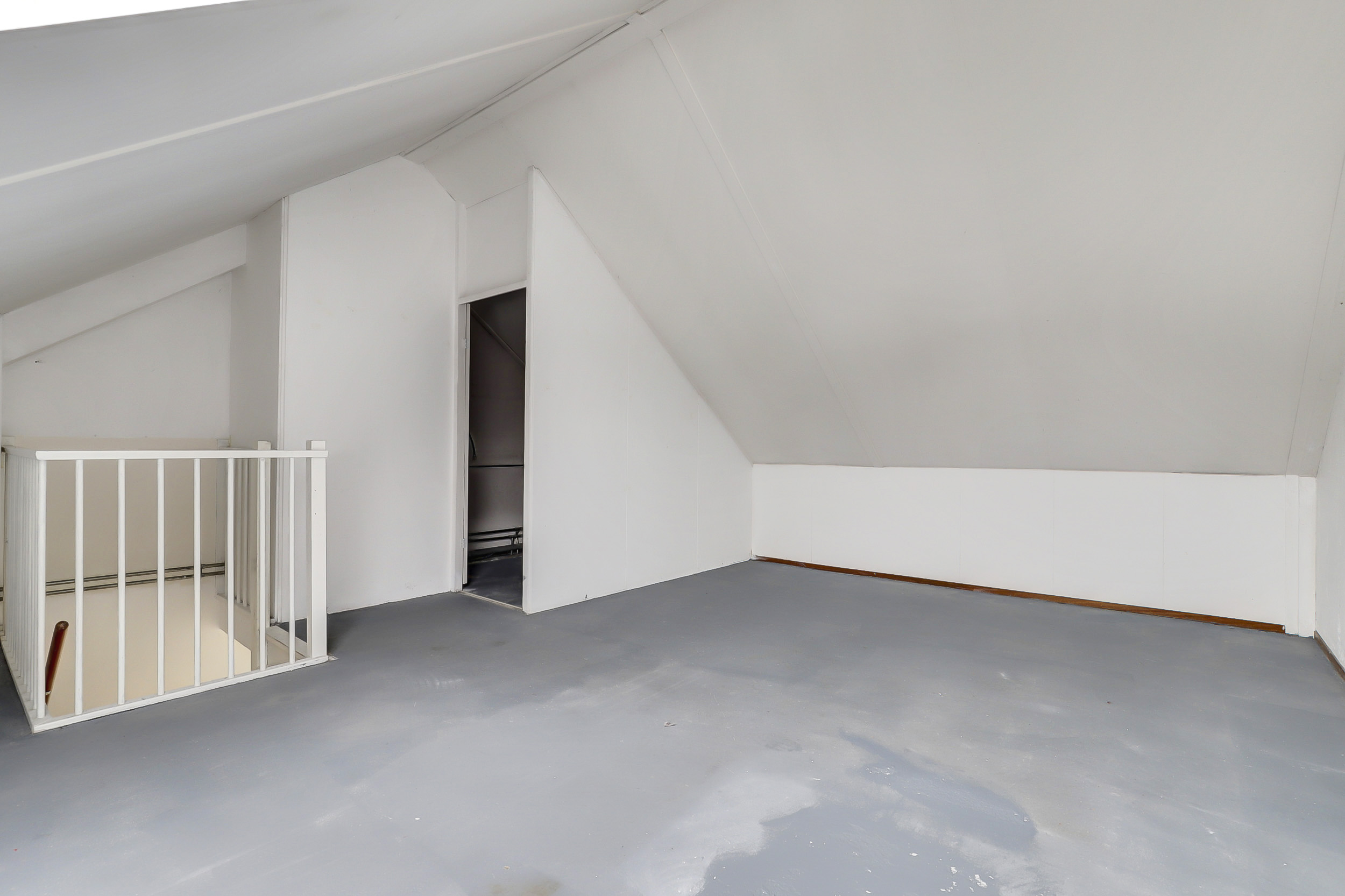 Een vaste trap leidt naar de tweede verdieping waar met gemak 2 slaapkamers te realiseren zijn al dan niet met een dakkapel. Nu is er een dakraam aanwezig voor natuurlijk licht. Op deze verdieping bevinden zich tevens de cv-ketel (Intergas HRE, eigendom) en wasmachineaansluiting.
