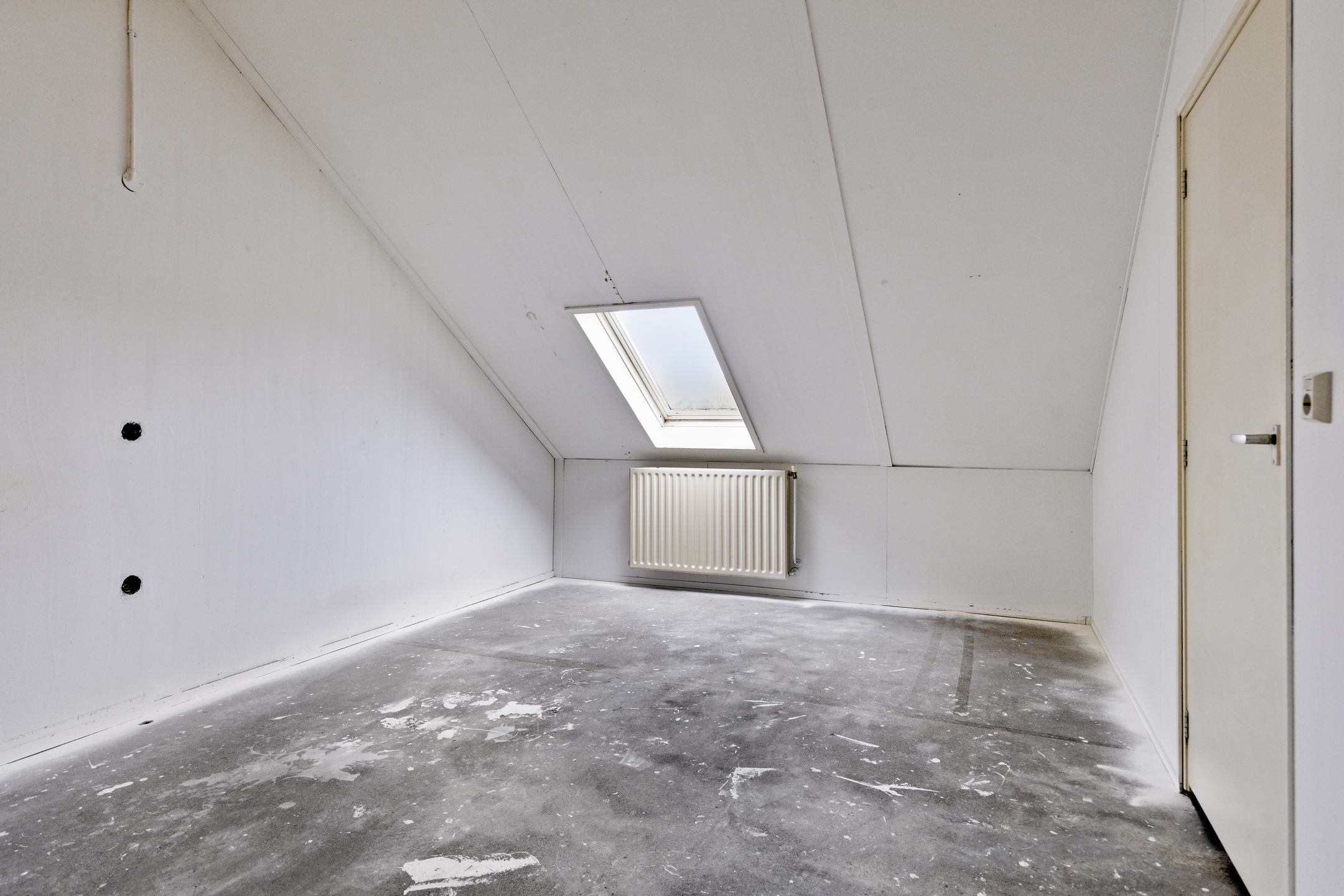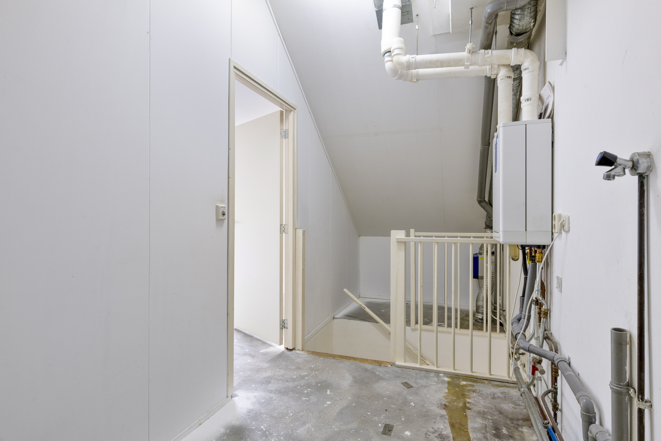 Een vaste trap leidt naar de tweede verdieping waar met gemak 2 slaapkamers te realiseren zijn al dan niet met een dakkapel. Nu is er een dakraam aanwezig voor natuurlijk licht. Op deze verdieping bevinden zich tevens de cv-ketel en wasmachineaansluiting.