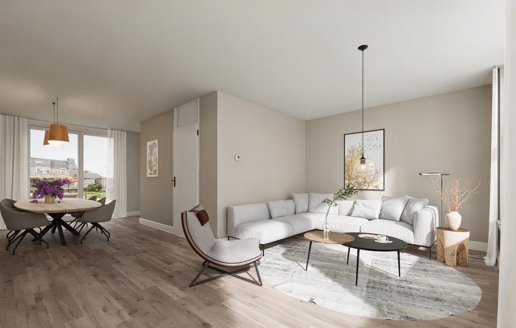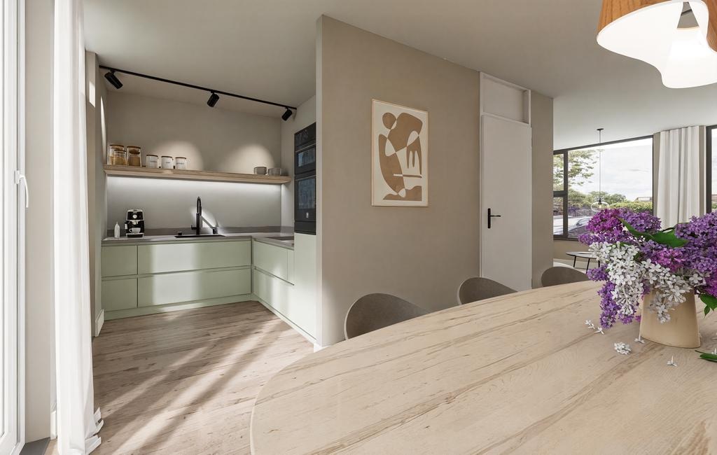 Voor een totaalbeeld hebben we 2 artist-impressions toegevoegd van hoe de keuken en woonkamer eruit zouden kunnen zien als je de woning gaat inrichten.Â