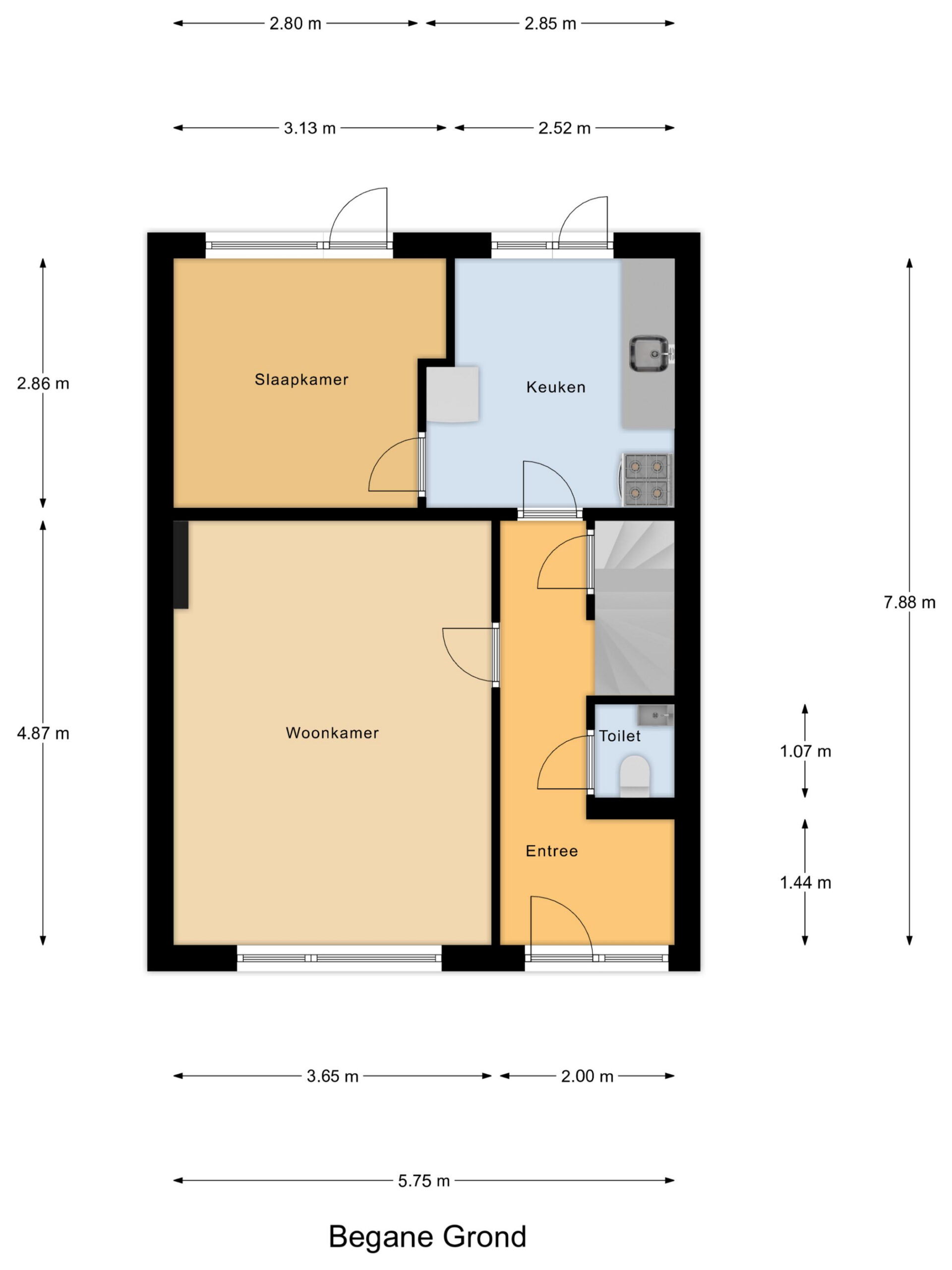 De doorzonwoonkamer vraagt om jouw visie: breek de muur open en creëer één grote leefruimte waar licht en lucht vrij spel krijgen. De keuken zelf biedt toegang tot de zonnige achtertuin, met ligging op het oosten/zuiden, een achterom én een vrijstaande berging met elektra.