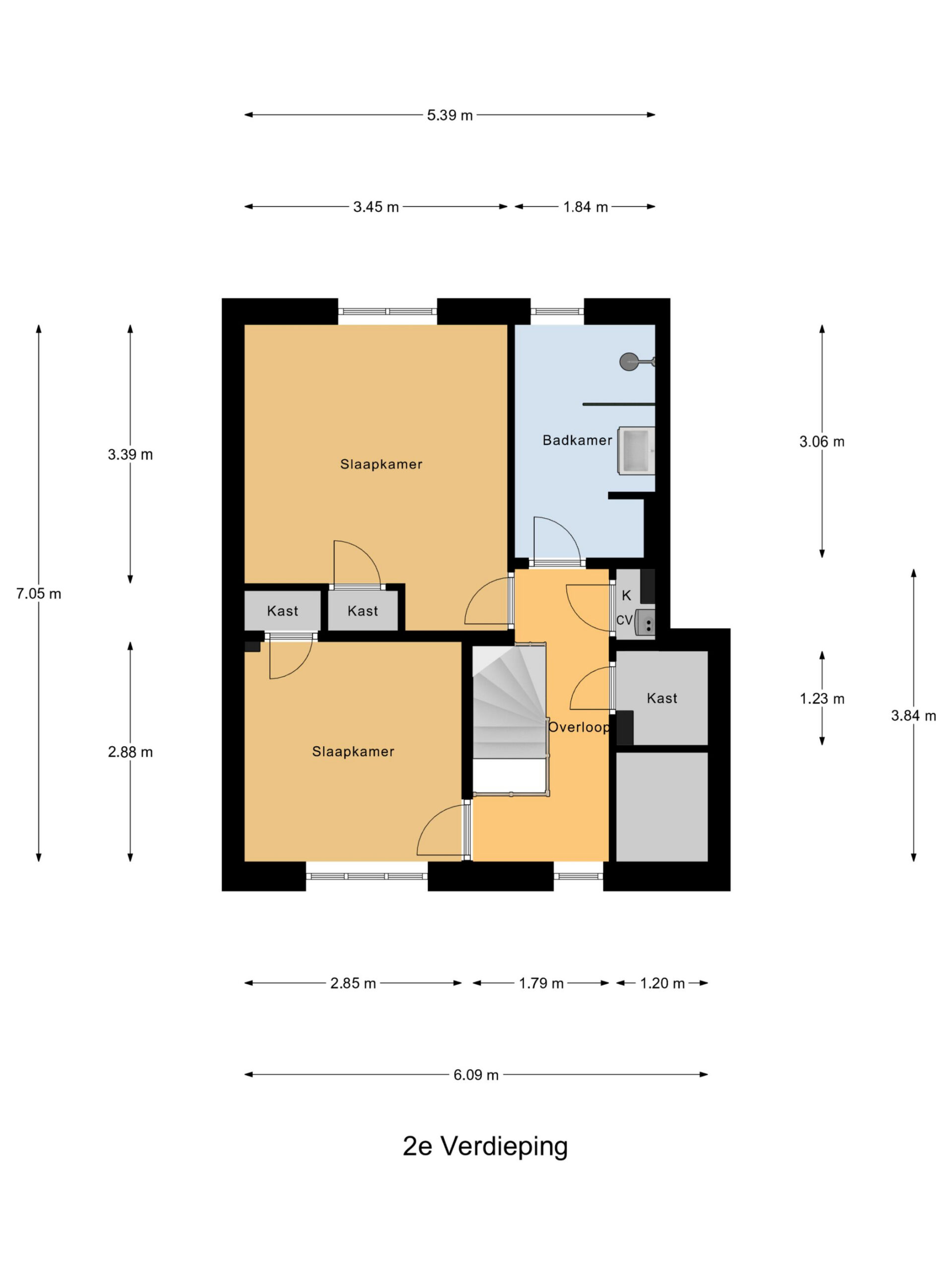 Op de tweede verdieping vind je twee royale slaapkamers, beide voorzien van inbouwkasten die je woonruimte optimaal benutten. De cv-installatie en de badkamer (2011) liggen eveneens op deze verdieping. De badkamer biedt een inloopdouche en een wastafel met wasmeubel: functioneel en tijdloos.