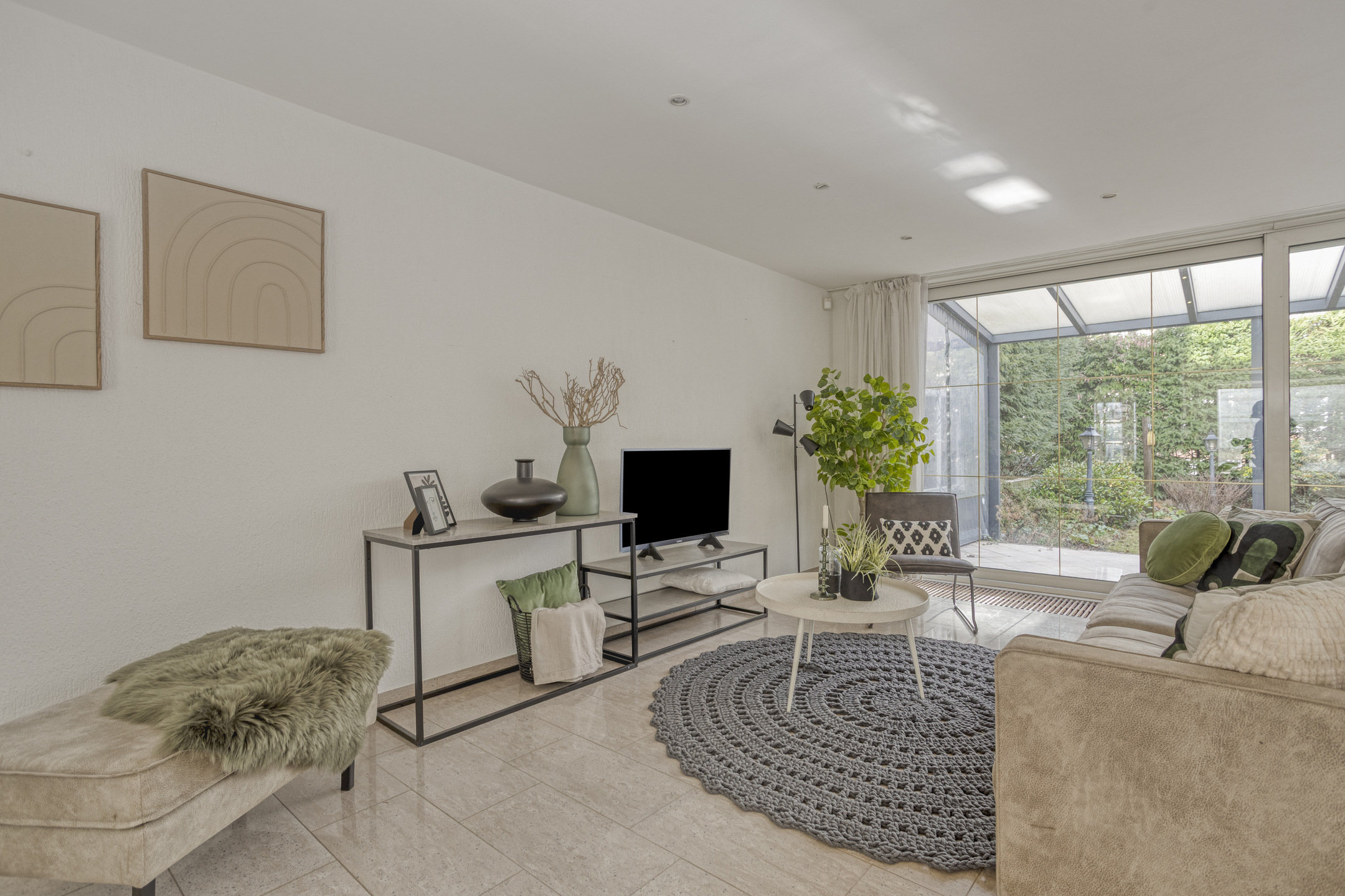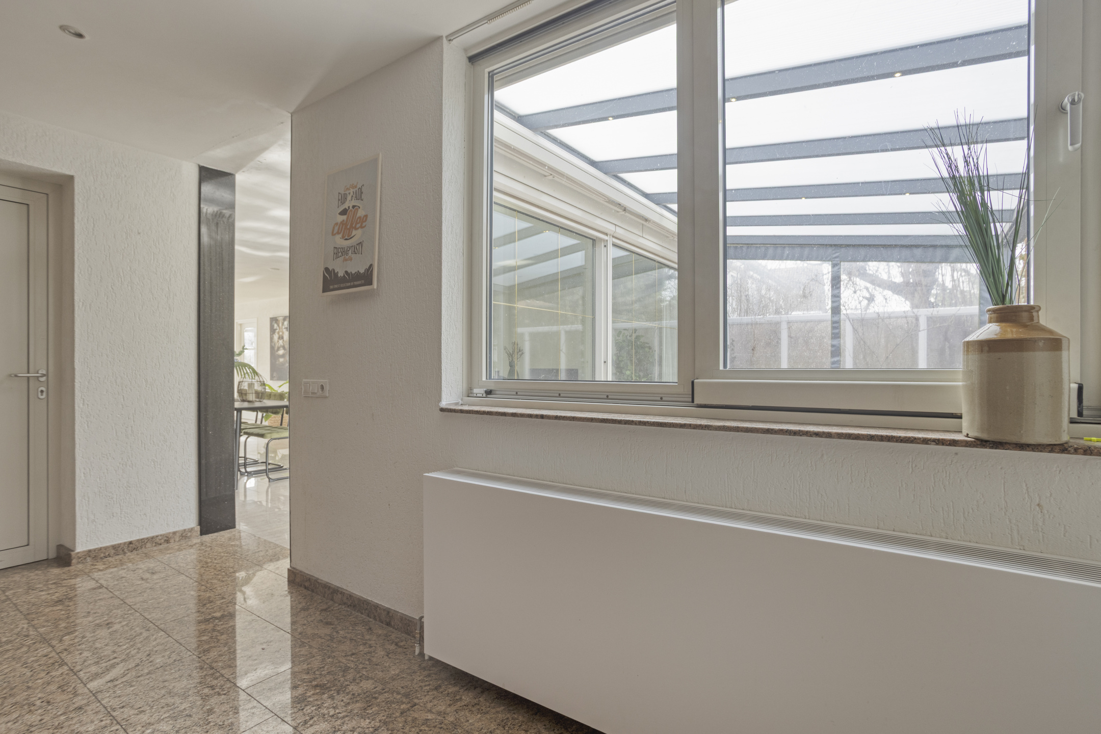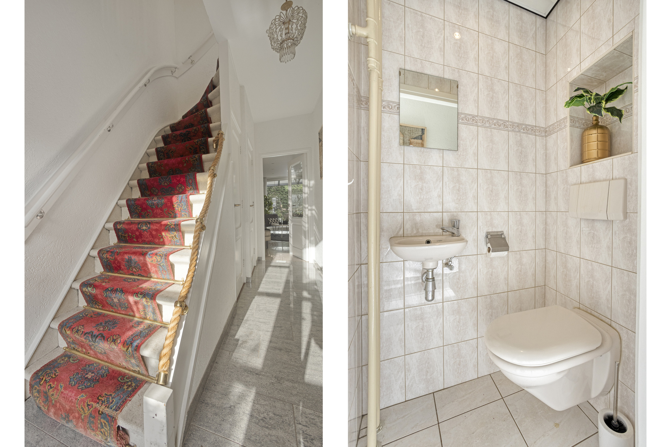 Je komt binnen in een verzorgde entree met toiletruimte en fonteintje. De woonkamer opent zich royaal en licht, met een sfeervolle erker aan de voorzijde en een gashaard die de ruimte warmte en karakter geeft. Dankzij de uitbouw en de schuifpui over de volle breedte van de woonkamer, loopt binnen moeiteloos over in buiten. Je stapt zo onder de vaste overkapping de besloten achtertuin in.
