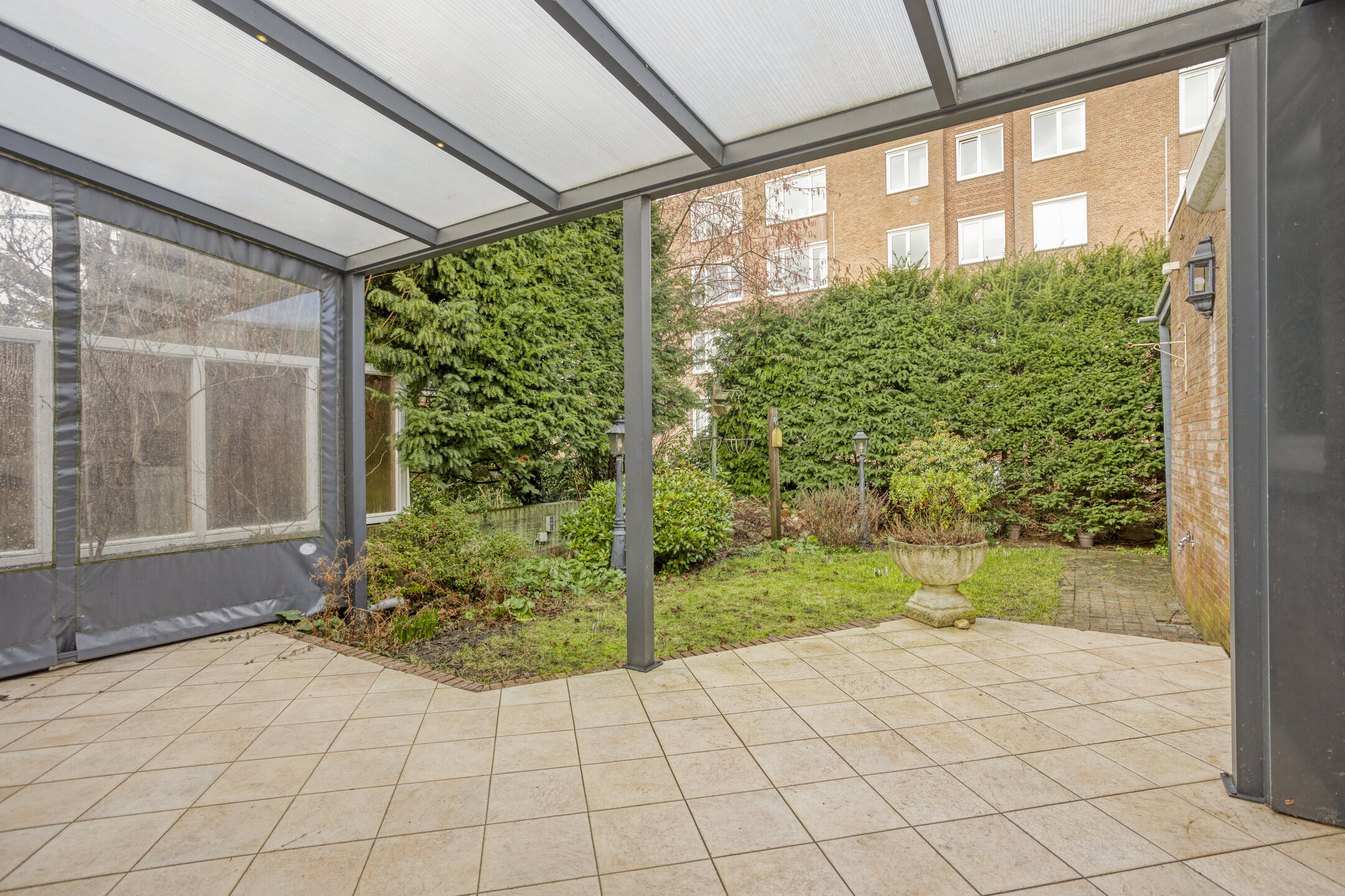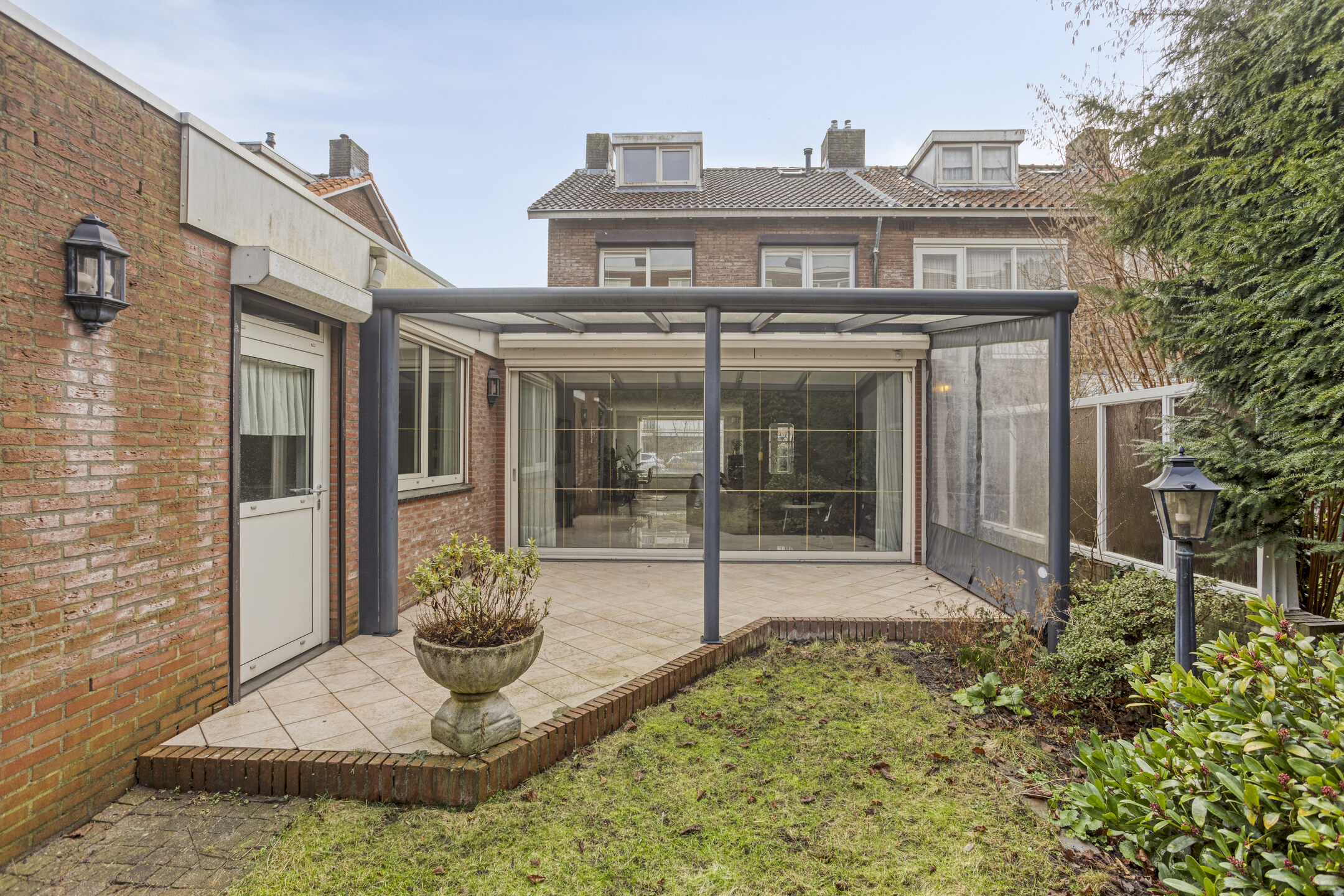 – Aangebouwde overkapping achterzijde met elektrisch zonnescherm