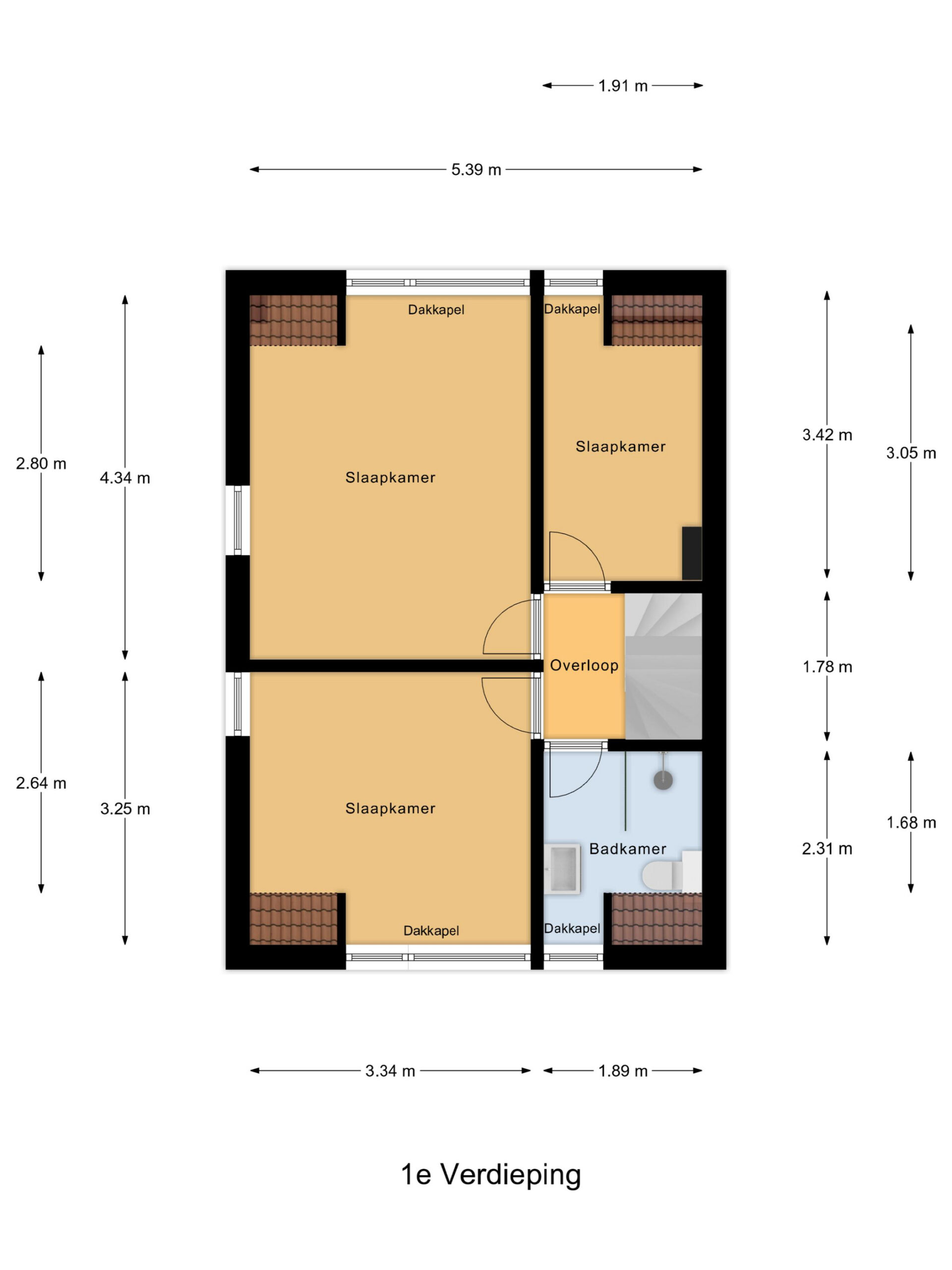 Op de eerste verdieping bevinden zich drie fijne slaapkamers, elk voorzien van dakkapellen aan zowel de voor- als achterzijde, waardoor de kamers extra licht en ruimte krijgen. De moderne badkamer is uitgerust met een zwevend toilet, wastafel met meubel en een inloopdouche.