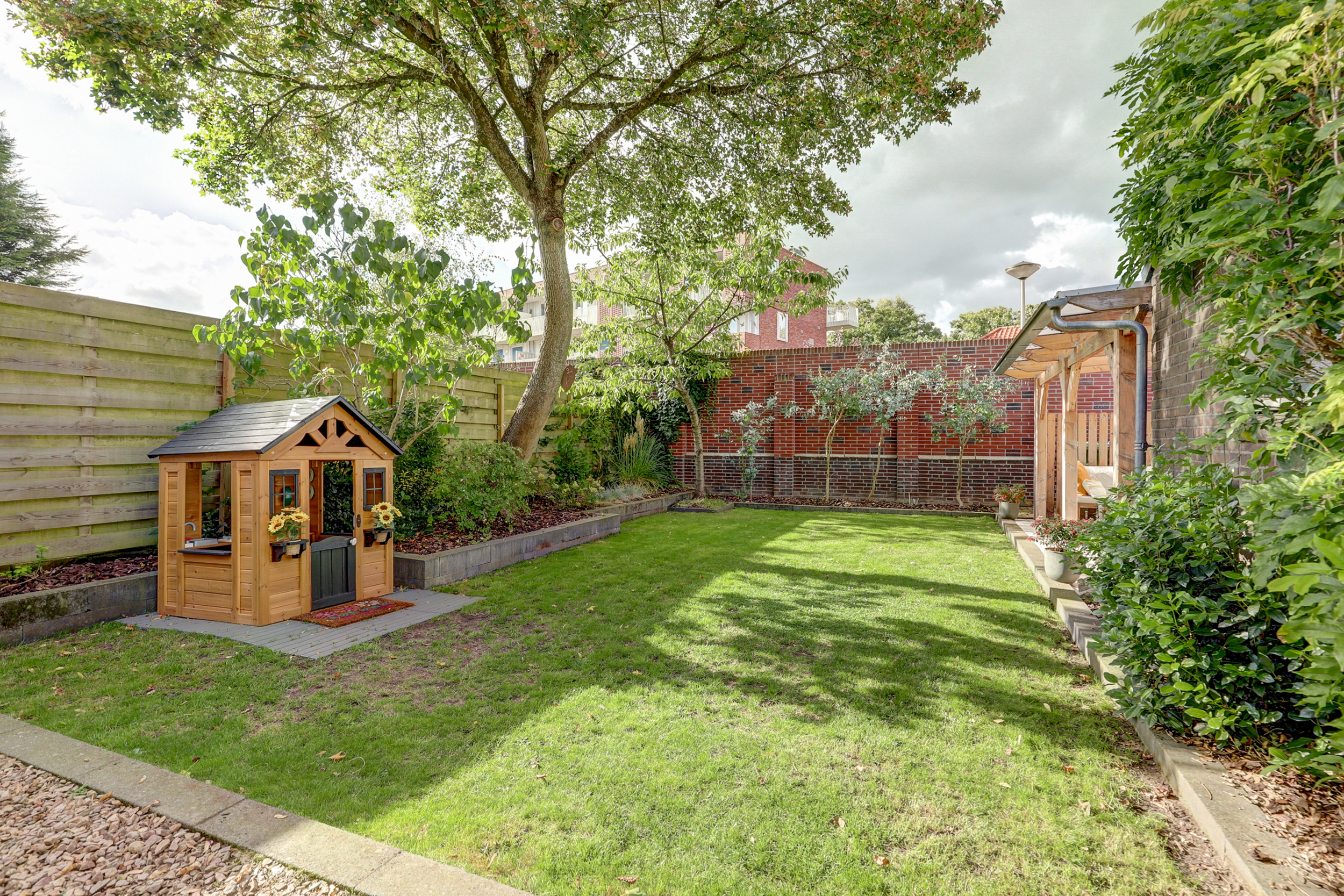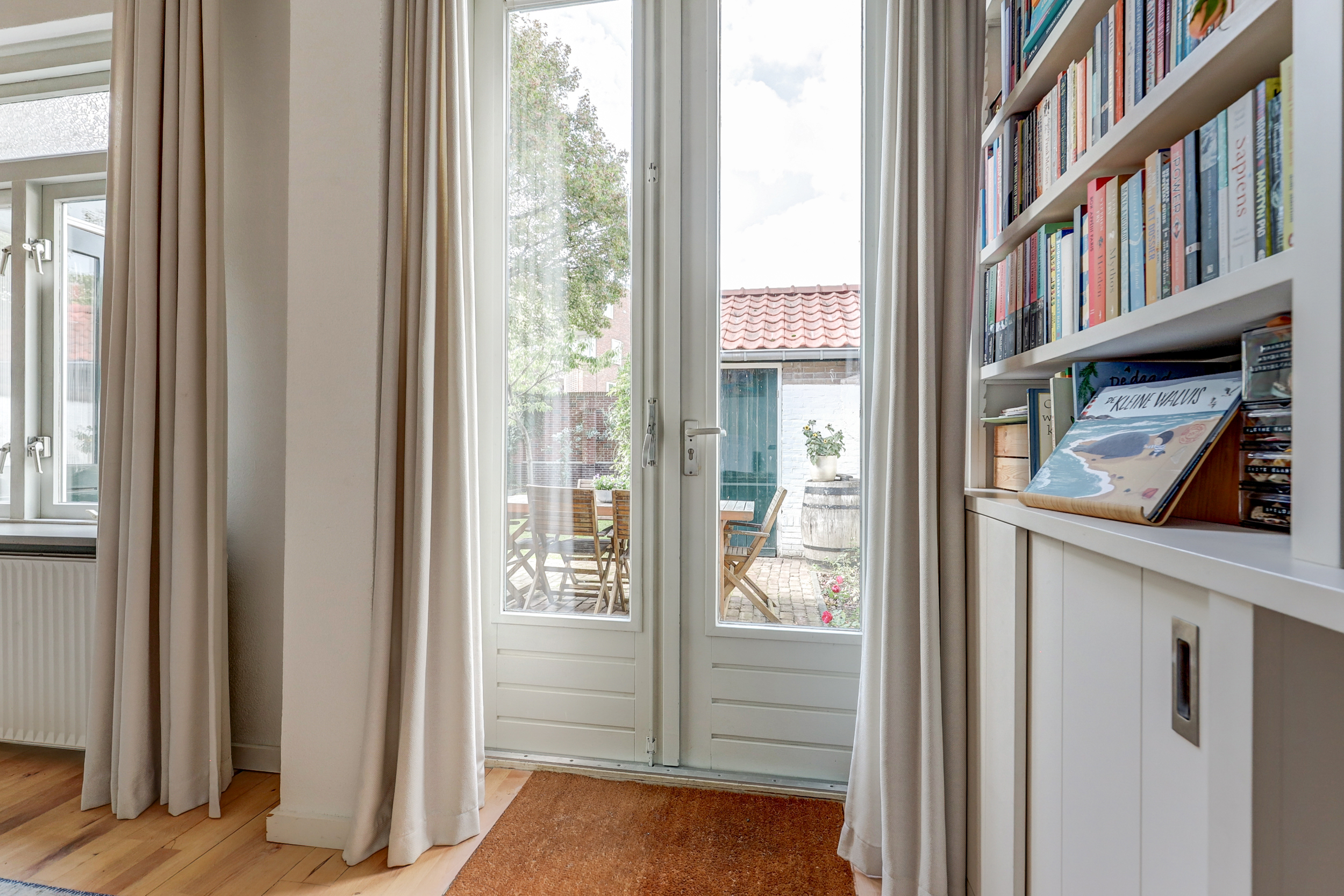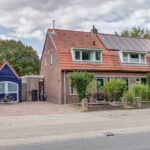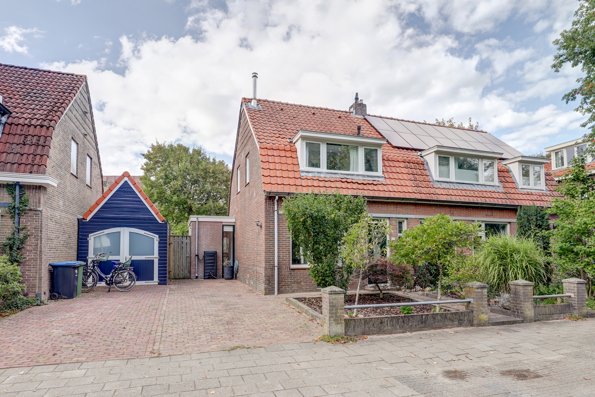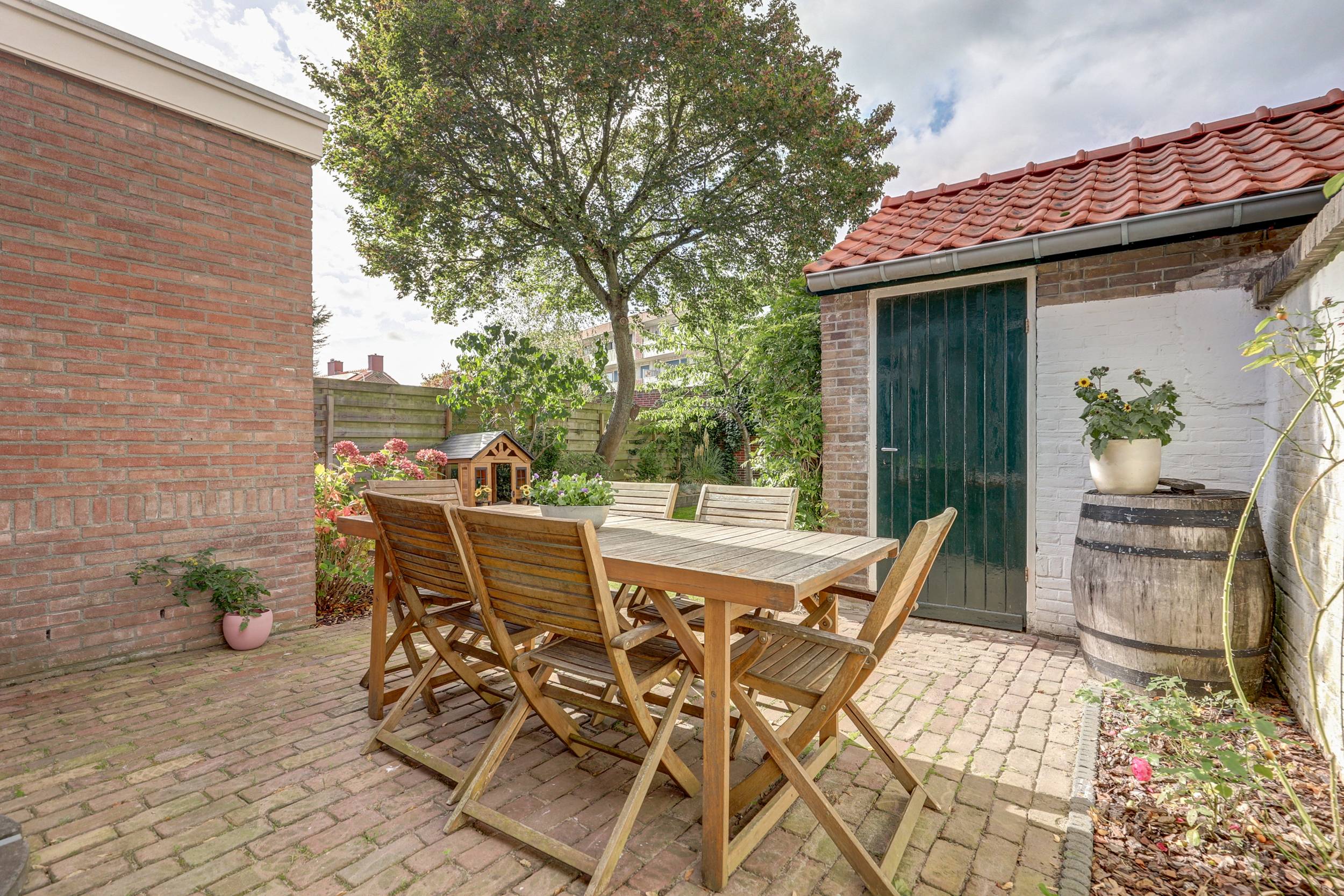 De achtertuin op het noordwesten biedt een royale overkapping, berging en achterom via de zijkant. Een plek waar je elk seizoen buiten leeft.